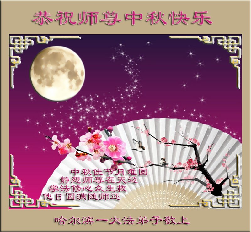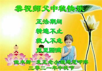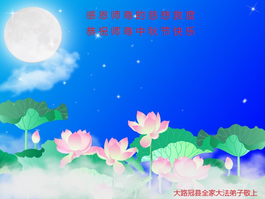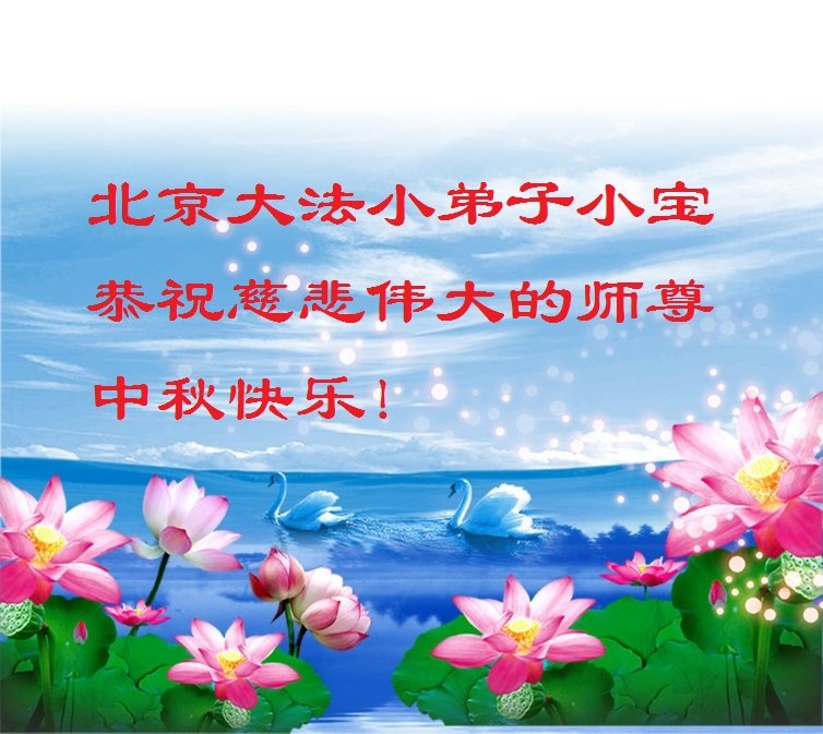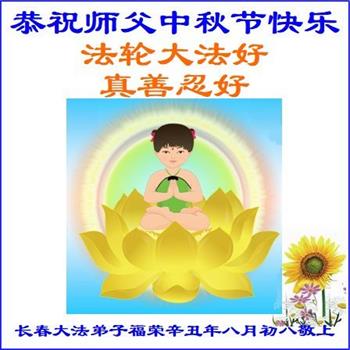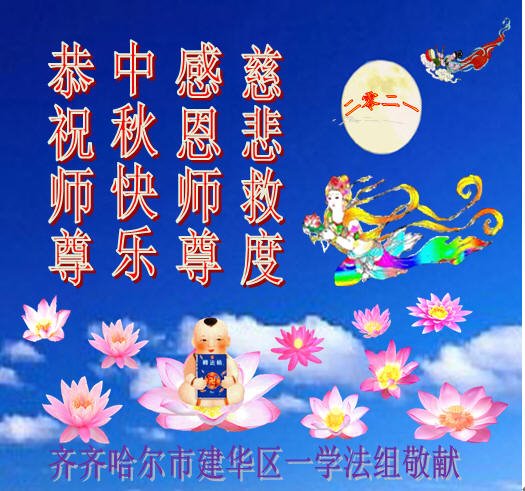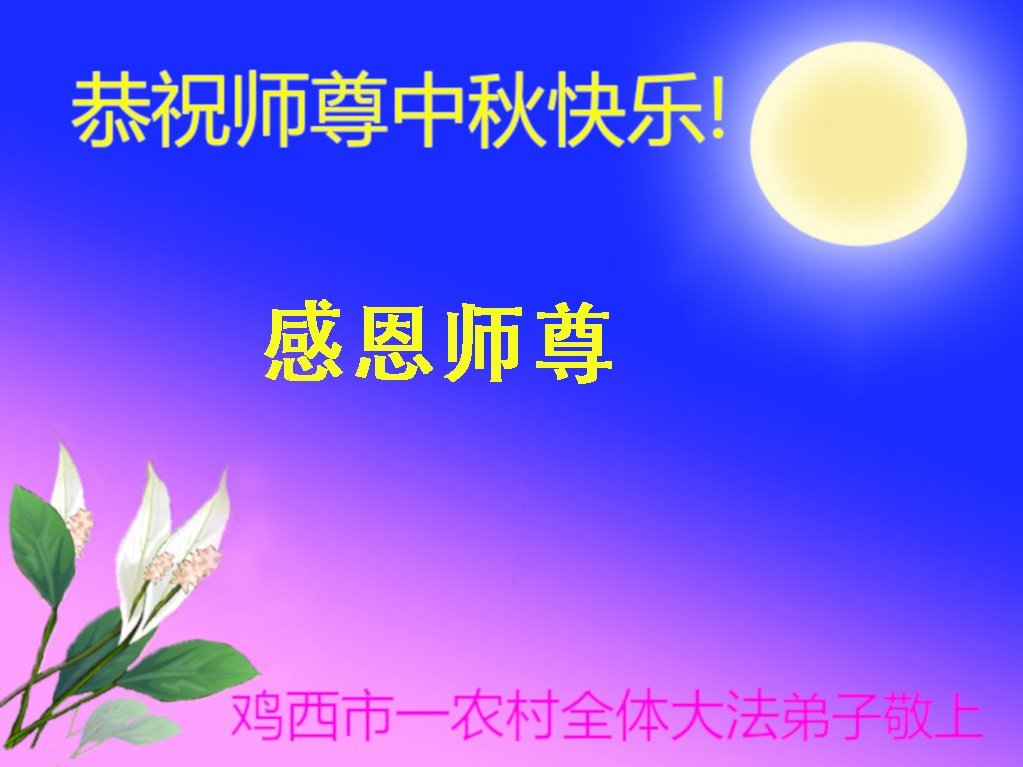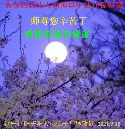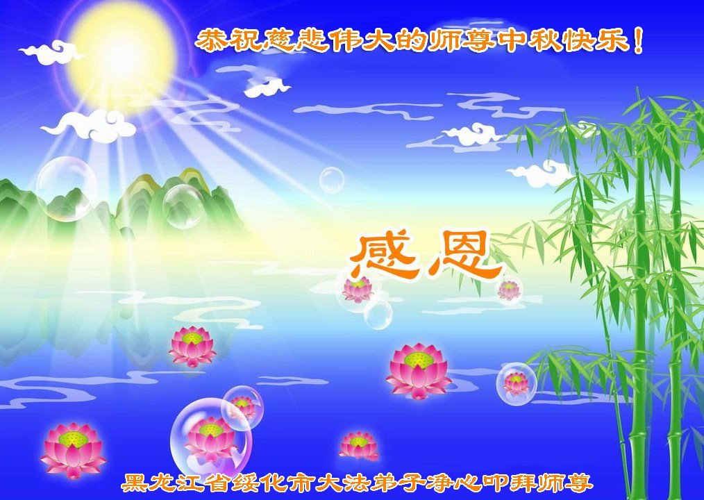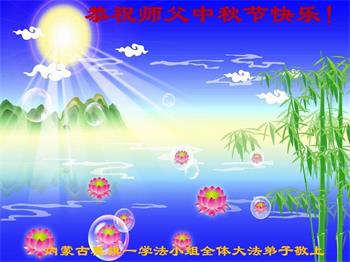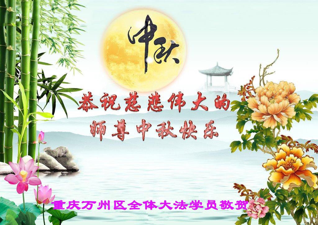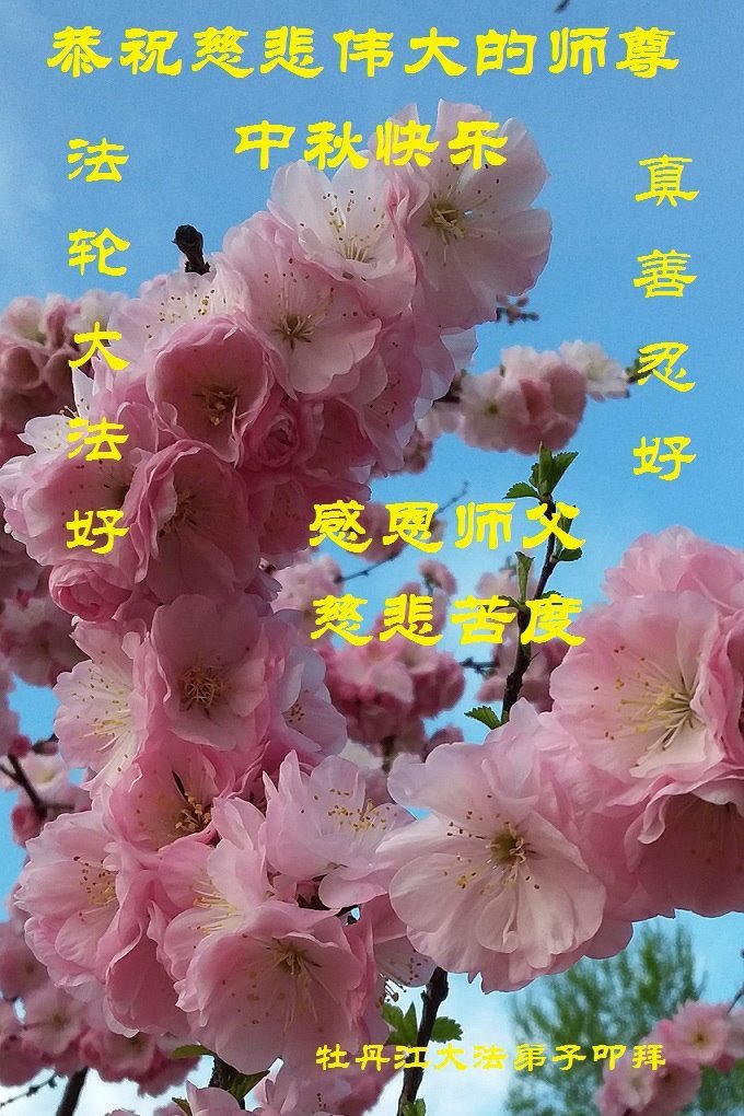 脑中装着大法,生命就有了希望,心中装着众生,再苦也不觉的辛劳,感恩师尊将法轮大法的法理捧到了我们的面前,赋予我们大法弟子的神圣荣光。每逢佳节倍思亲,值此中秋佳节即将来临之际,衷心遥祝师尊中秋节快乐!愿法轮大法好的佛光普照人间!