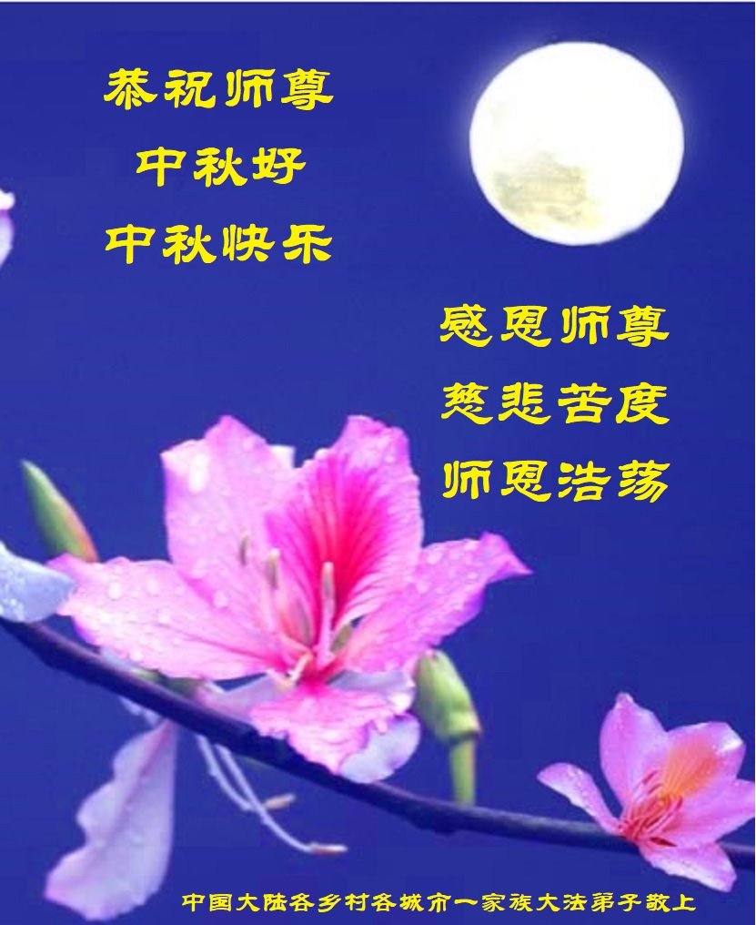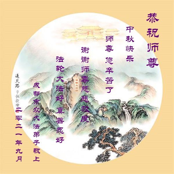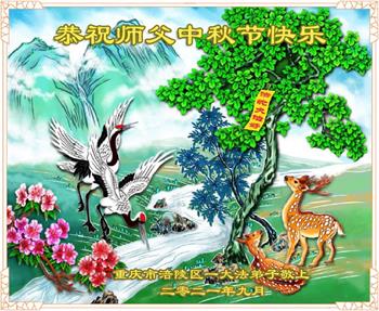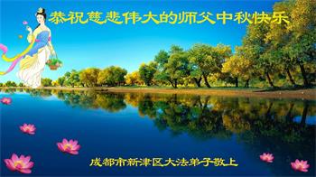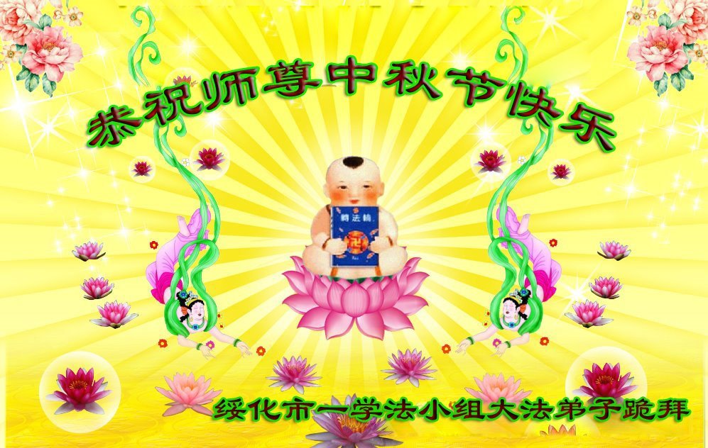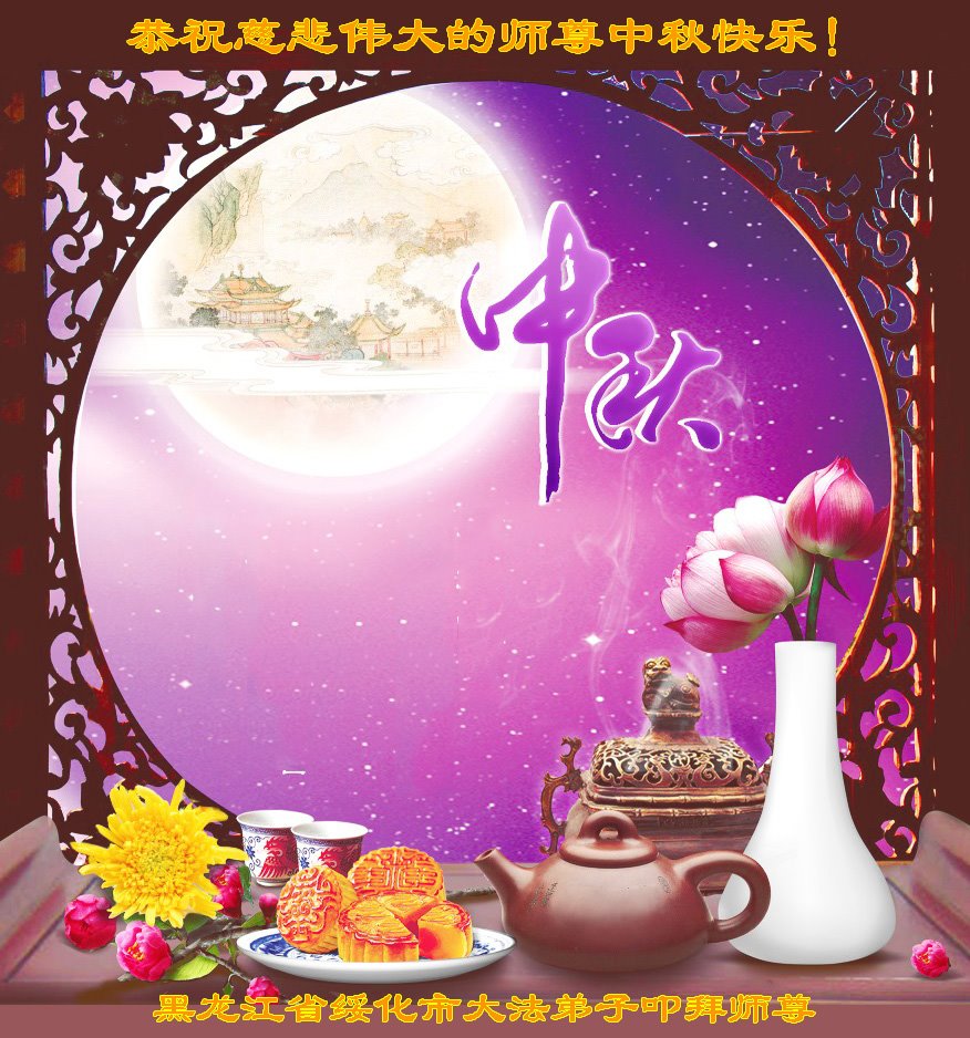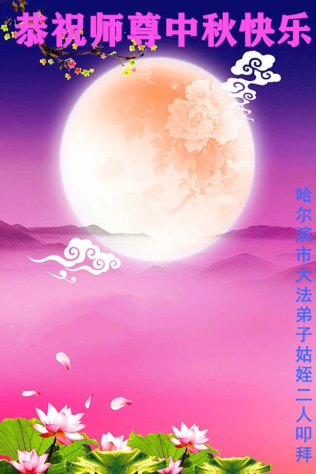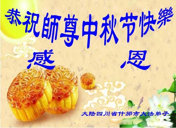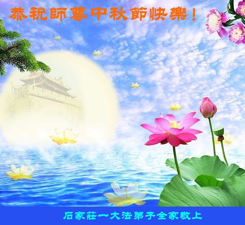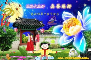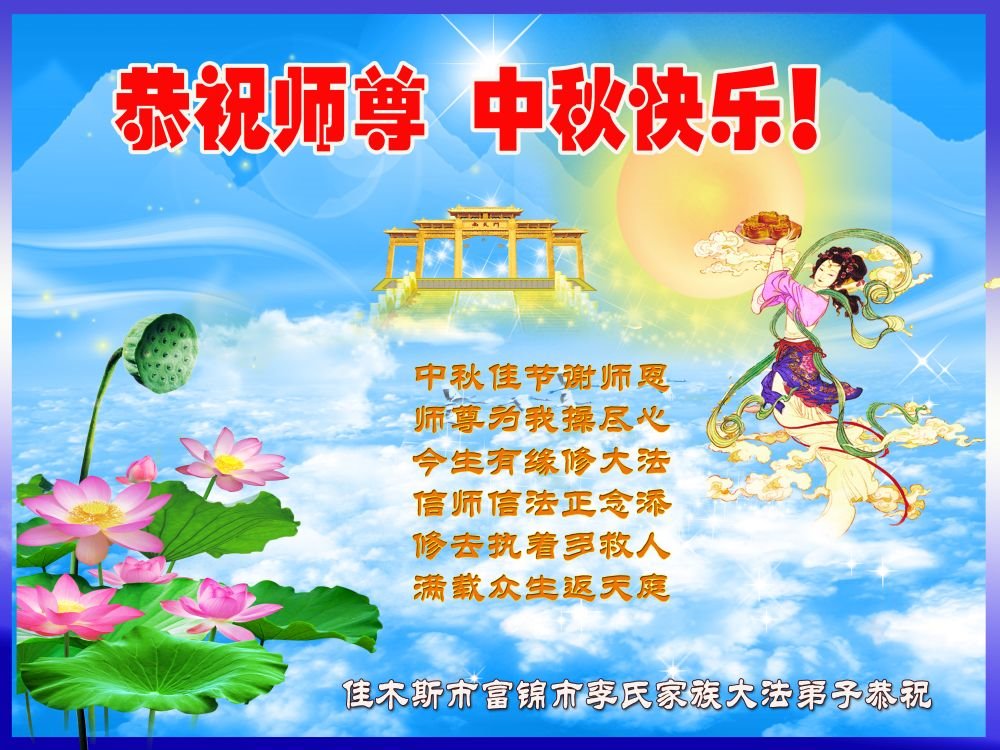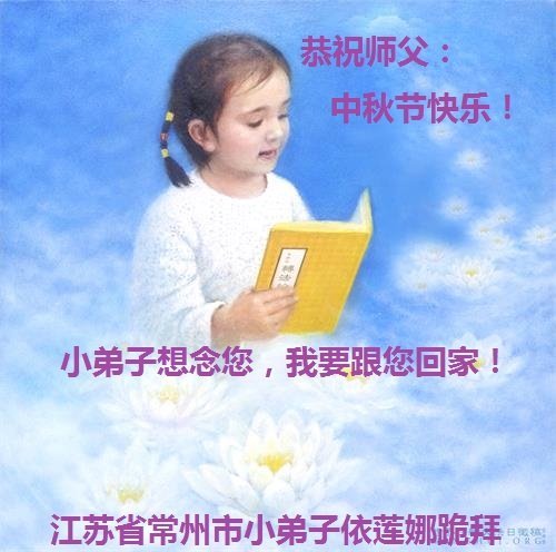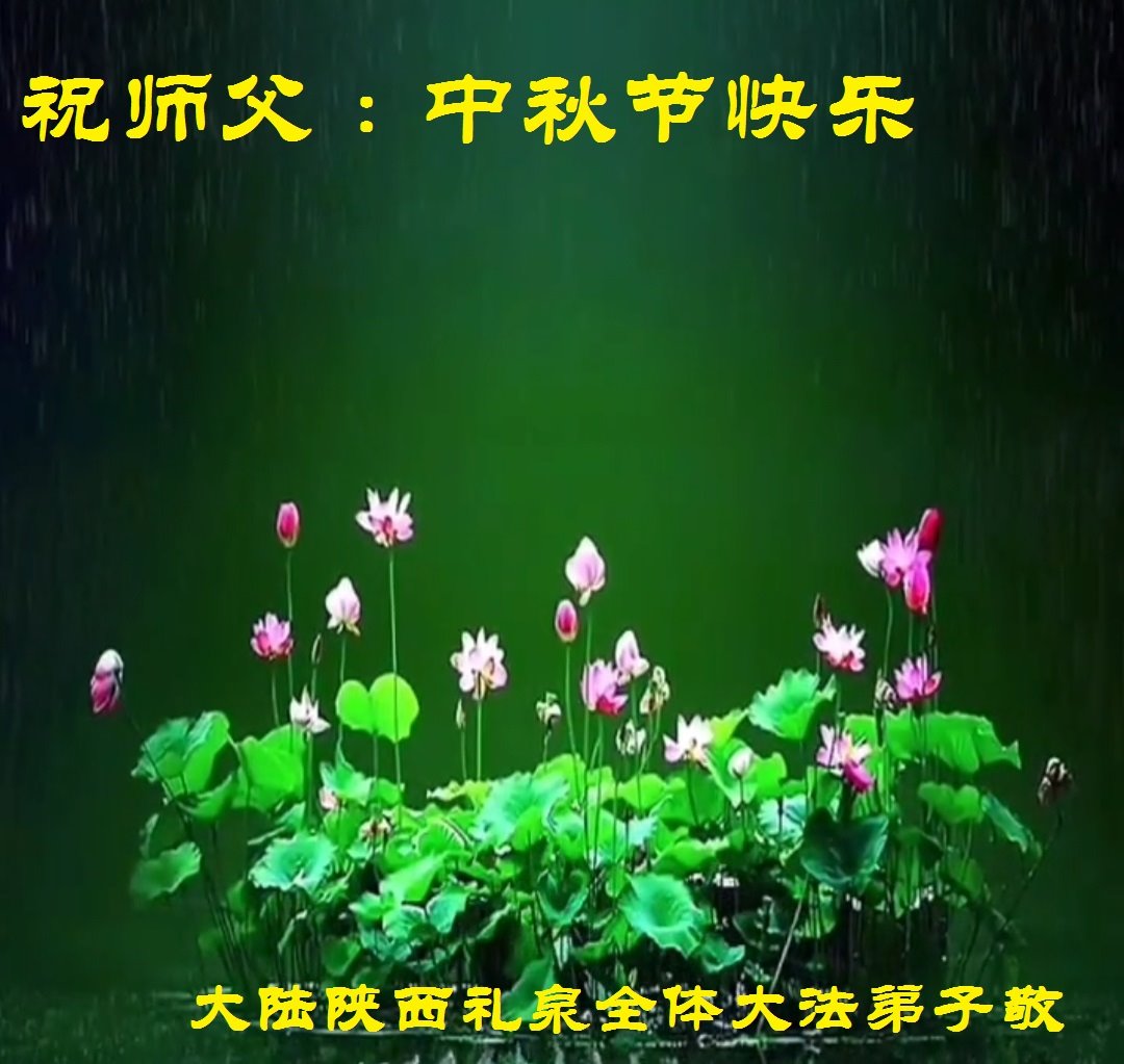 脑中装着大法,生命就有了希望,心中装着众生,再苦也不觉的辛劳,感恩师尊将法轮大法的法理捧到了我们的面前,赋予我们大法弟子的神圣荣光。每逢佳节倍思亲,值此中秋佳节即将来临之际,衷心遥祝师尊中秋节快乐!愿法轮大法好的佛光普照人间!