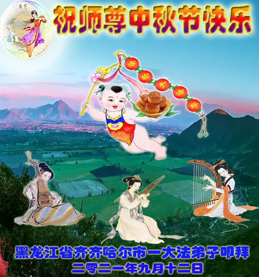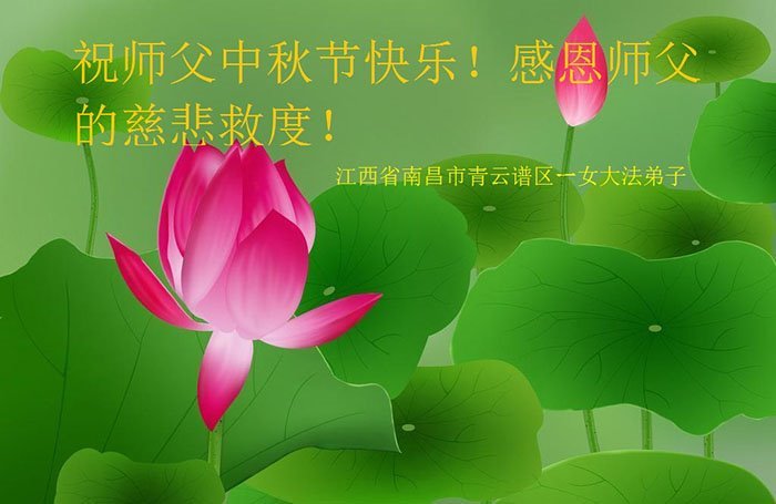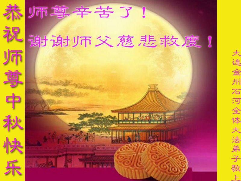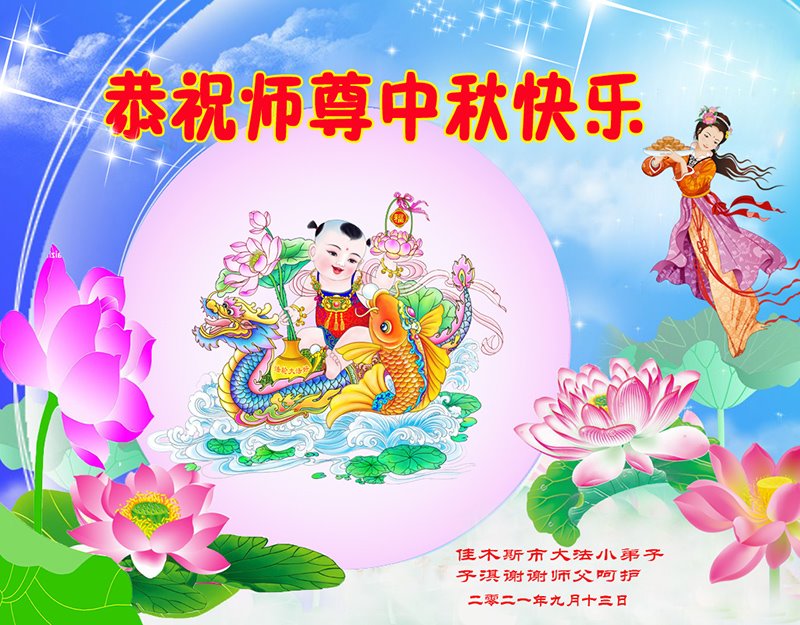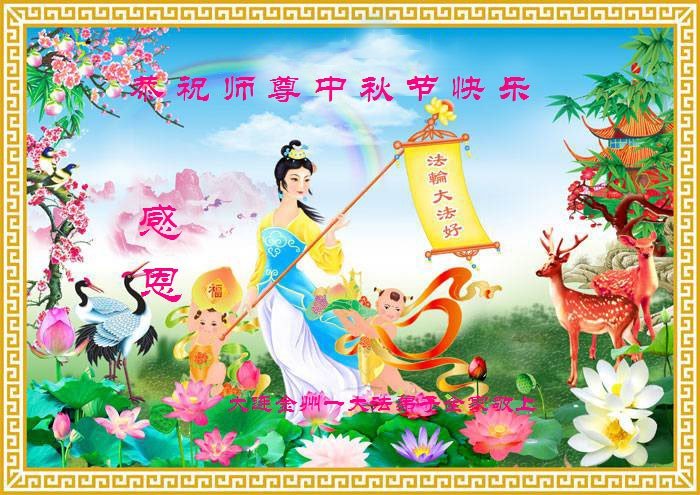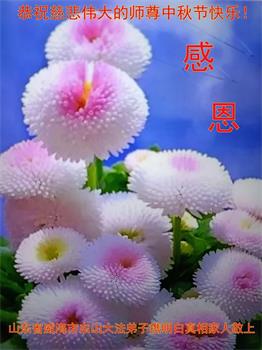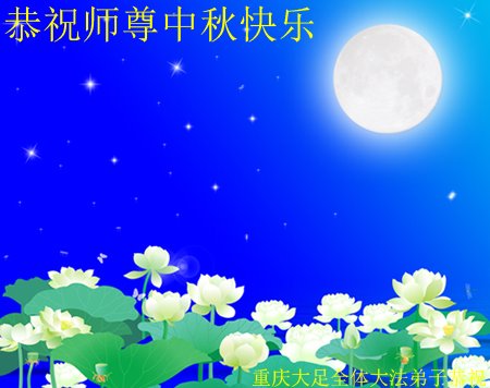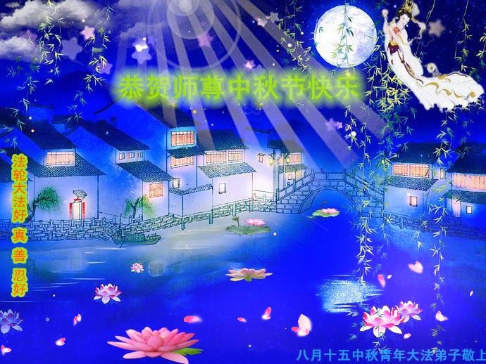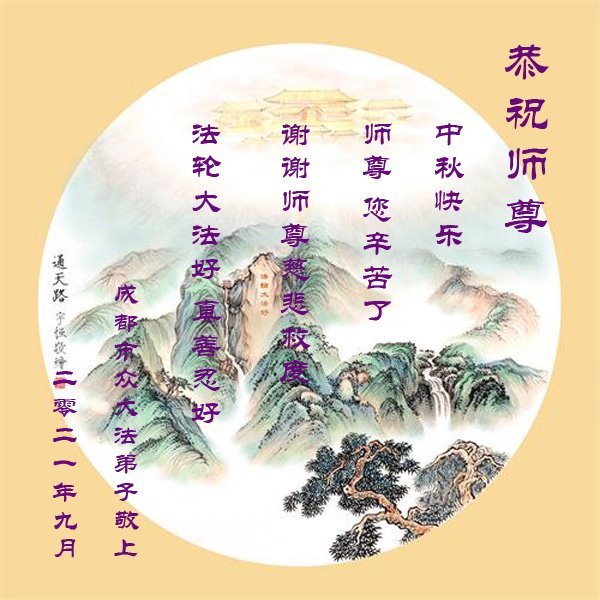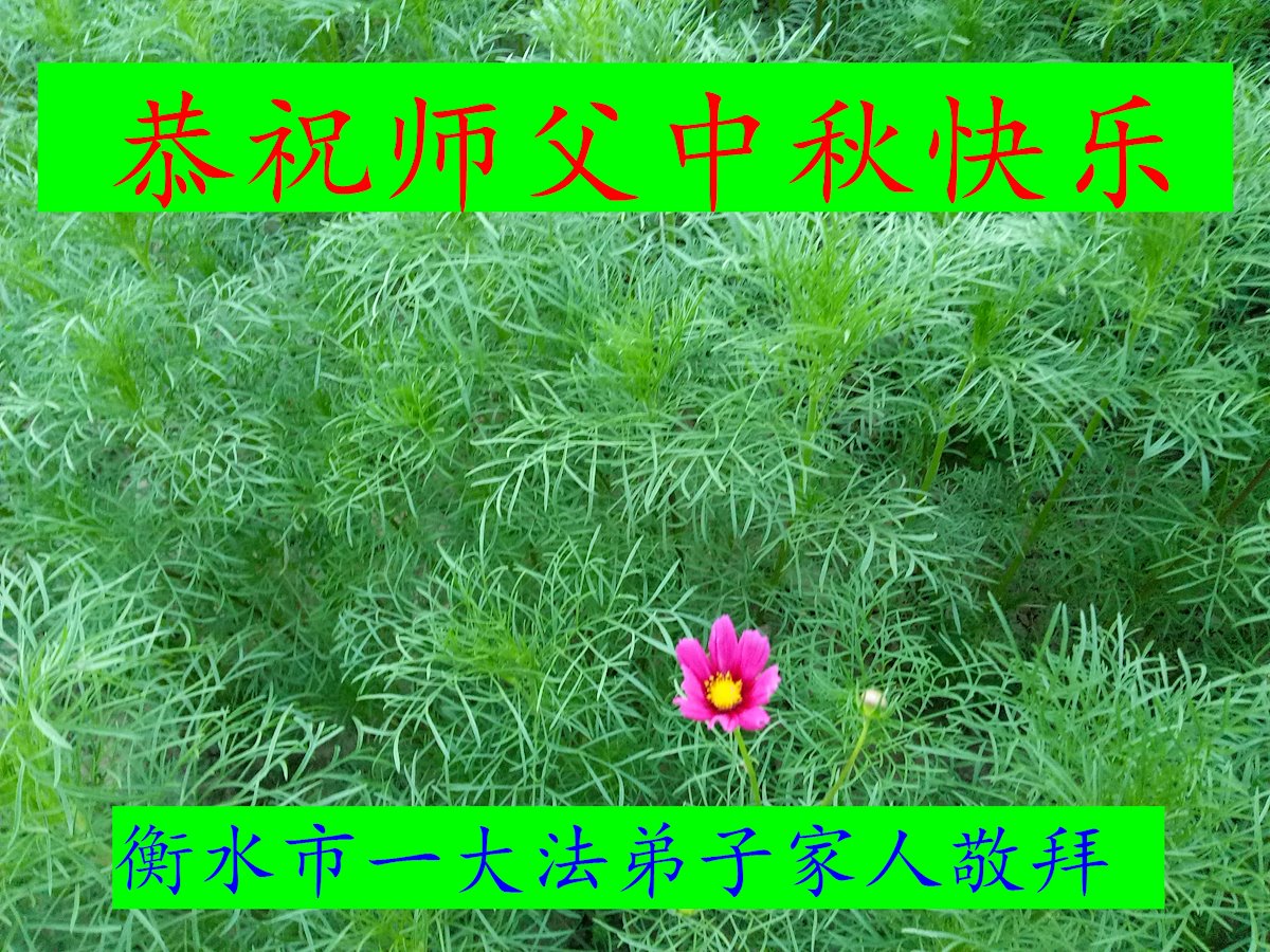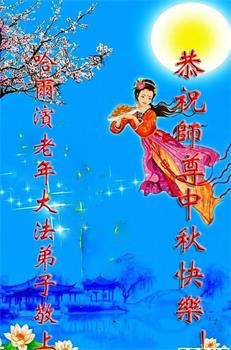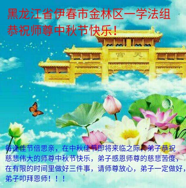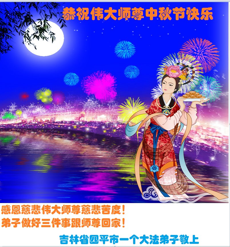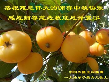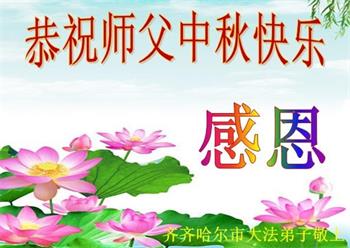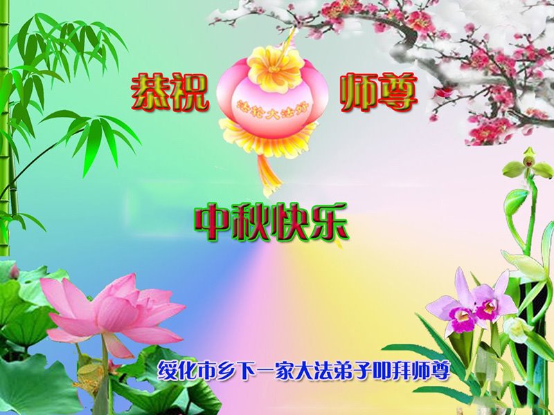 脑中装着大法,生命就有了希望,心中装着众生,再苦也不觉的辛劳,感恩师尊将法轮大法的法理捧到了我们的面前,赋予我们大法弟子的神圣荣光。每逢佳节倍思亲,值此中秋佳节即将来临之际,衷心遥祝师尊中秋节快乐!愿法轮大法好的佛光普照人间!