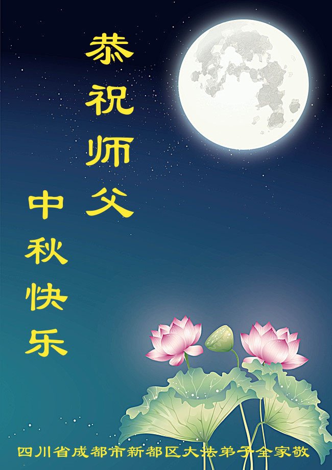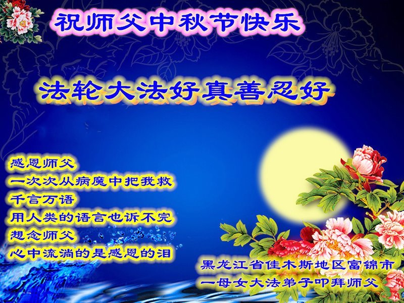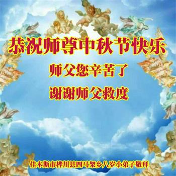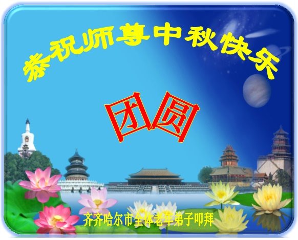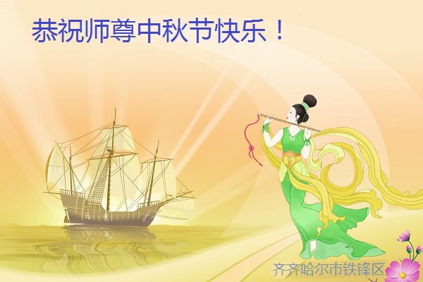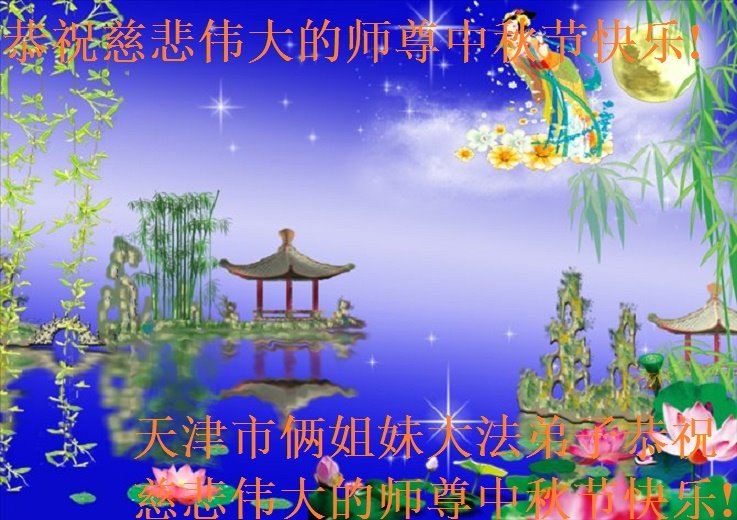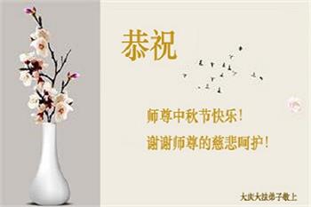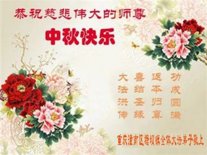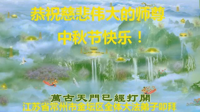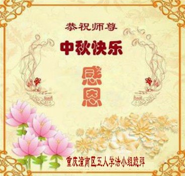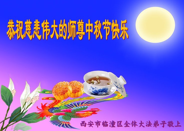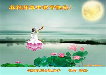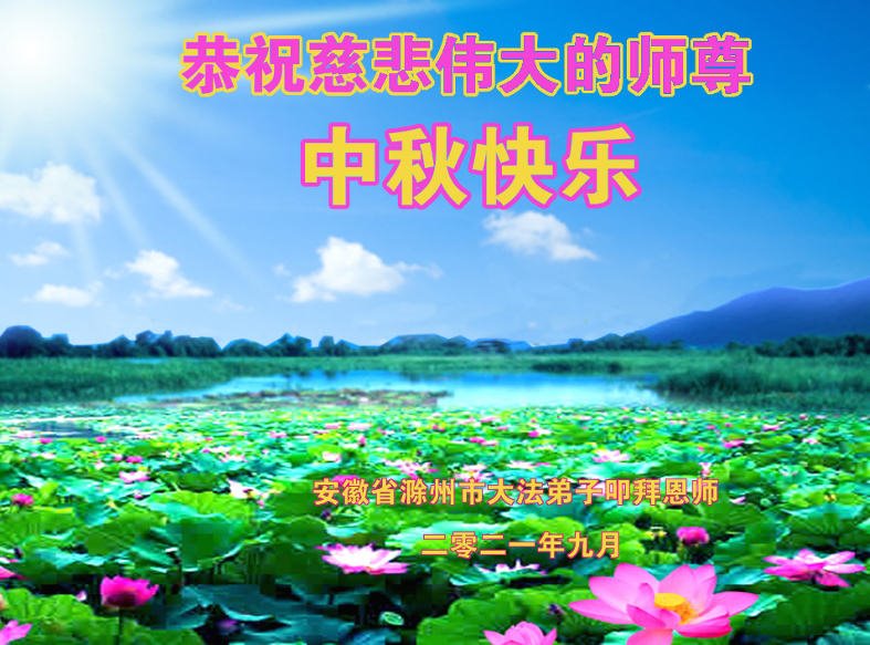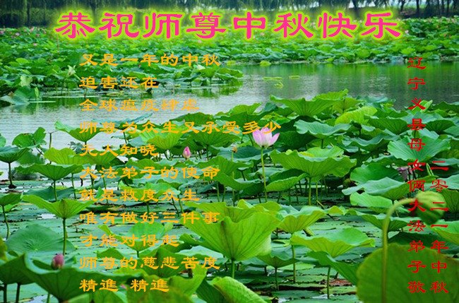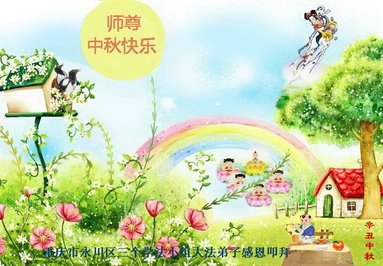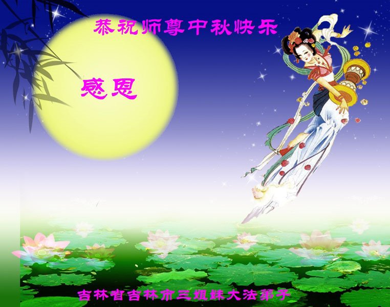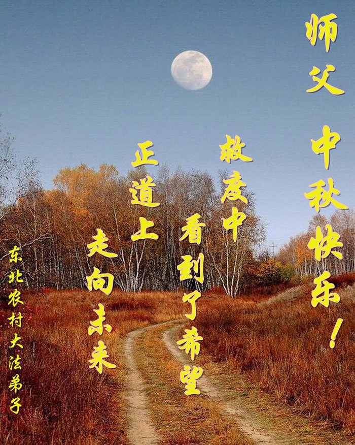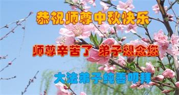 脑中装着大法,生命就有了希望,心中装着众生,再苦也不觉的辛劳,感恩师尊将法轮大法的法理捧到了我们的面前,赋予我们大法弟子的神圣荣光。每逢佳节倍思亲,值此中秋佳节即将来临之际,衷心遥祝师尊中秋节快乐!愿法轮大法好的佛光普照人间!
