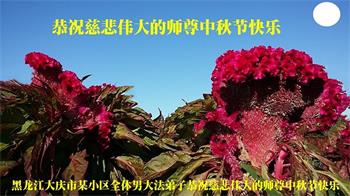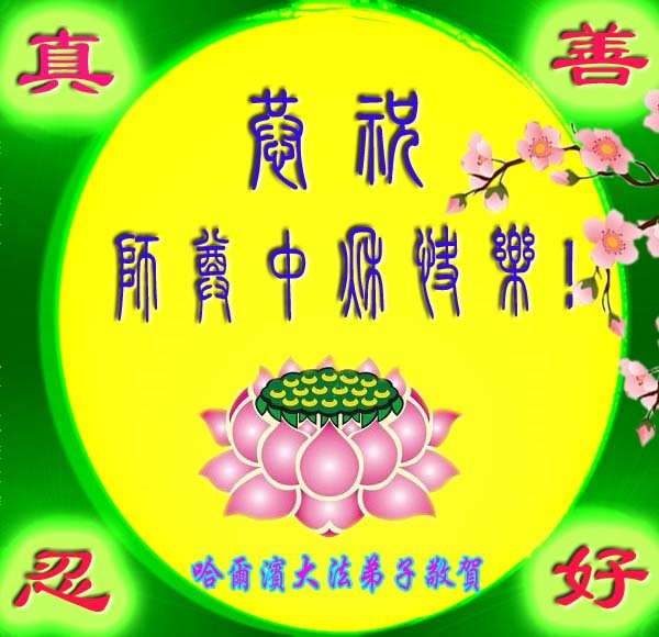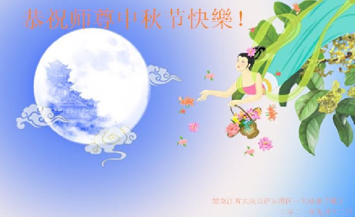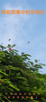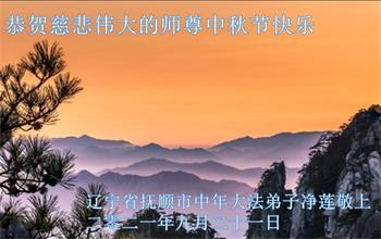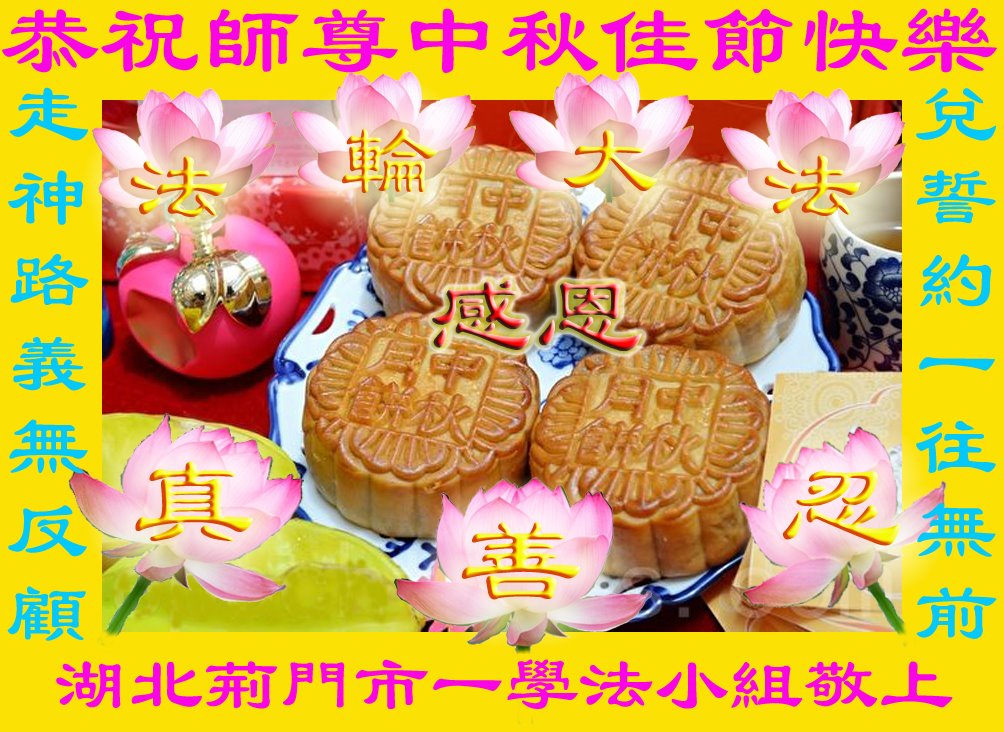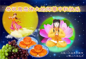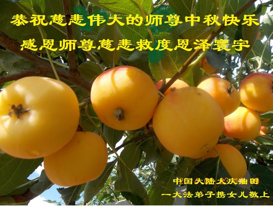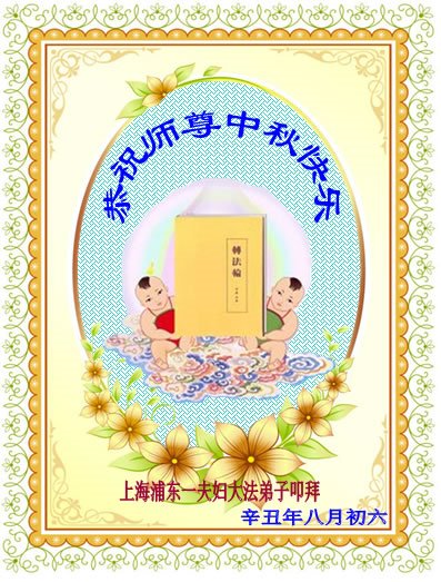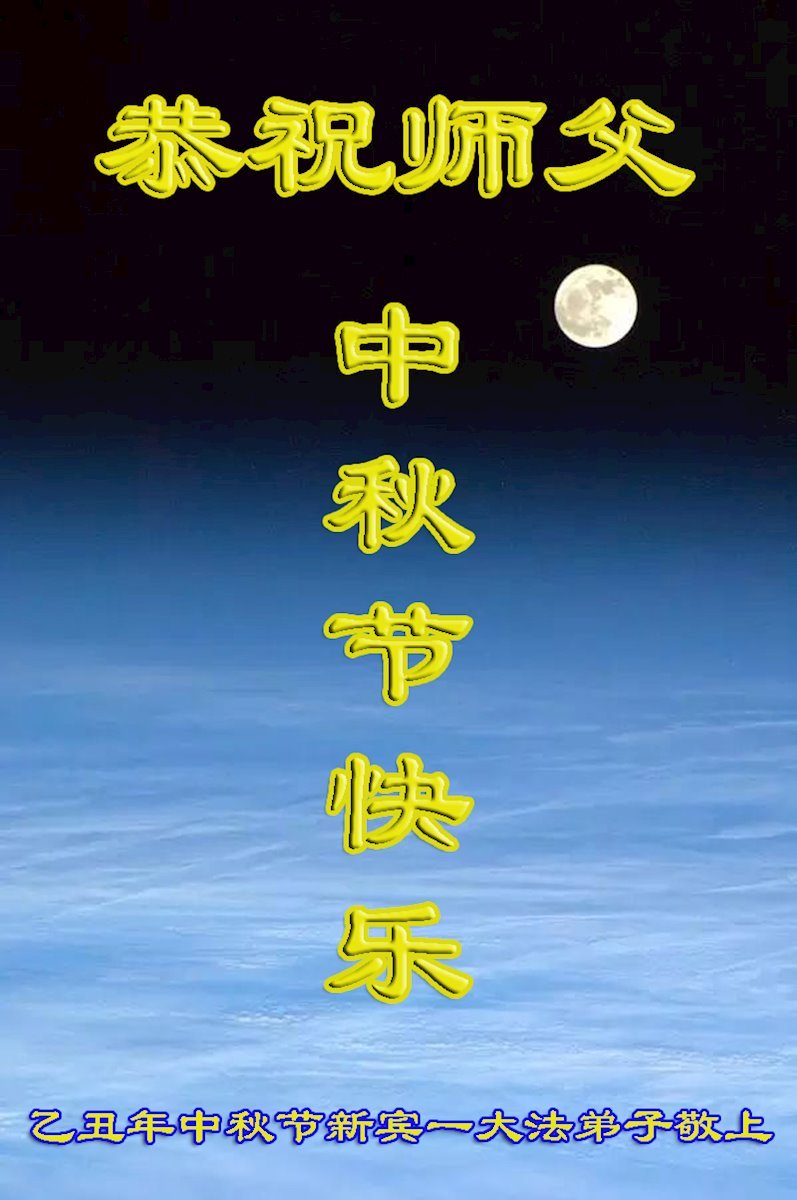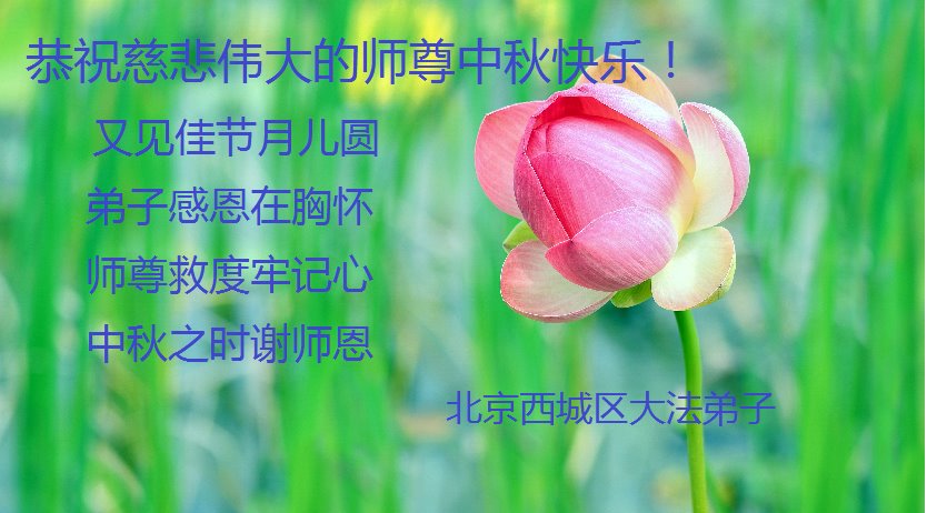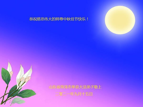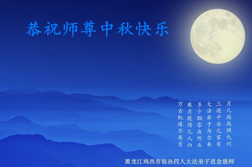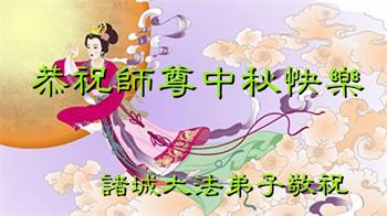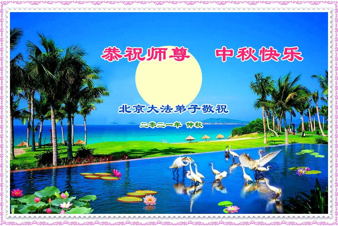 脑中装着大法,生命就有了希望,心中装着众生,再苦也不觉的辛劳,感恩师尊将法轮大法的法理捧到了我们的面前,赋予我们大法弟子的神圣荣光。每逢佳节倍思亲,值此中秋佳节即将来临之际,衷心遥祝师尊中秋节快乐!愿法轮大法好的佛光普照人间!