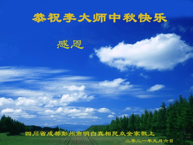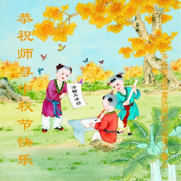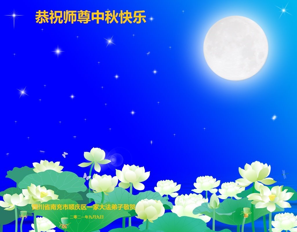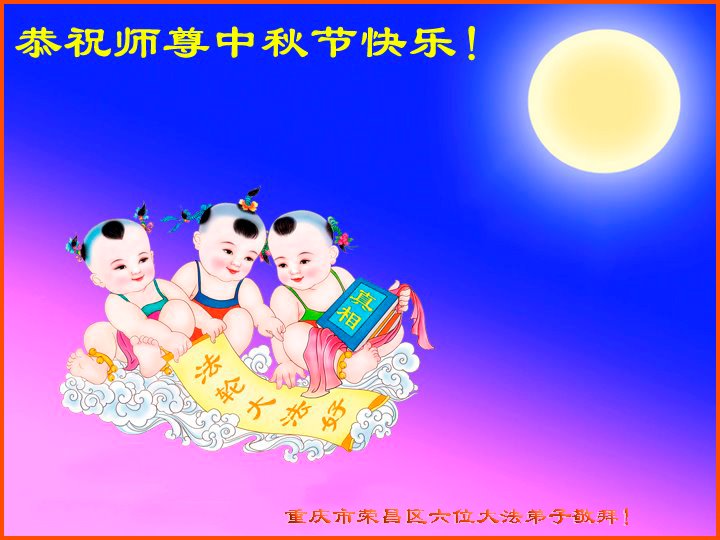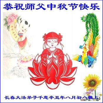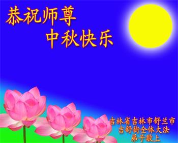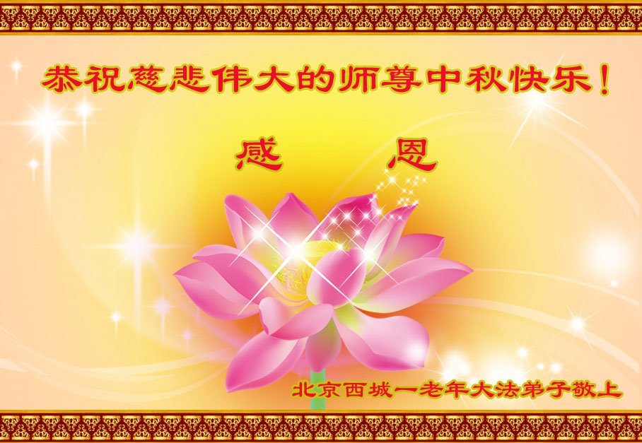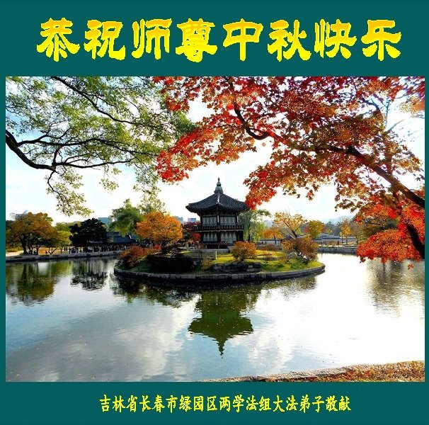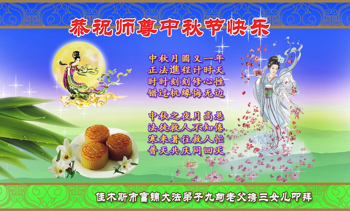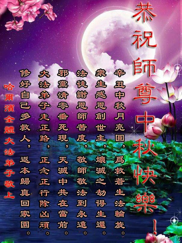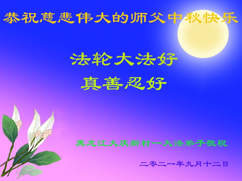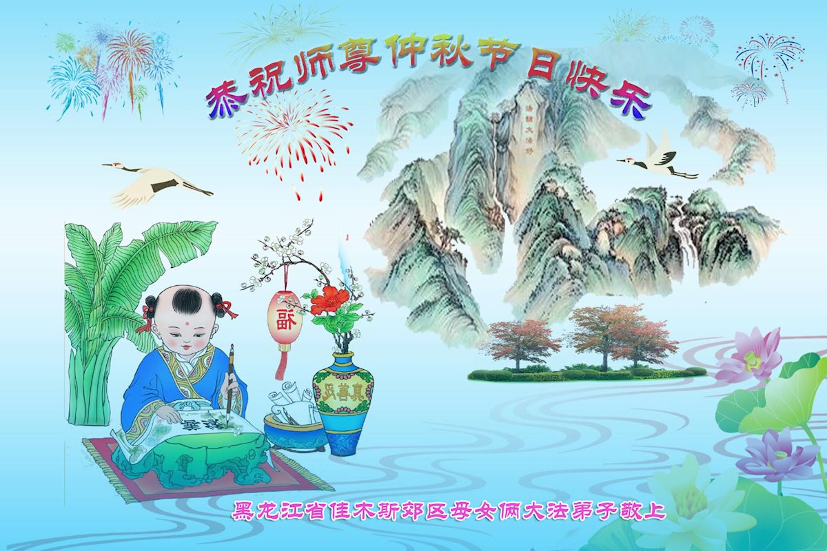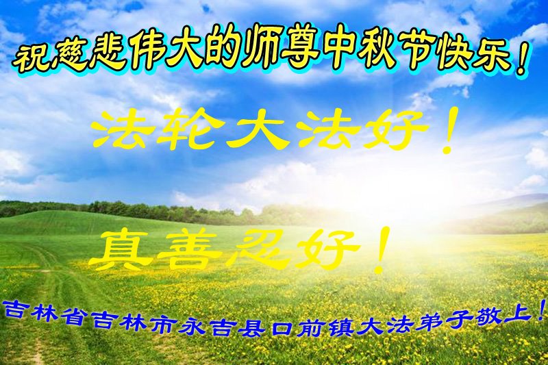 脑中装着大法,生命就有了希望,心中装着众生,再苦也不觉的辛劳,感恩师尊将法轮大法的法理捧到了我们的面前,赋予我们大法弟子的神圣荣光。每逢佳节倍思亲,值此中秋佳节即将来临之际,衷心遥祝师尊中秋节快乐!愿法轮大法好的佛光普照人间!