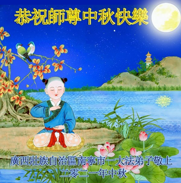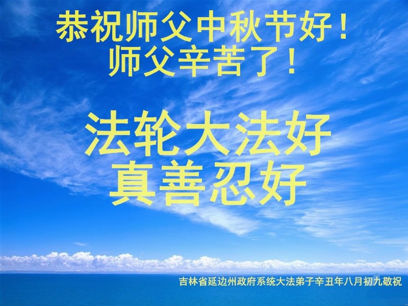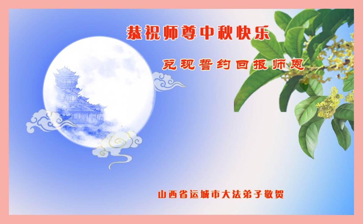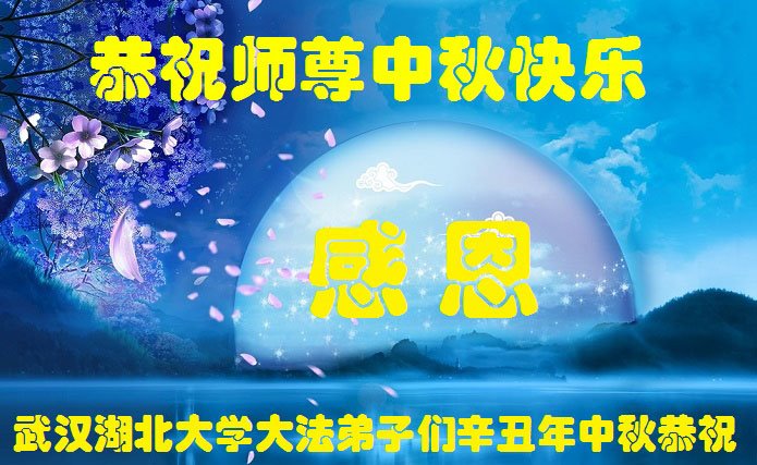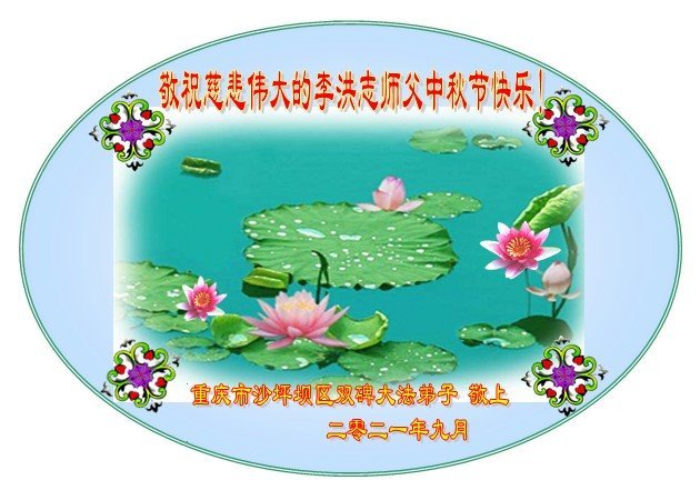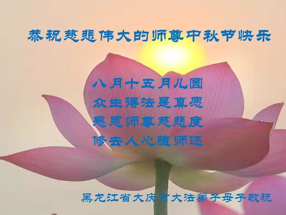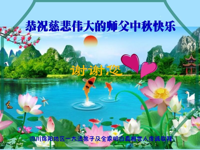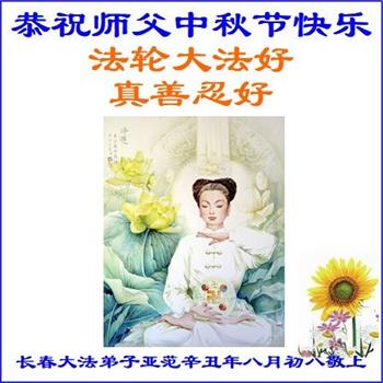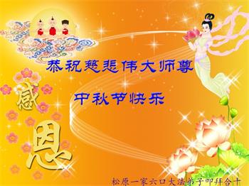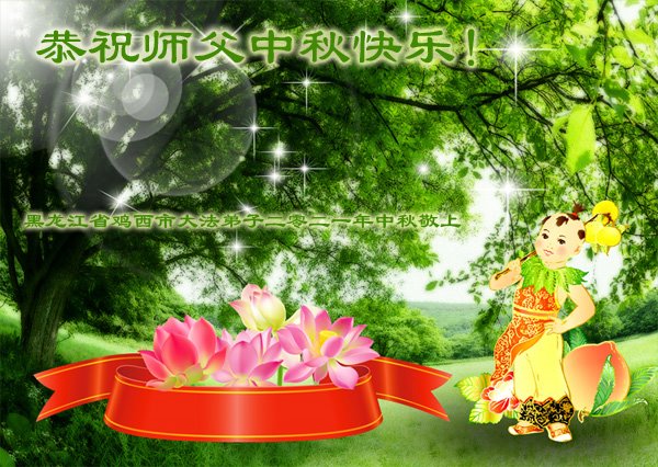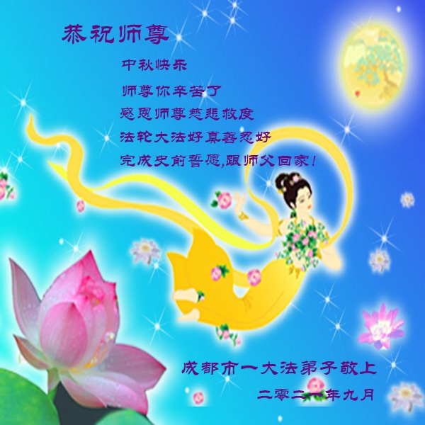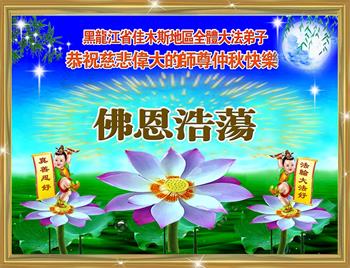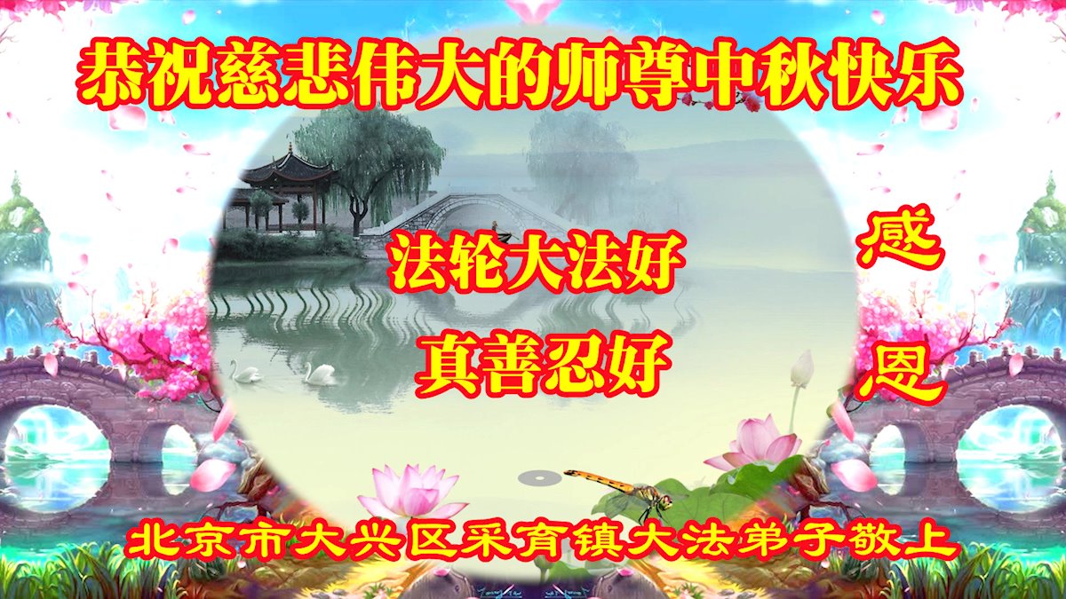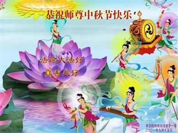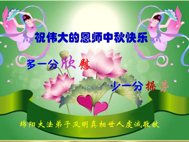 脑中装着大法,生命就有了希望,心中装着众生,再苦也不觉的辛劳,感恩师尊将法轮大法的法理捧到了我们的面前,赋予我们大法弟子的神圣荣光。每逢佳节倍思亲,值此中秋佳节即将来临之际,衷心遥祝师尊中秋节快乐!愿法轮大法好的佛光普照人间!