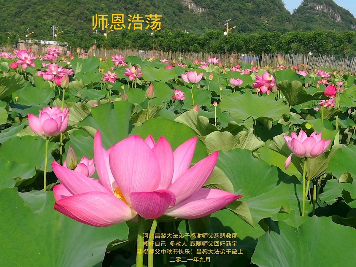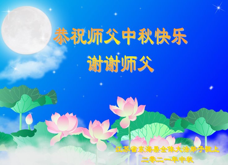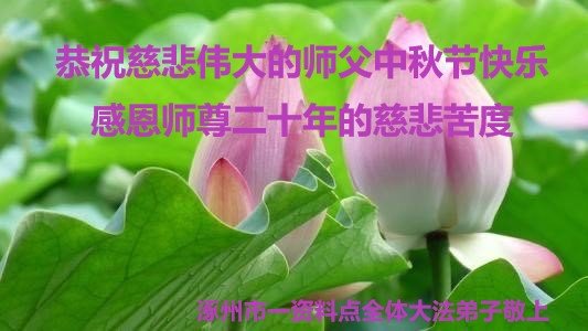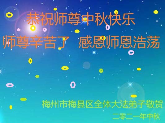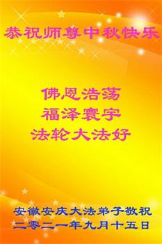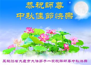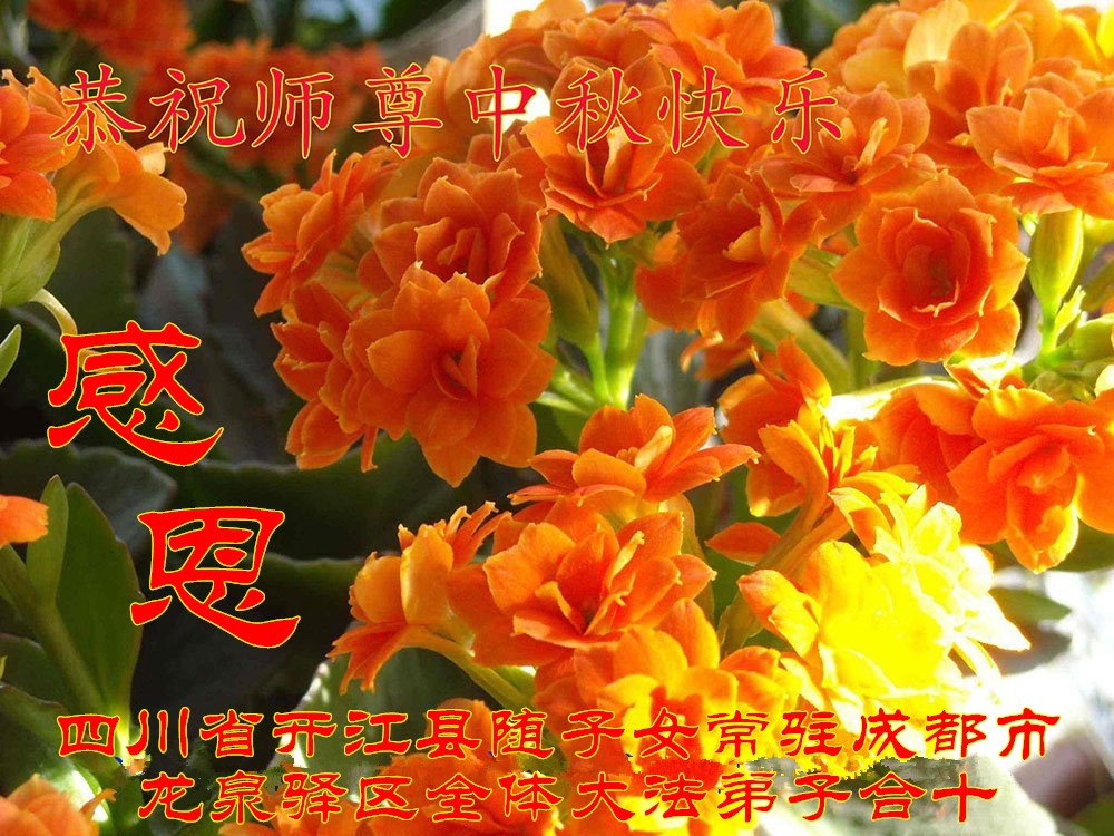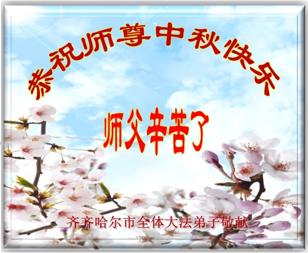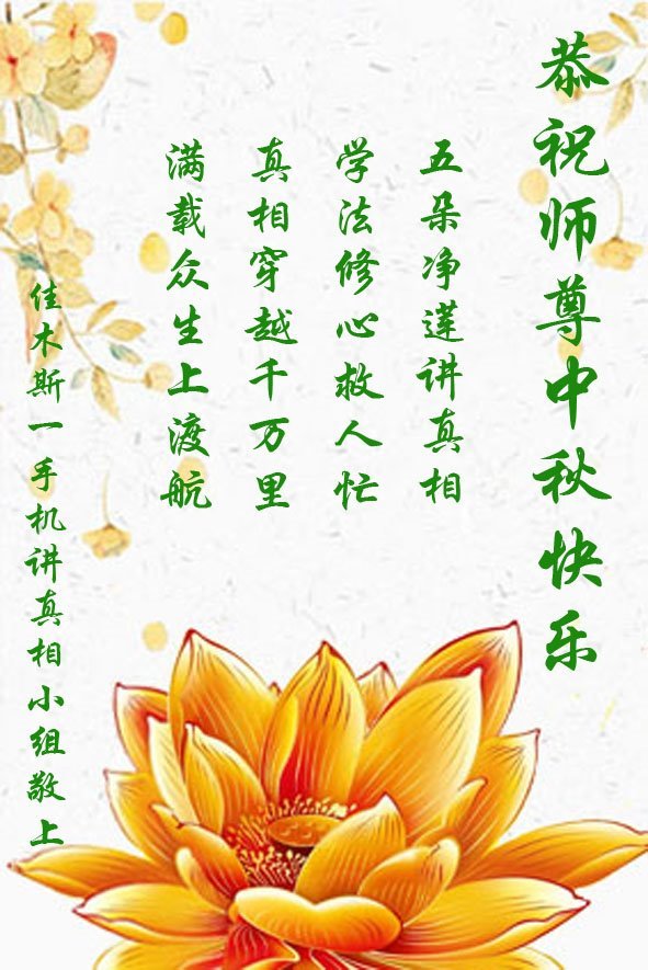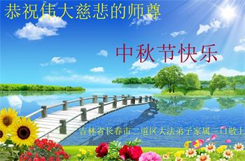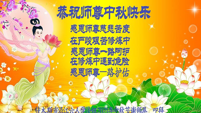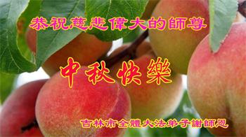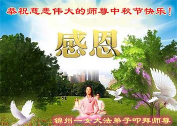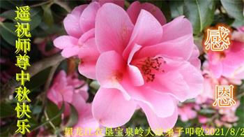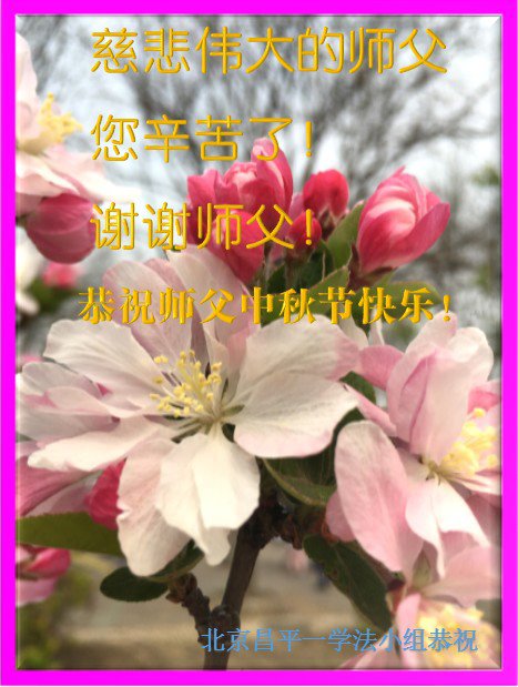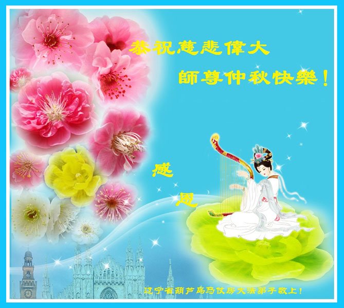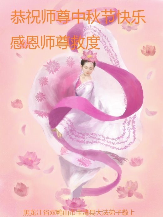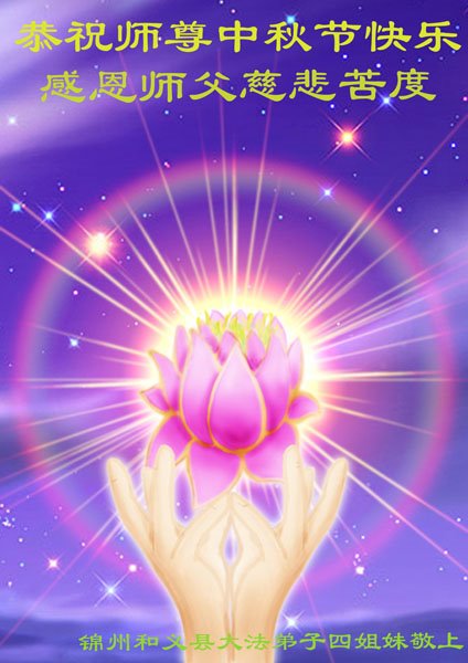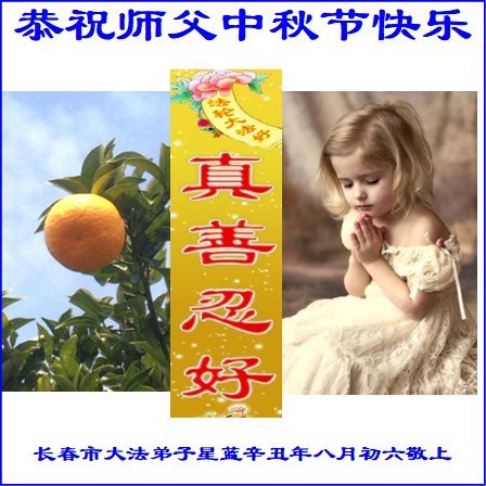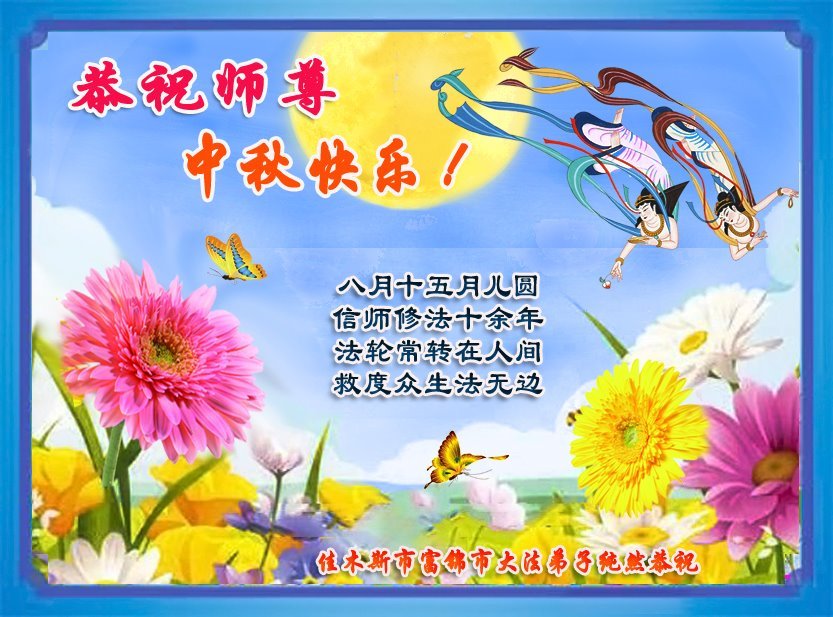 脑中装着大法,生命就有了希望,心中装着众生,再苦也不觉的辛劳,感恩师尊将法轮大法的法理捧到了我们的面前,赋予我们大法弟子的神圣荣光。每逢佳节倍思亲,值此中秋佳节即将来临之际,衷心遥祝师尊中秋节快乐!愿法轮大法好的佛光普照人间!