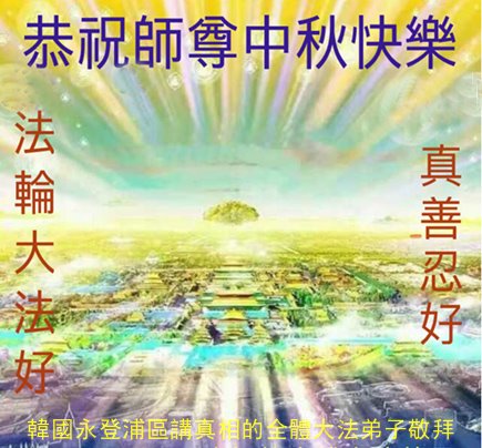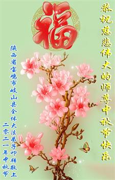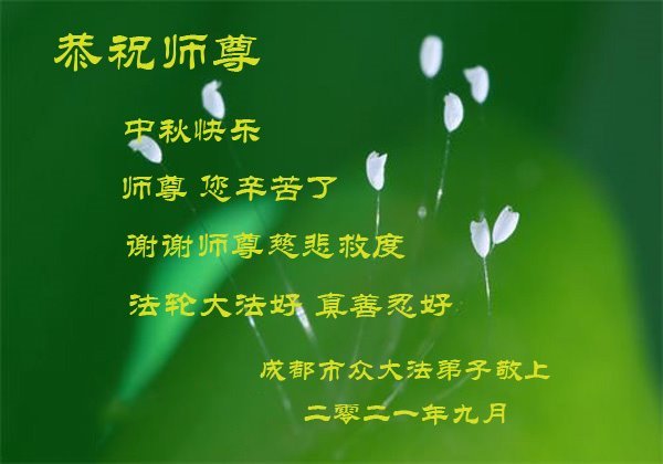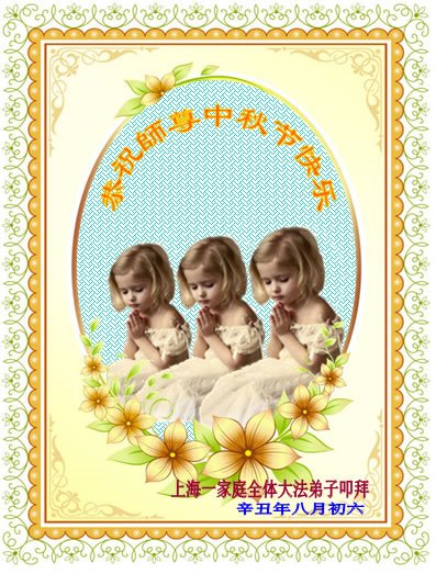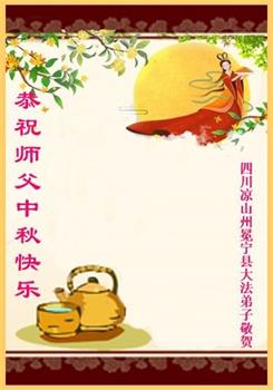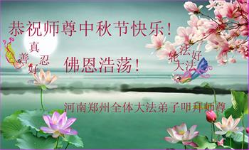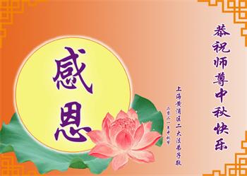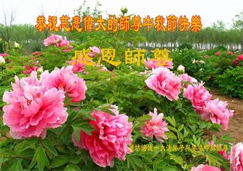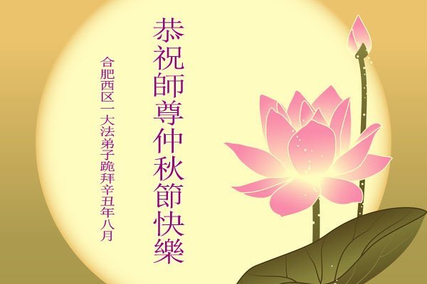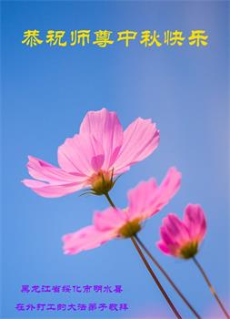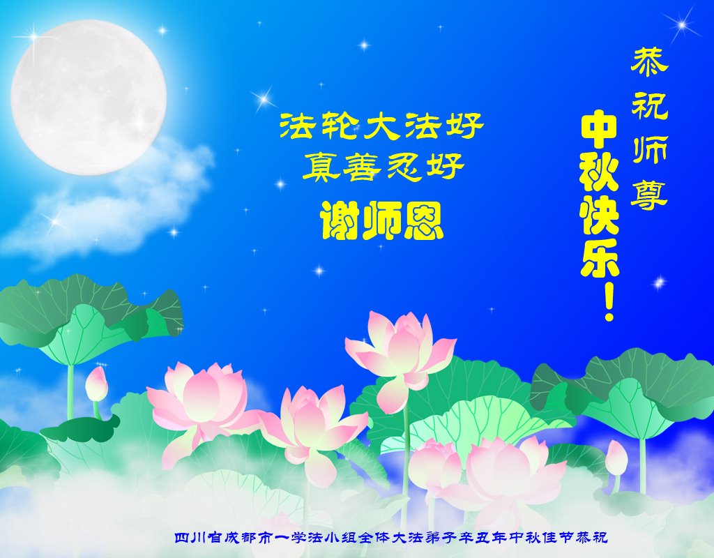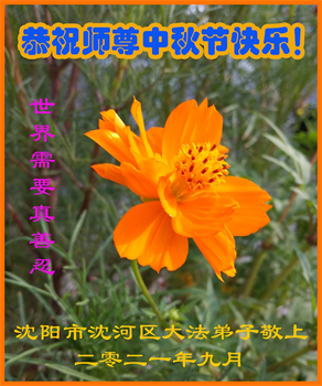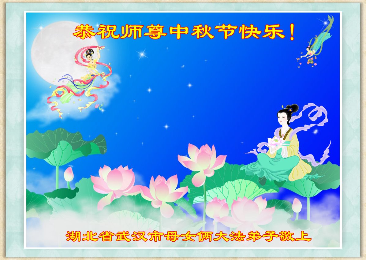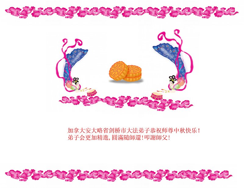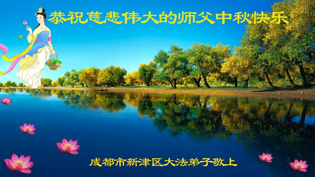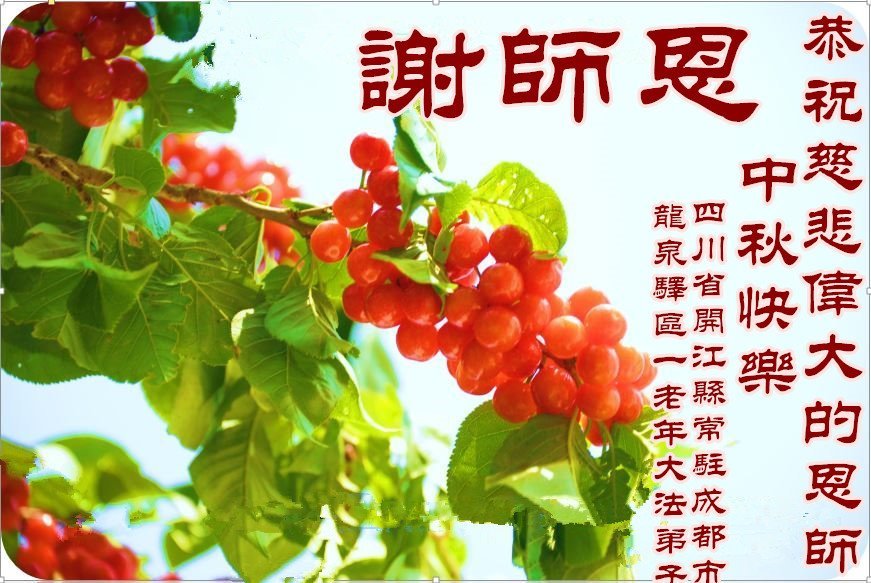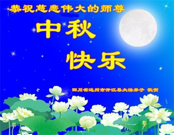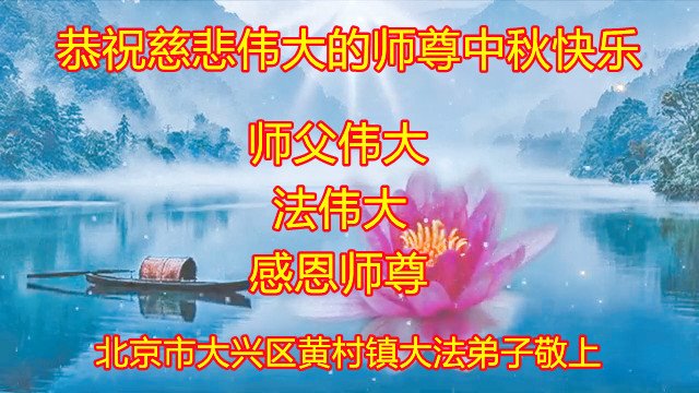脑中装着大法,生命就有了希望,心中装着众生,再苦也不觉的辛劳,感恩师尊将法轮大法的法理捧到了我们的面前,赋予我们大法弟子的神圣荣光。每逢佳节倍思亲,值此中秋佳节即将来临之际,衷心遥祝师尊中秋节快乐!愿法轮大法好的佛光普照人间!