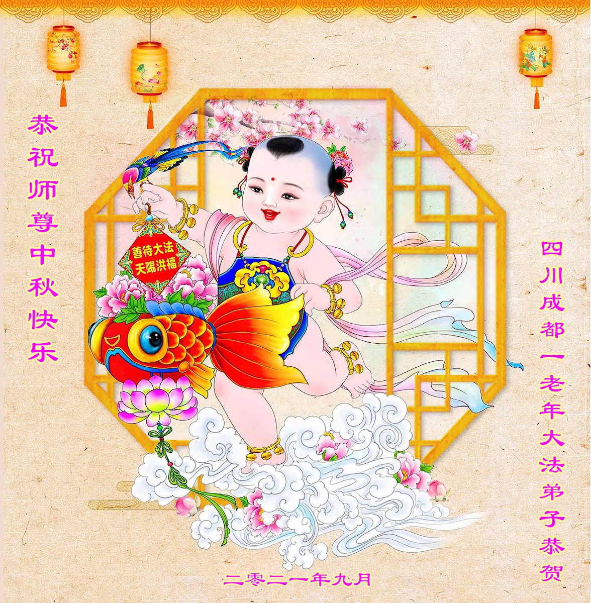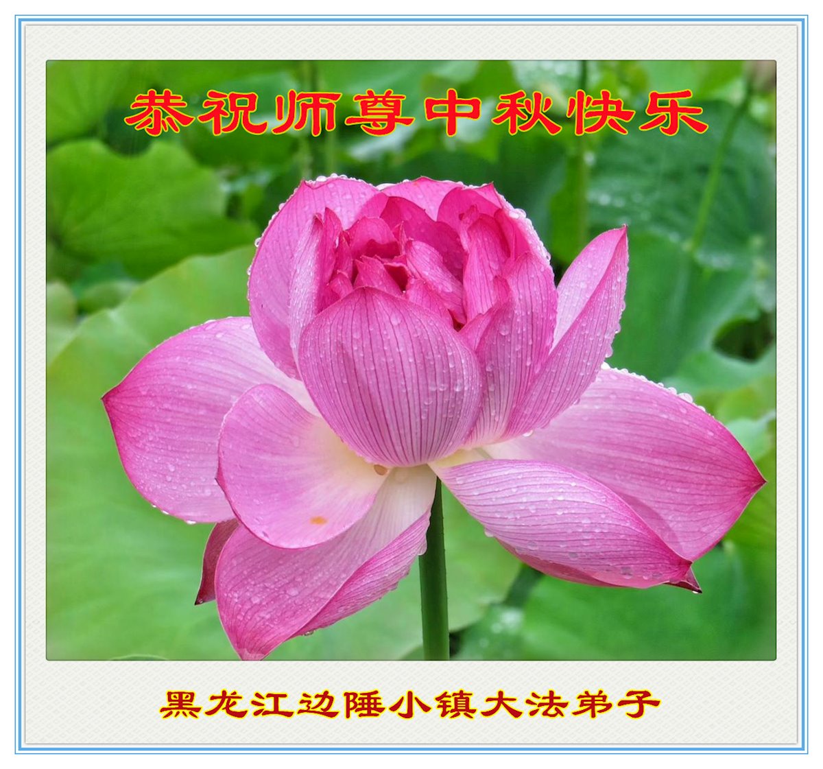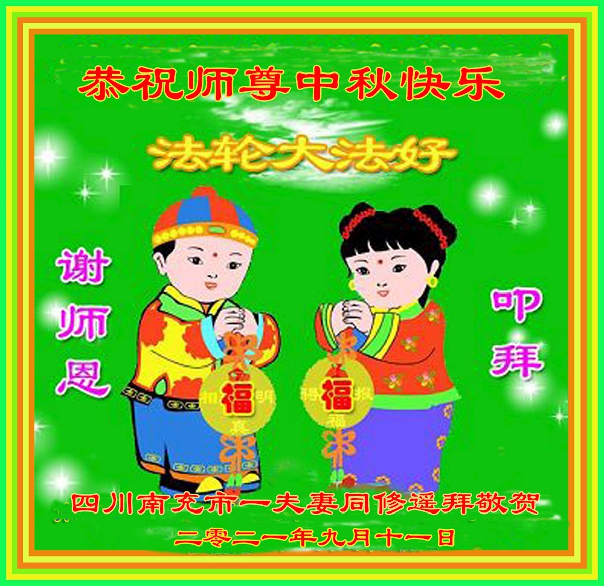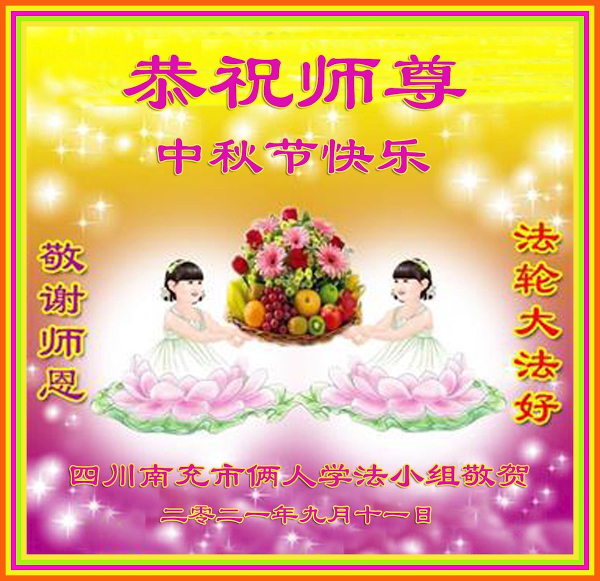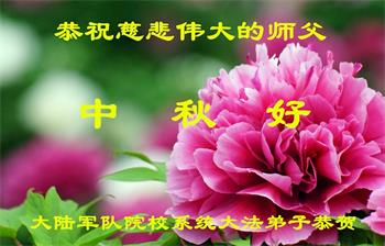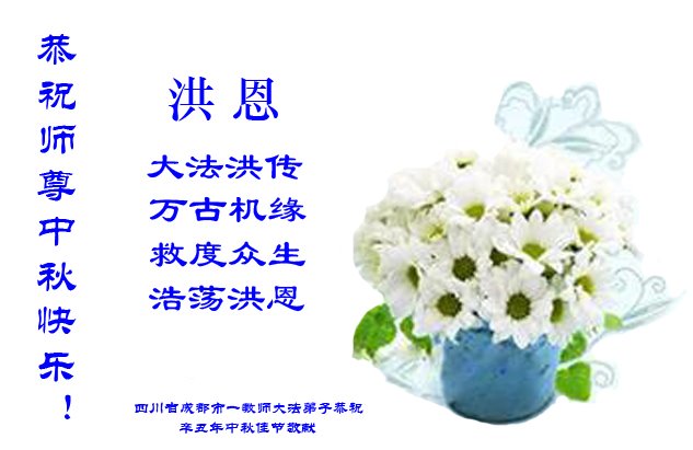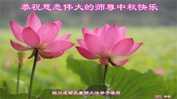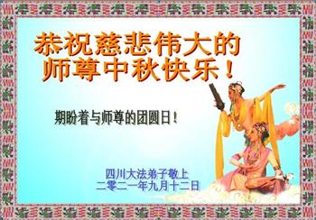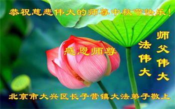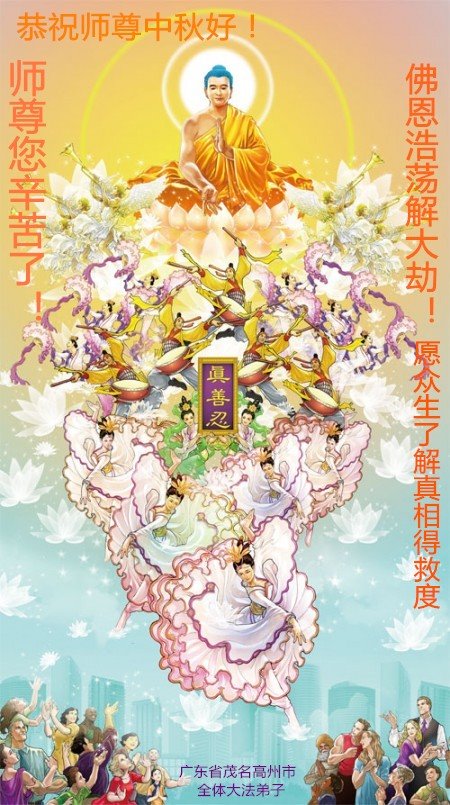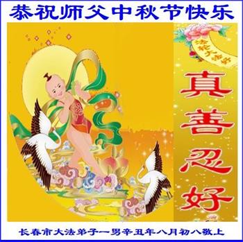 脑中装着大法,生命就有了希望,心中装着众生,再苦也不觉的辛劳,感恩师尊将法轮大法的法理捧到了我们的面前,赋予我们大法弟子的神圣荣光。每逢佳节倍思亲,值此中秋佳节即将来临之际,衷心遥祝师尊中秋节快乐!愿法轮大法好的佛光普照人间!
