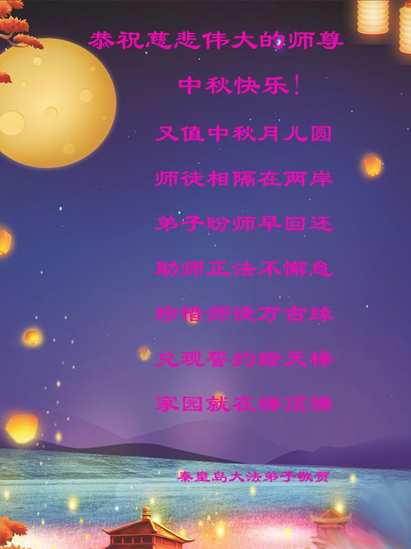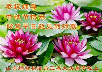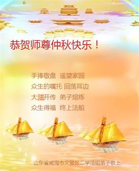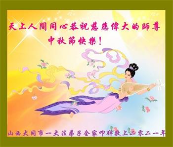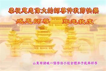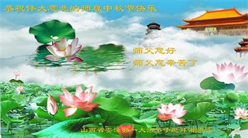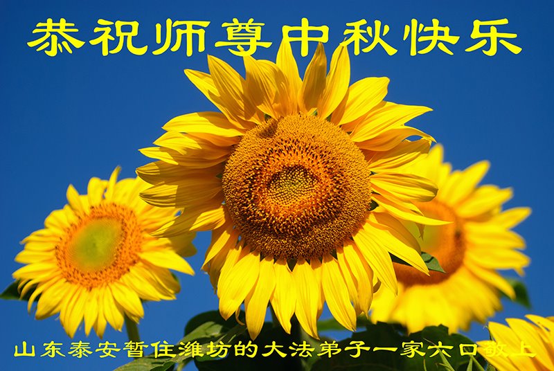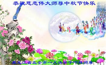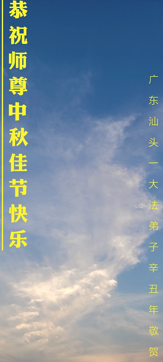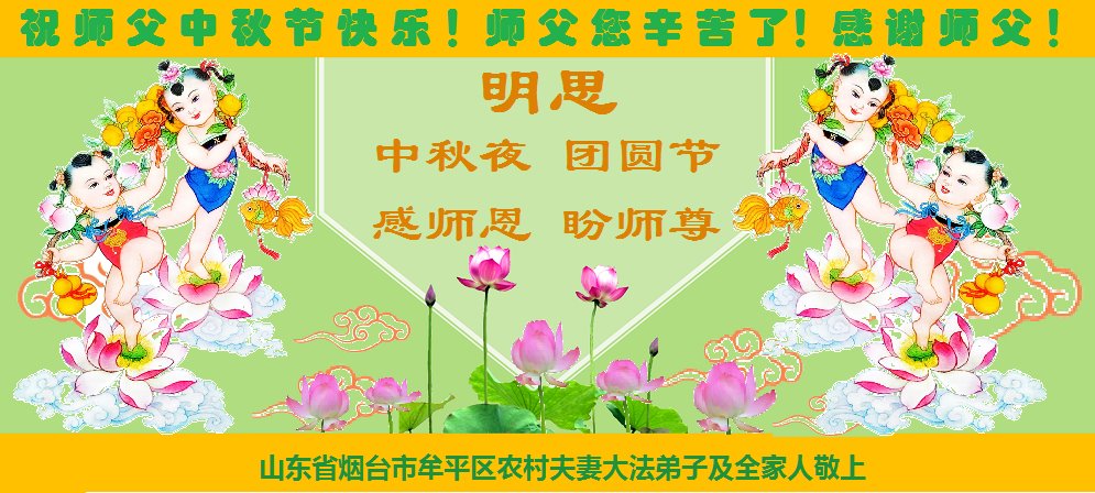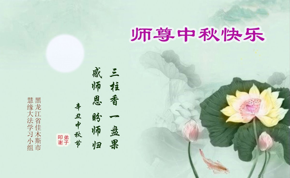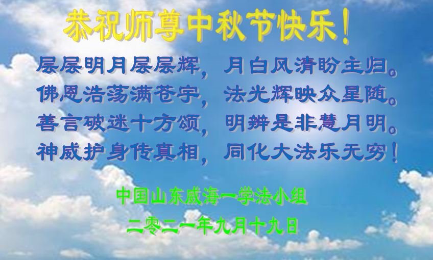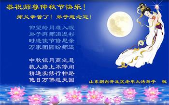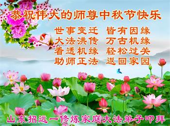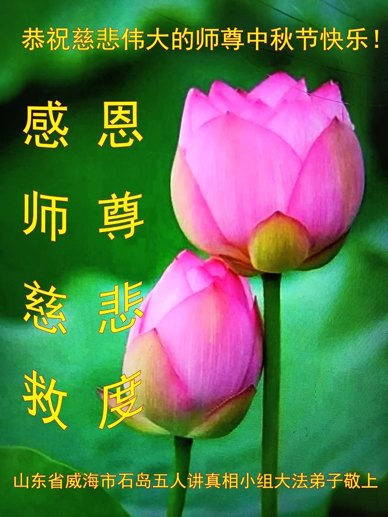 在中秋佳节到来之际,烟台市教育系统大法弟子想念师父,感恩师尊的慈悲苦度!在剩下不多的时间里,弟子们一定修好自己救度众生,惟愿师尊笑。