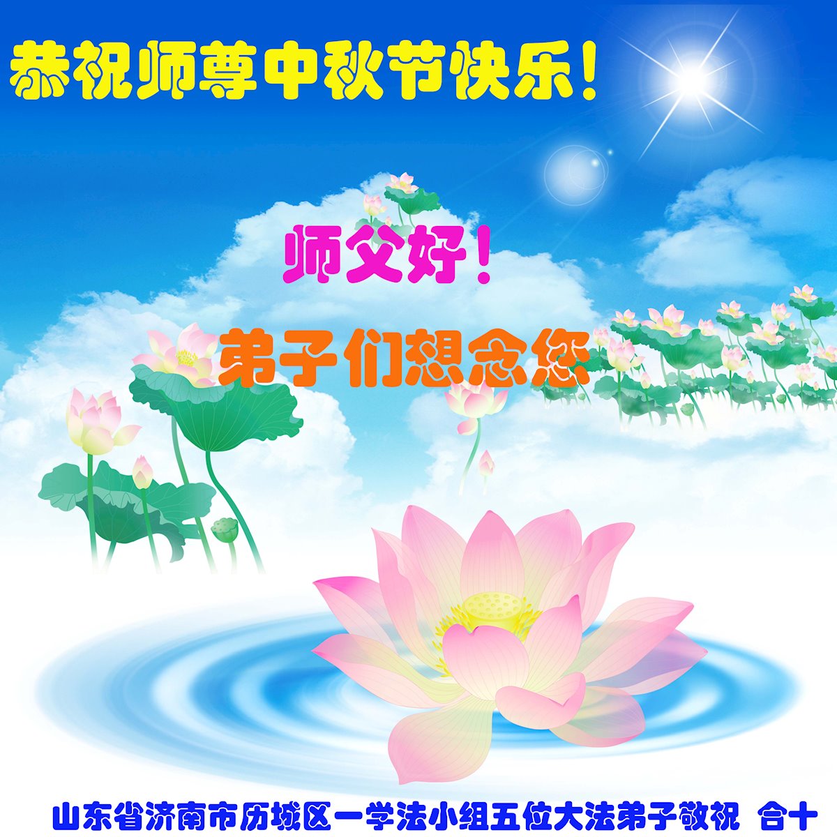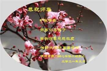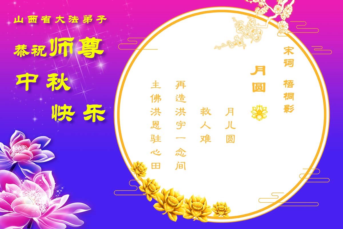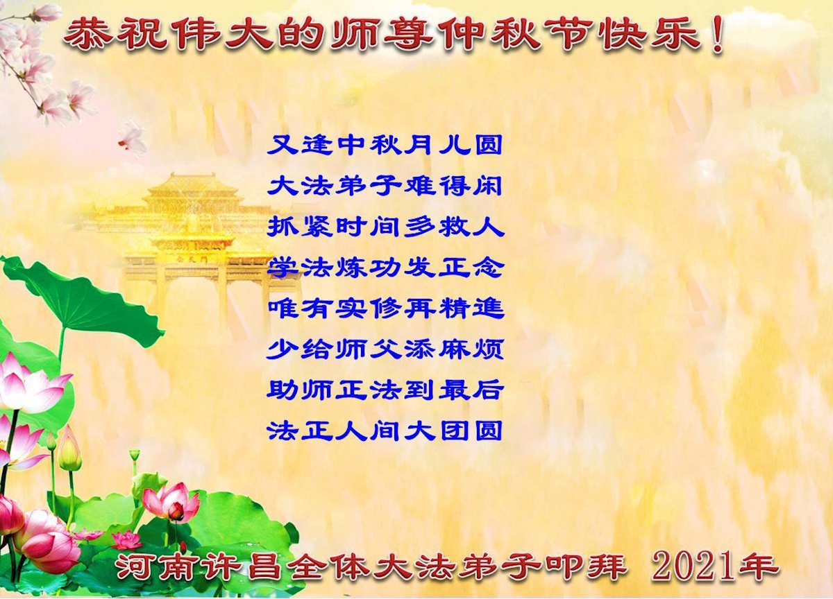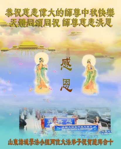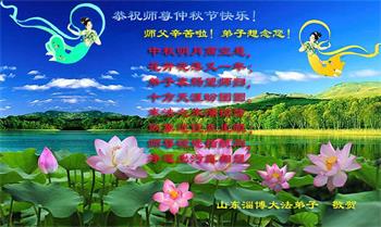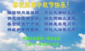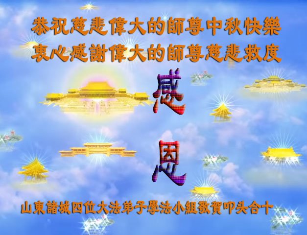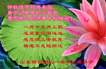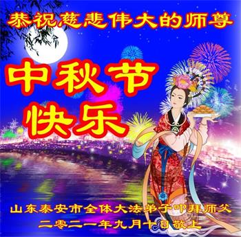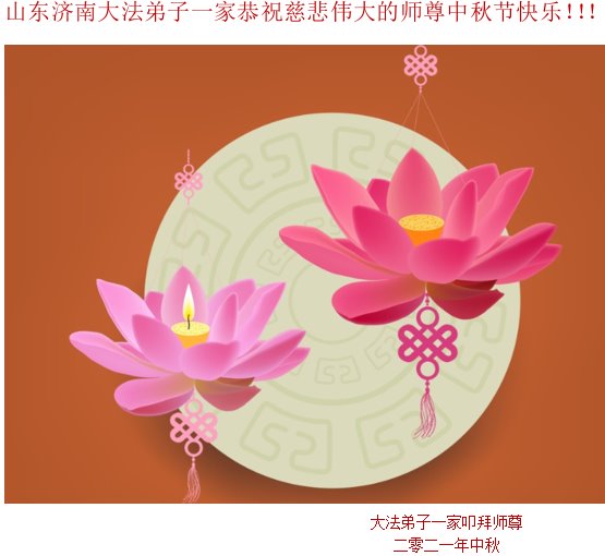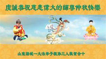 在中秋佳节到来之际,烟台市教育系统大法弟子想念师父,感恩师尊的慈悲苦度!在剩下不多的时间里,弟子们一定修好自己救度众生,惟愿师尊笑。