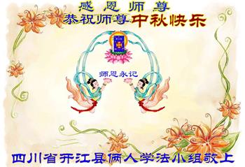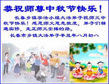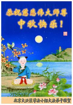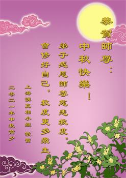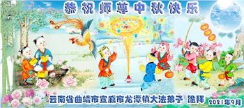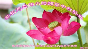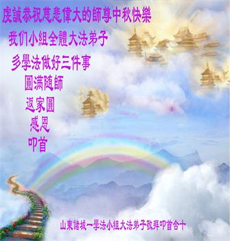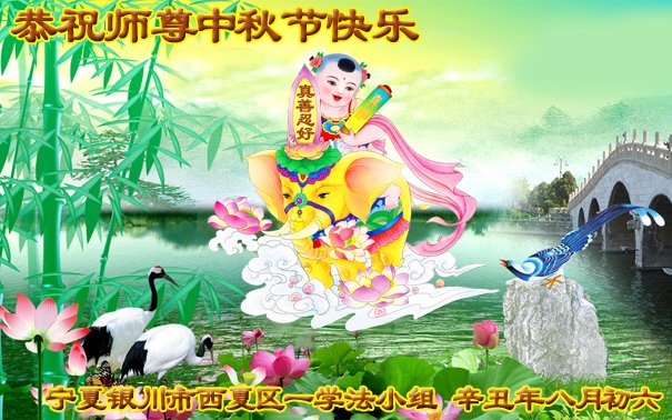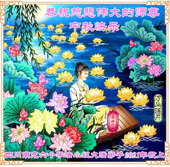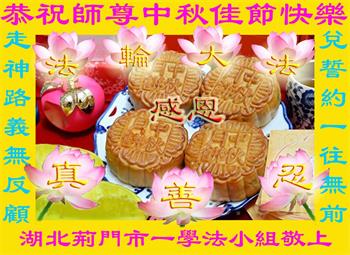 又是一年中秋,我们学法小组有当老板的、有教师、有做会计的、有家庭主妇、有70岁的老太太、有10多岁的大法小弟子,我们会相互配合,共同交流切磋、勇猛精進,形成整体,完成史前大愿,请师父放心!