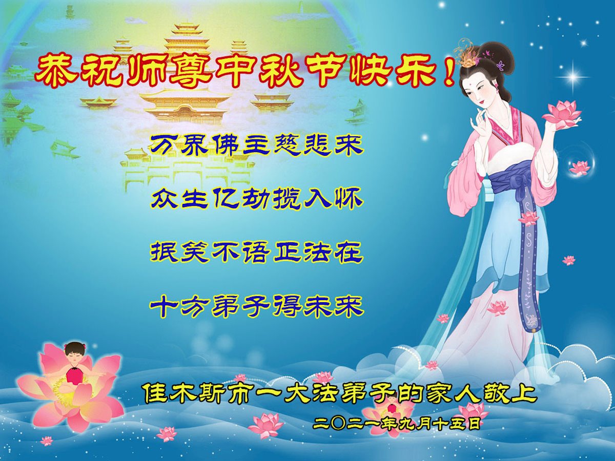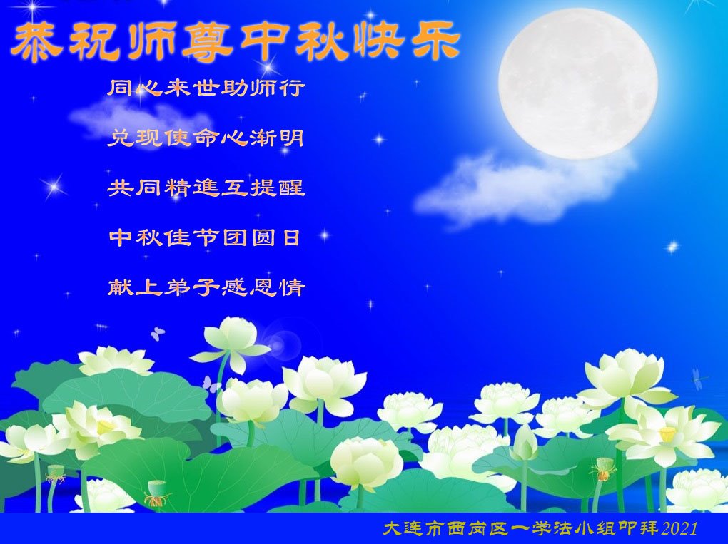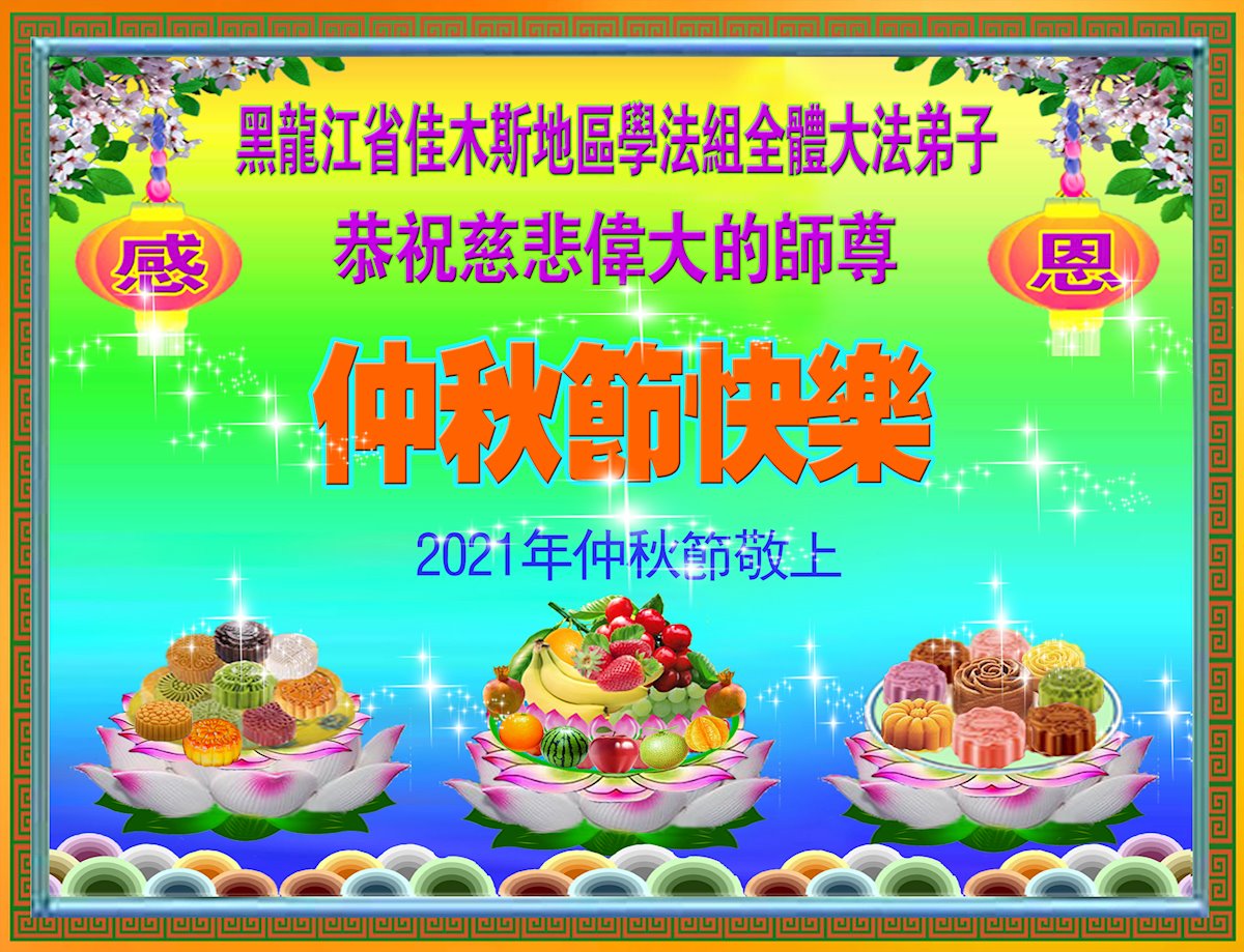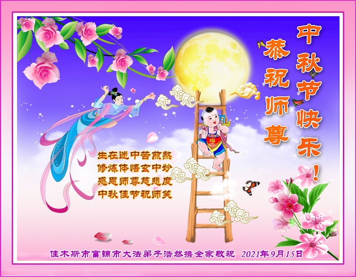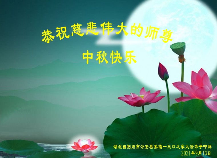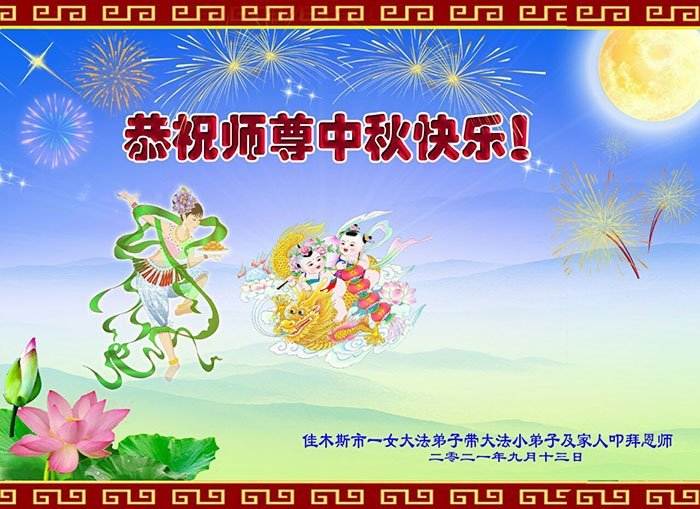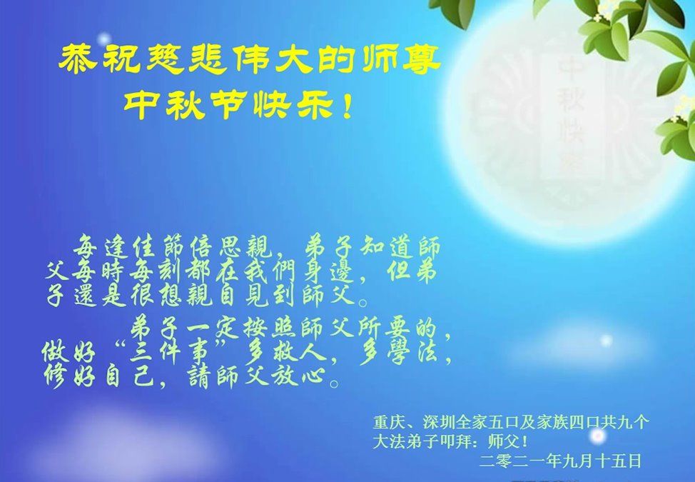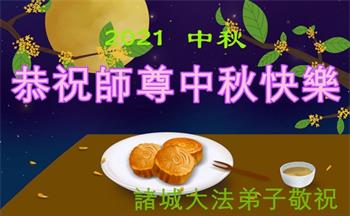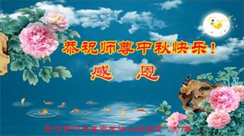 【明慧网二零二一年九月二十日】二十九年前,法轮大法创始人李洪志大师将真、善、忍大法洪传于世,上亿人身心受益。大江南北、五湖四海,每一名大法弟子深深庆幸在此末法末劫之时,得到如此珍贵的宇宙大法,得到师尊亲自救度。在这合家团圆的中秋节,来自中国大陆五十行业的大法弟子想念师尊,遥拜师尊中秋好!
