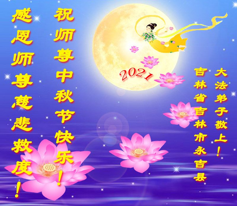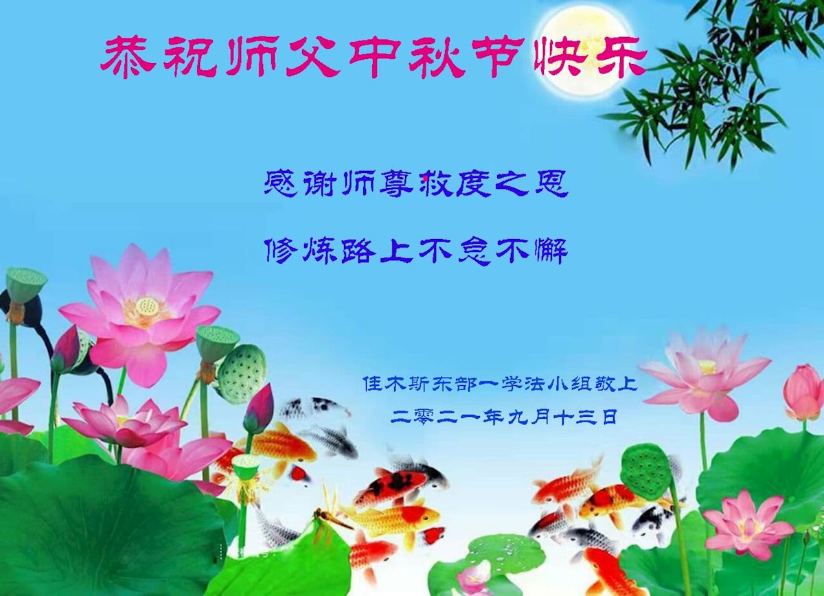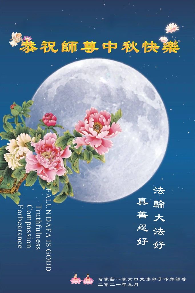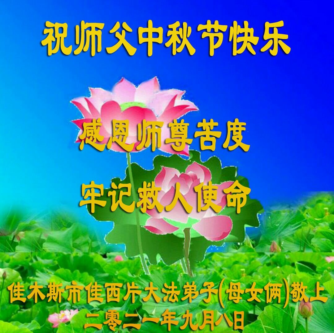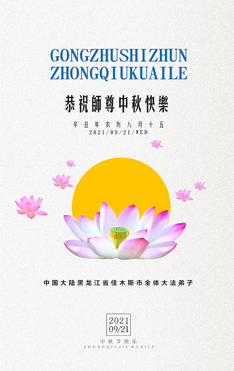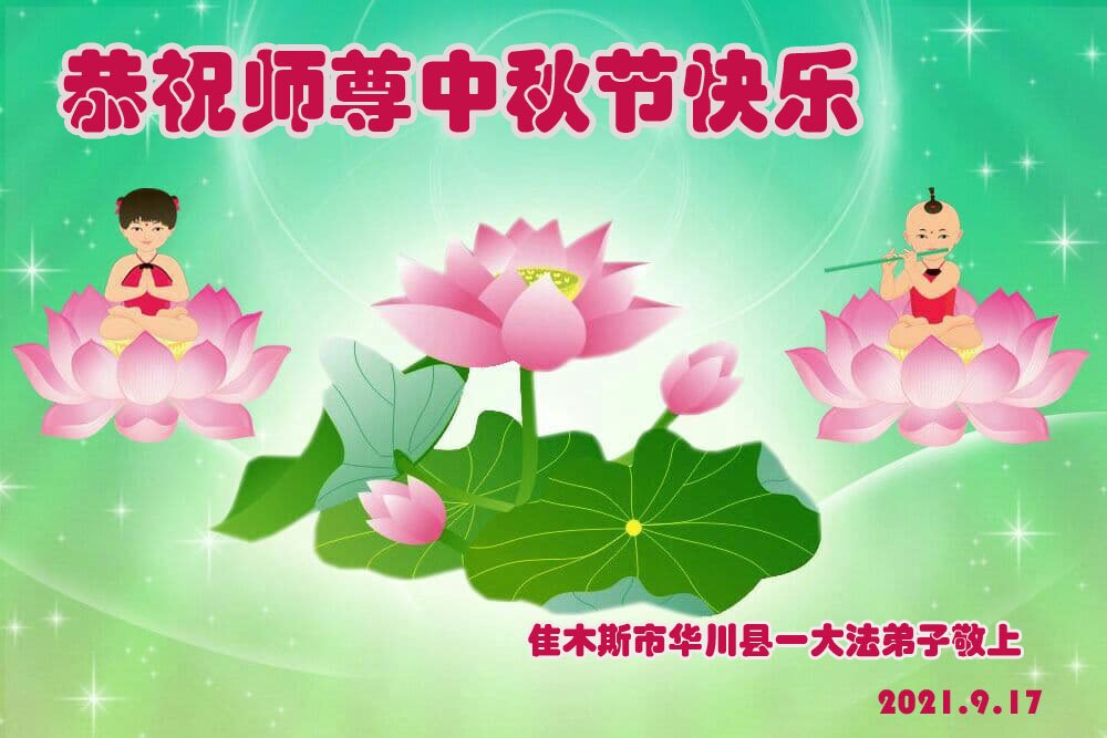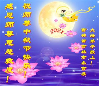 【明慧网二零二一年九月二十日】二十九年前,法轮大法创始人李洪志大师将真、善、忍大法洪传于世,上亿人身心受益。大江南北、五湖四海,每一名大法弟子深深庆幸在此末法末劫之时,得到如此珍贵的宇宙大法,得到师尊亲自救度。在这合家团圆的中秋节,来自中国大陆五十行业的大法弟子想念师尊,遥拜师尊中秋好!