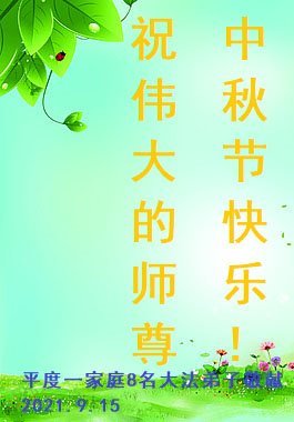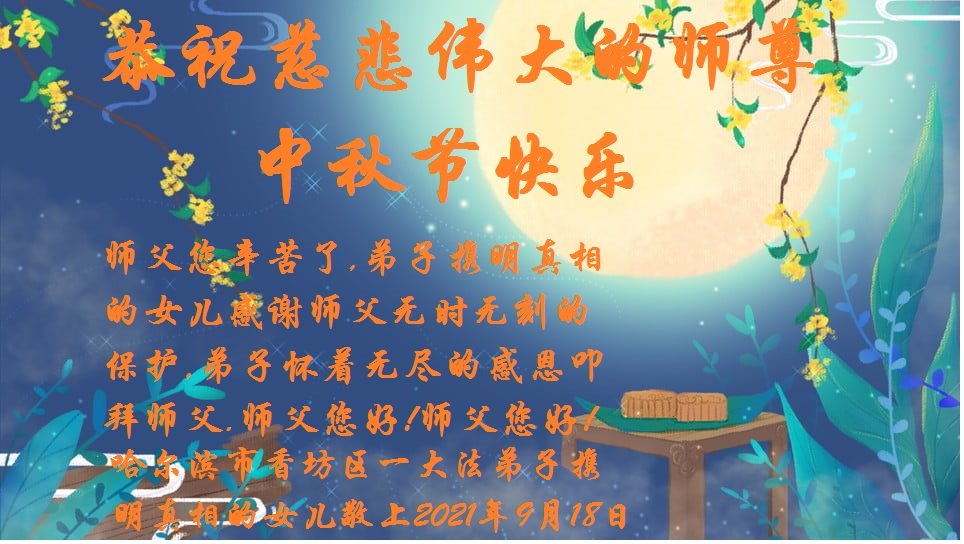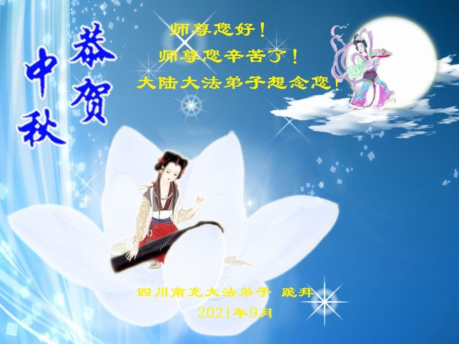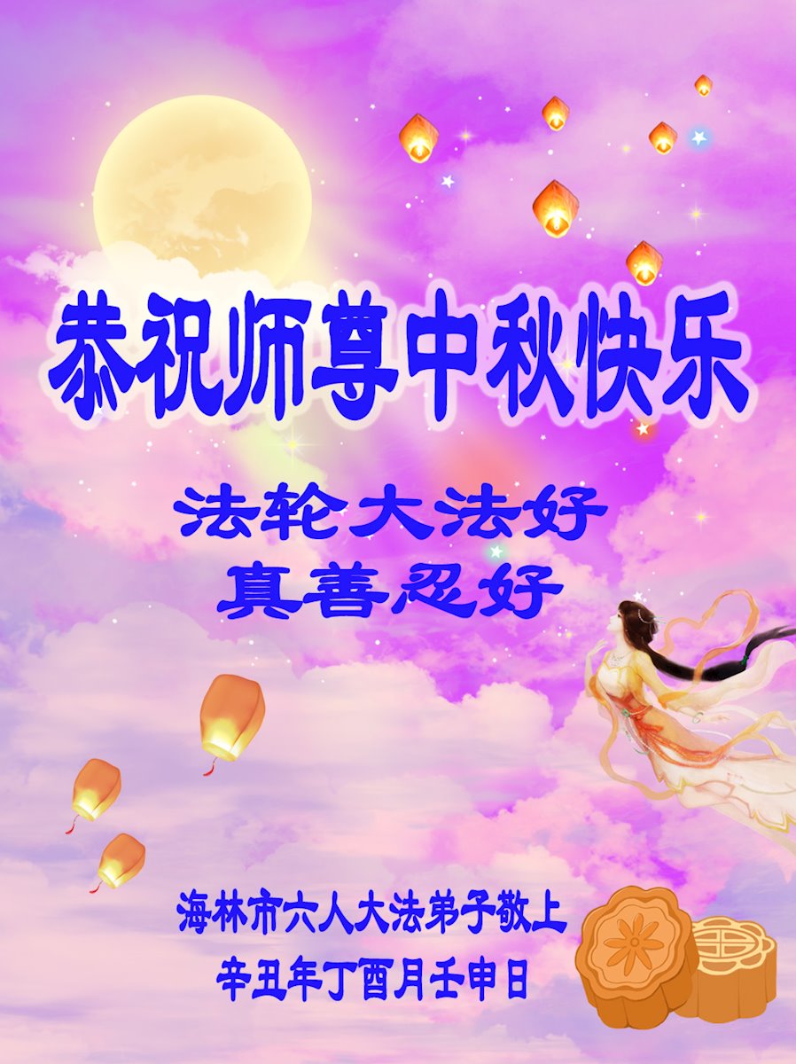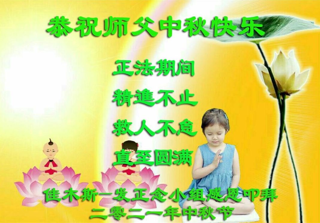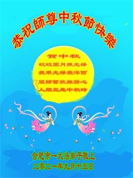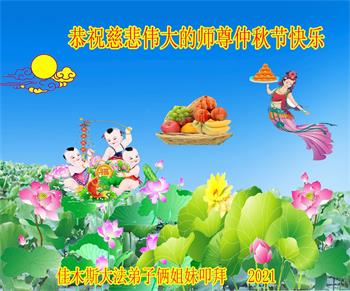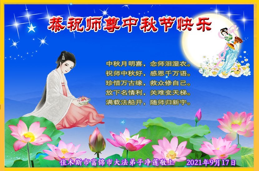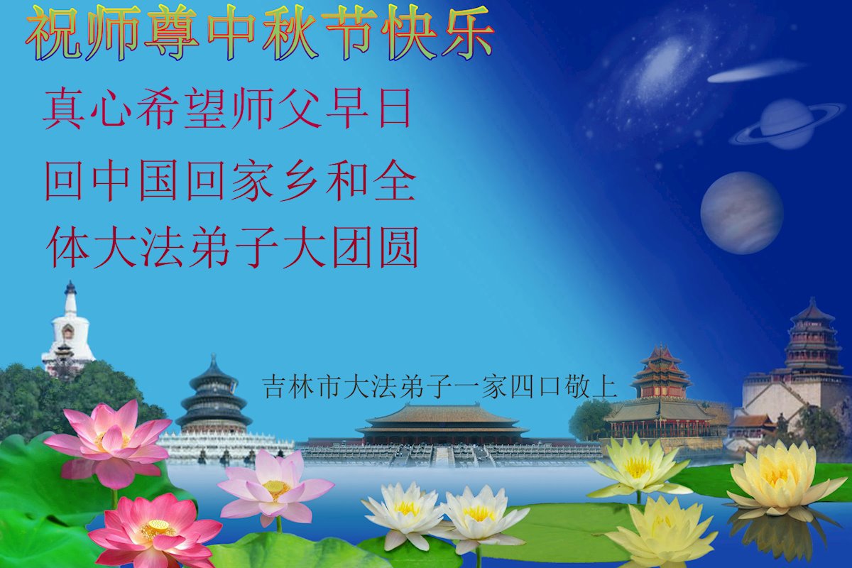 【明慧网二零二一年九月二十日】二十九年前,法轮大法创始人李洪志大师将真、善、忍大法洪传于世,上亿人身心受益。大江南北、五湖四海,每一名大法弟子深深庆幸在此末法末劫之时,得到如此珍贵的宇宙大法,得到师尊亲自救度。在这合家团圆的中秋节,来自中国大陆五十行业的大法弟子想念师尊,遥拜师尊中秋好!