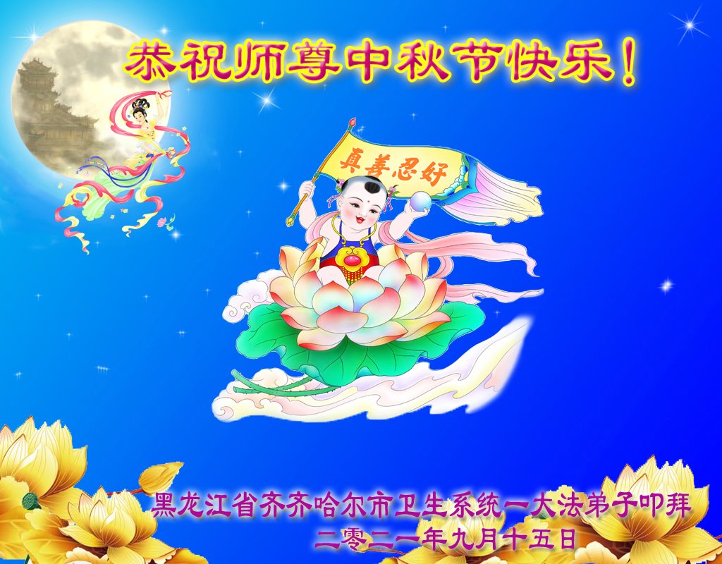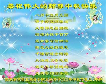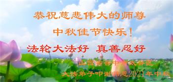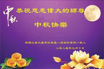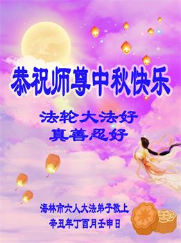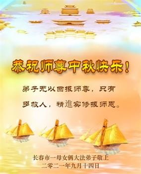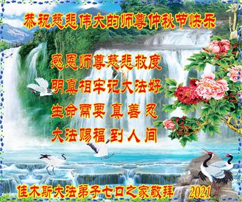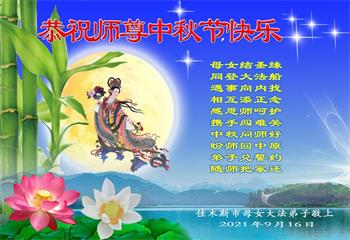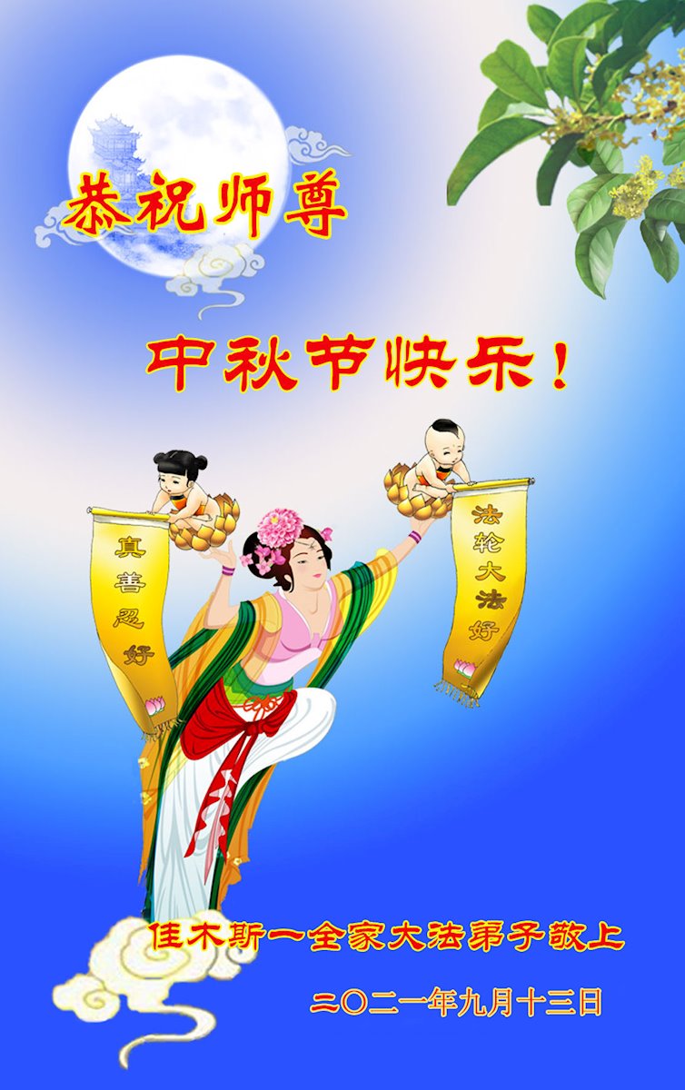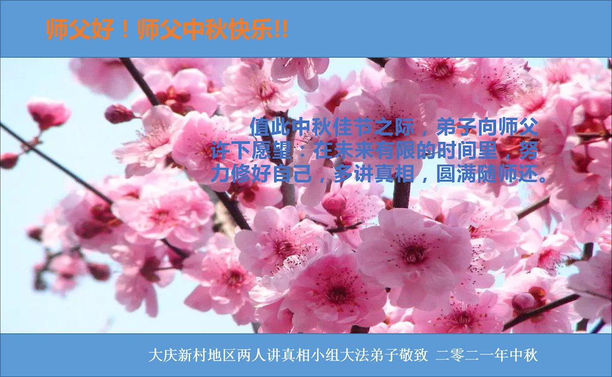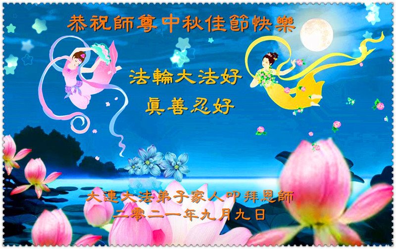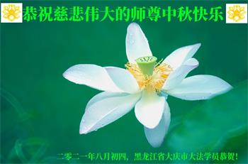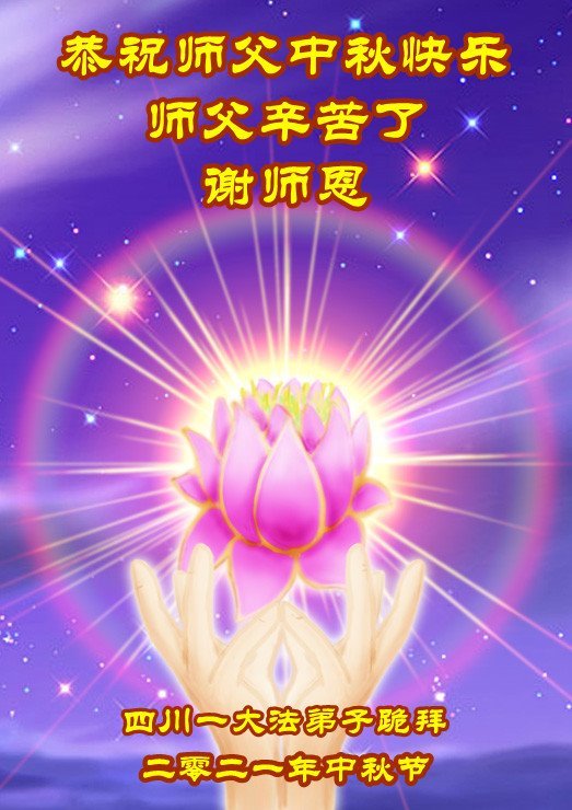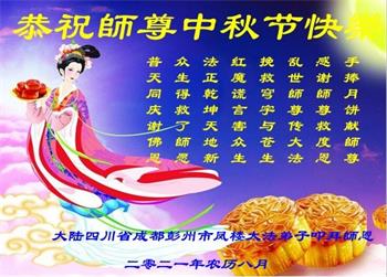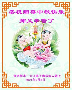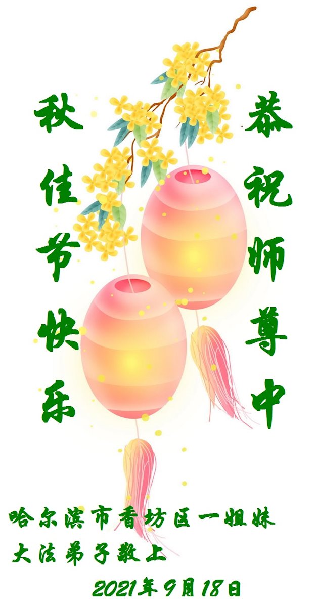 【明慧网二零二一年九月二十日】二十九年前,法轮大法创始人李洪志大师将真、善、忍大法洪传于世,上亿人身心受益。大江南北、五湖四海,每一名大法弟子深深庆幸在此末法末劫之时,得到如此珍贵的宇宙大法,得到师尊亲自救度。在这合家团圆的中秋节,来自中国大陆五十行业的大法弟子想念师尊,遥拜师尊中秋好!