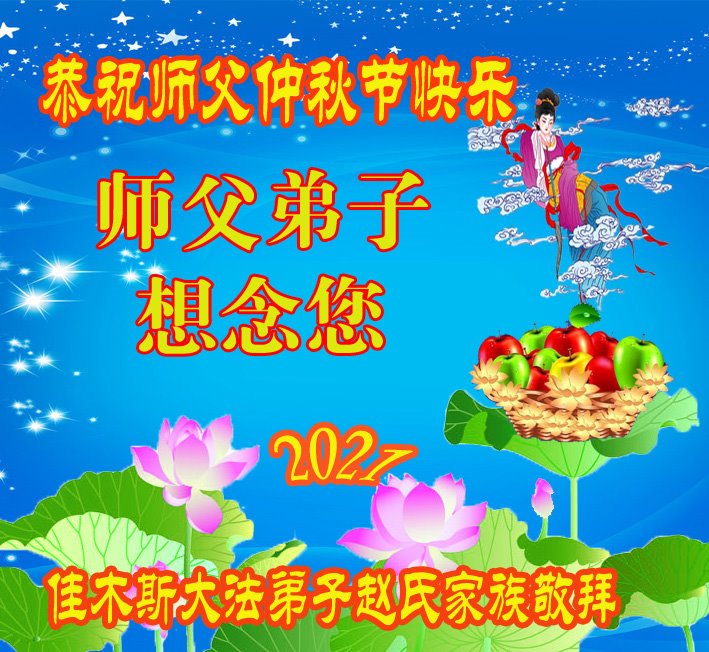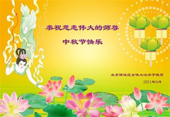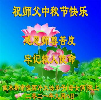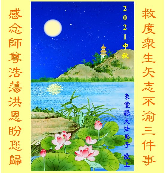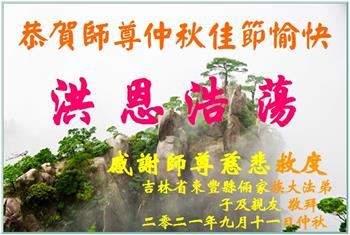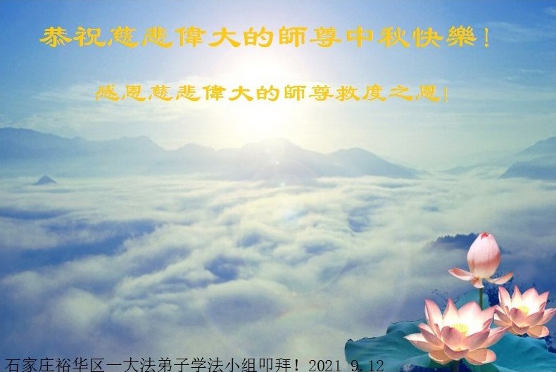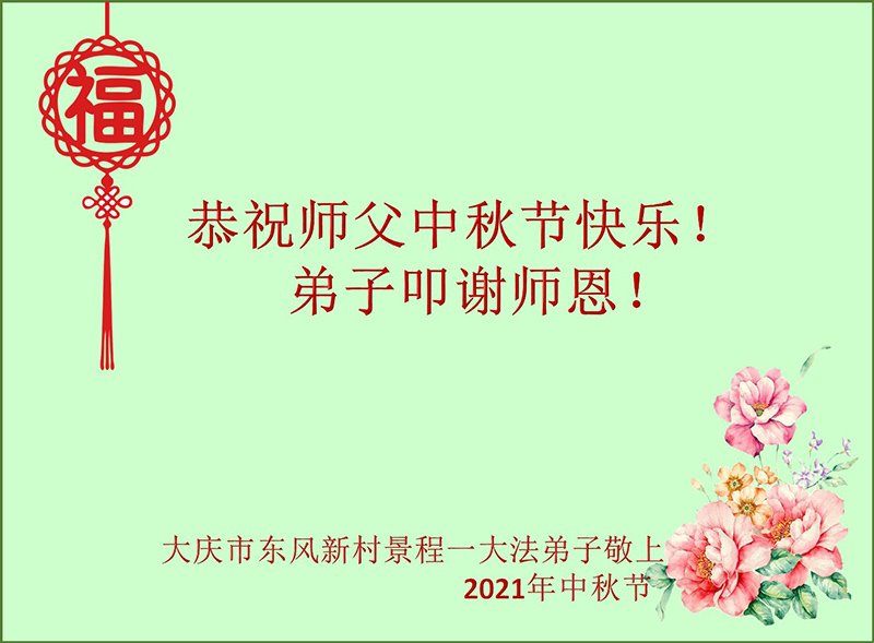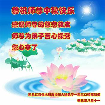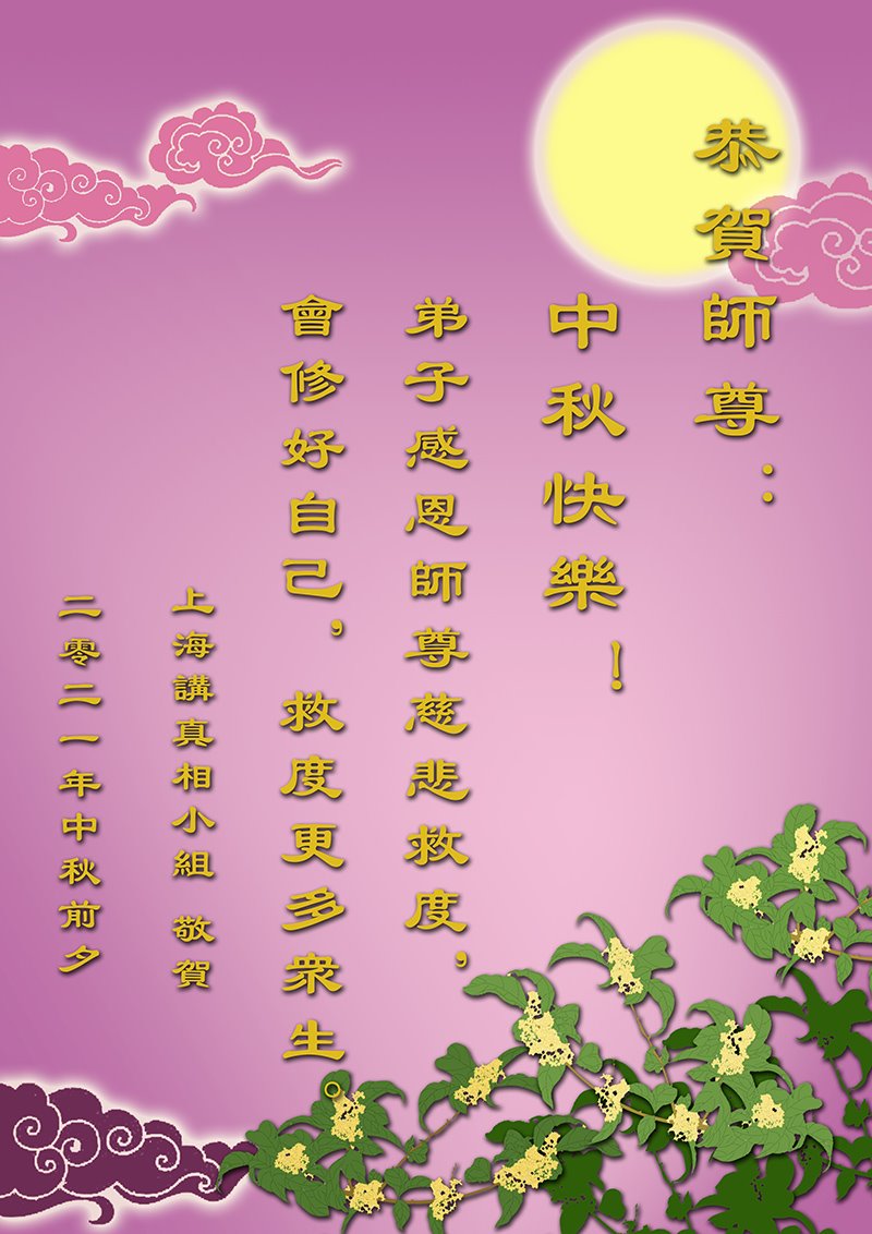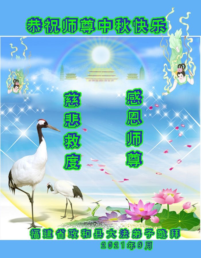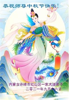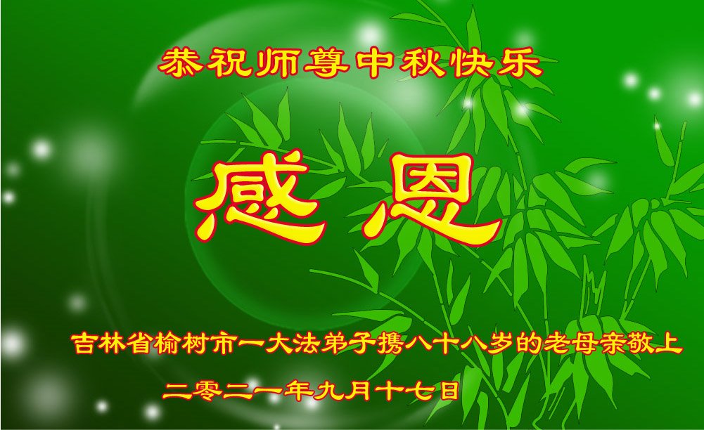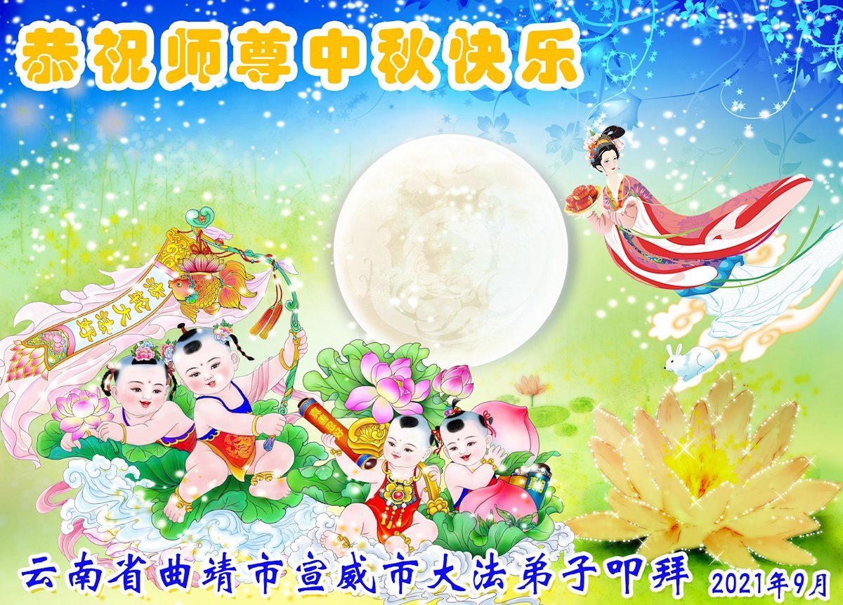 【明慧网二零二一年九月二十日】二十九年前,法轮大法创始人李洪志大师将真、善、忍大法洪传于世,上亿人身心受益。大江南北、五湖四海,每一名大法弟子深深庆幸在此末法末劫之时,得到如此珍贵的宇宙大法,得到师尊亲自救度。在这合家团圆的中秋节,来自中国大陆五十行业的大法弟子想念师尊,遥拜师尊中秋好!