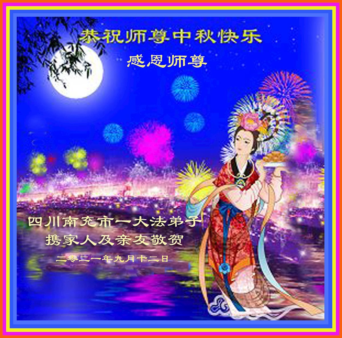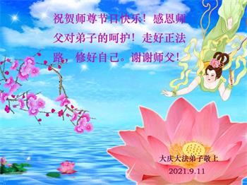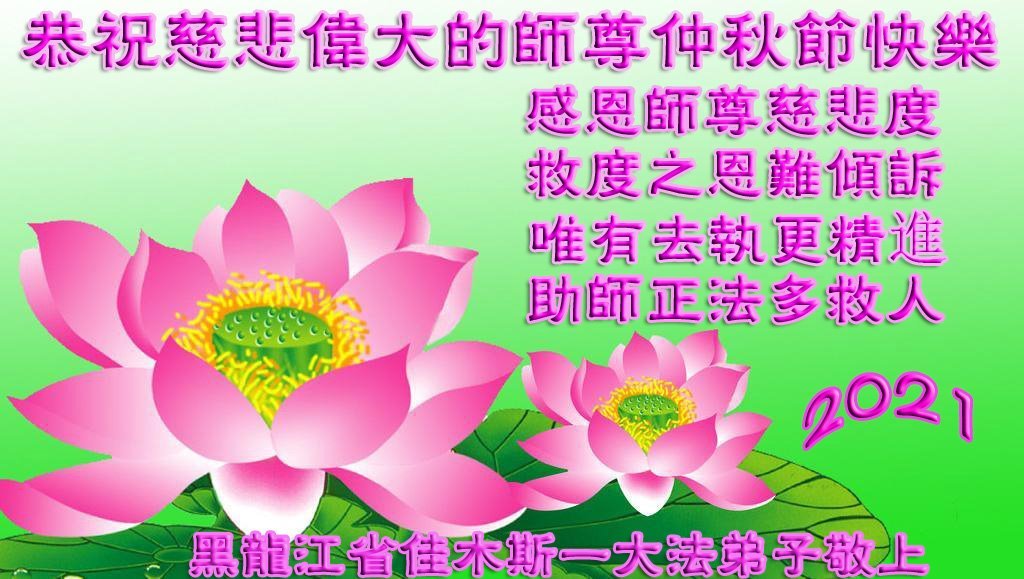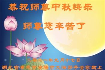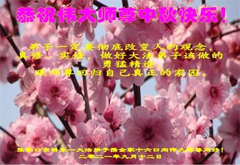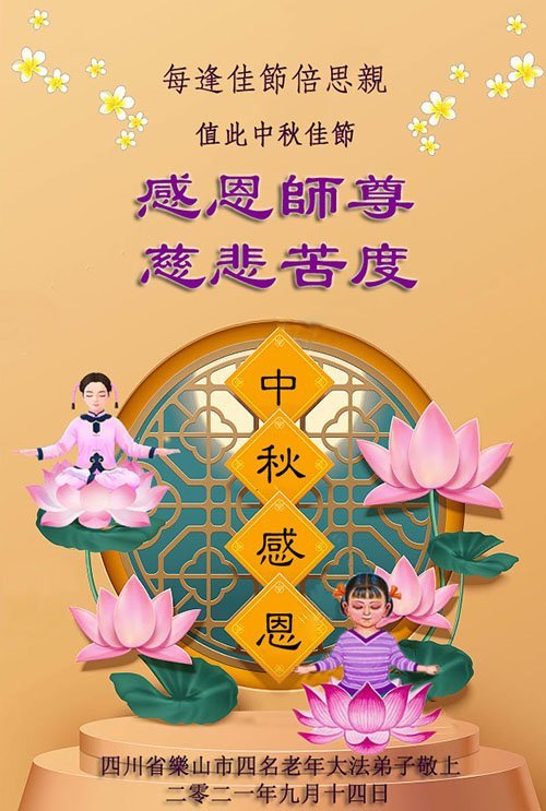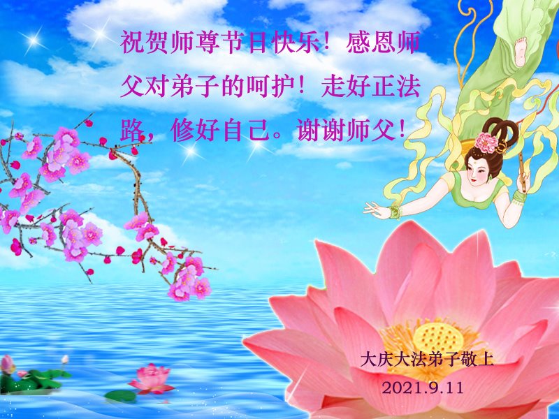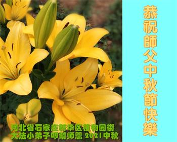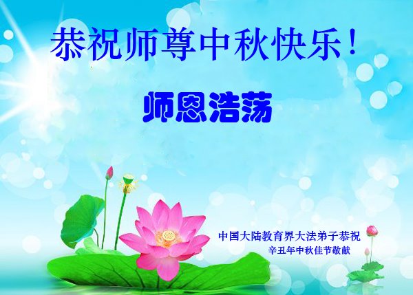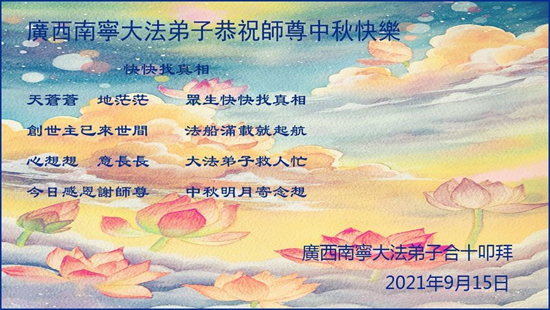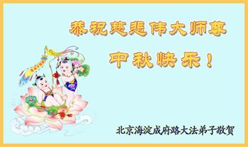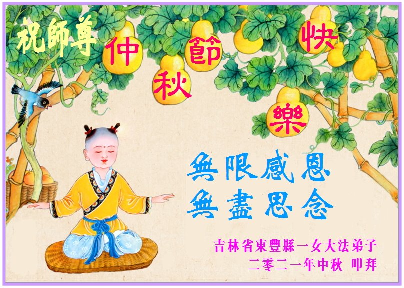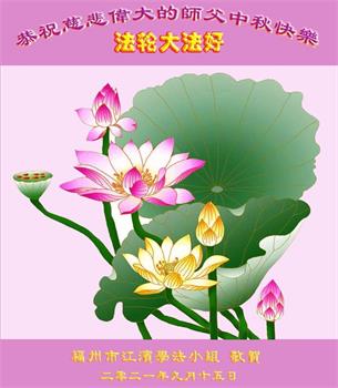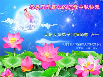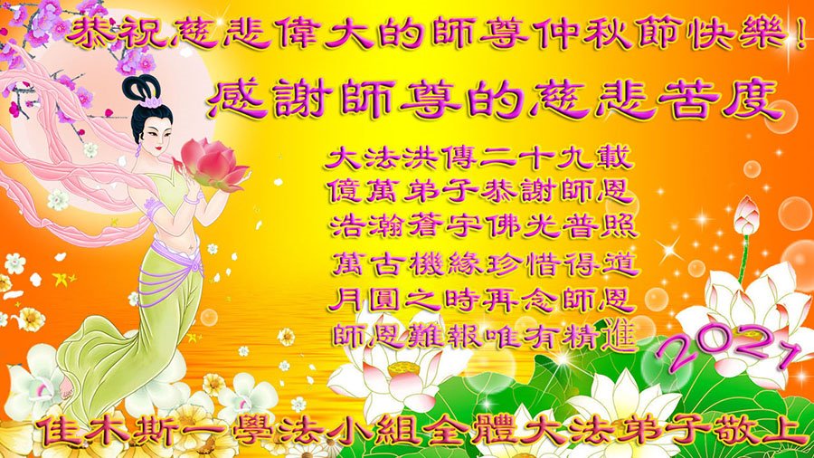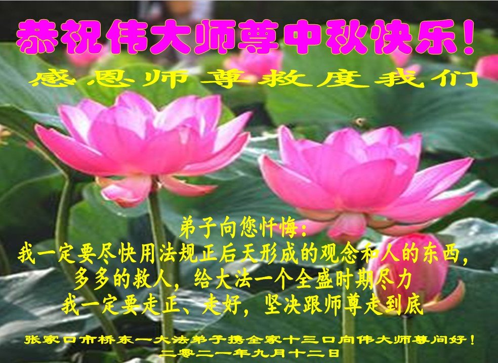 【明慧网二零二一年九月二十日】二十九年前,法轮大法创始人李洪志大师将真、善、忍大法洪传于世,上亿人身心受益。大江南北、五湖四海,每一名大法弟子深深庆幸在此末法末劫之时,得到如此珍贵的宇宙大法,得到师尊亲自救度。在这合家团圆的中秋节,来自中国大陆五十行业的大法弟子想念师尊,遥拜师尊中秋好!
