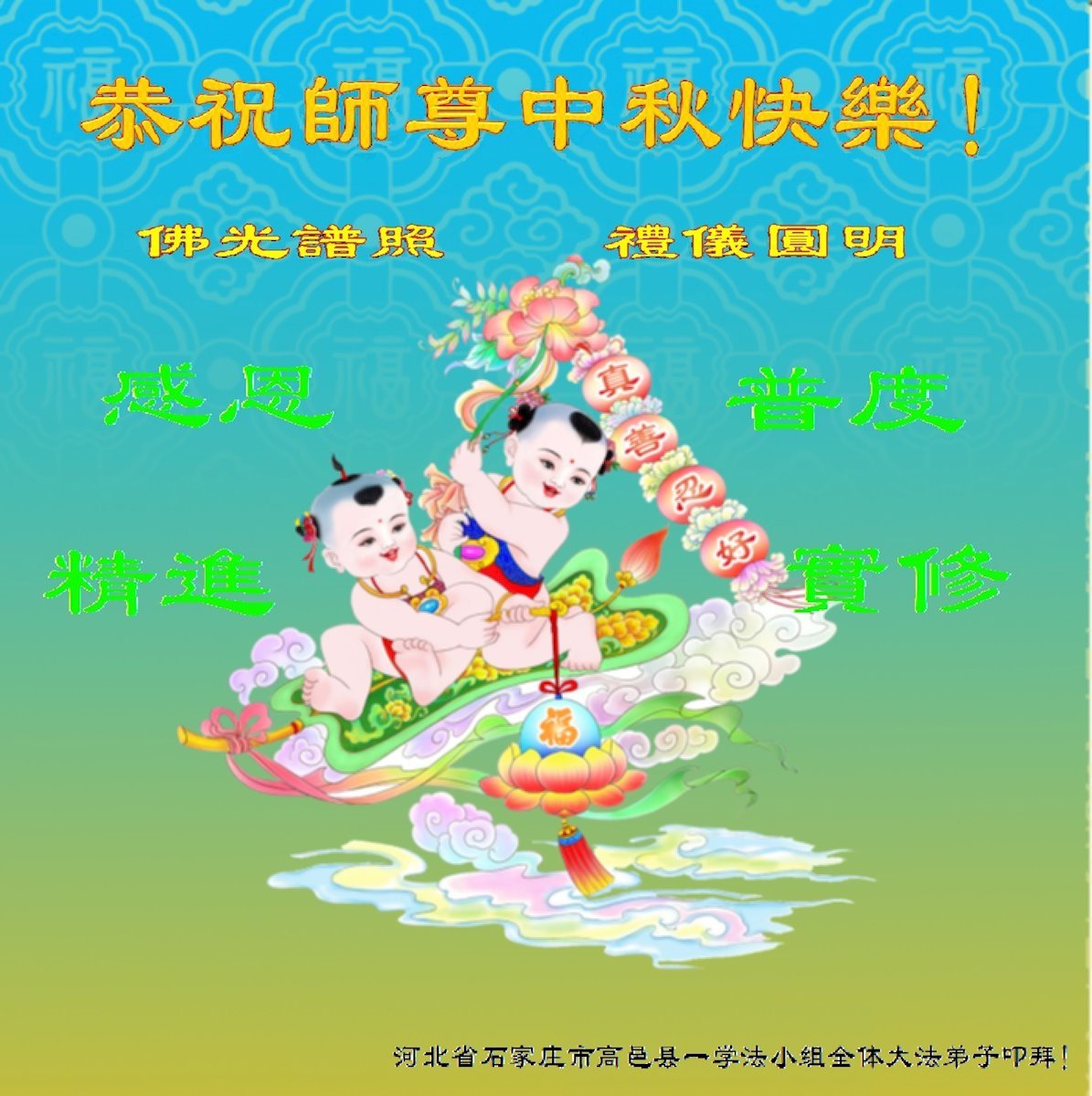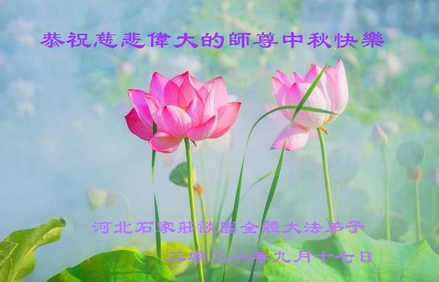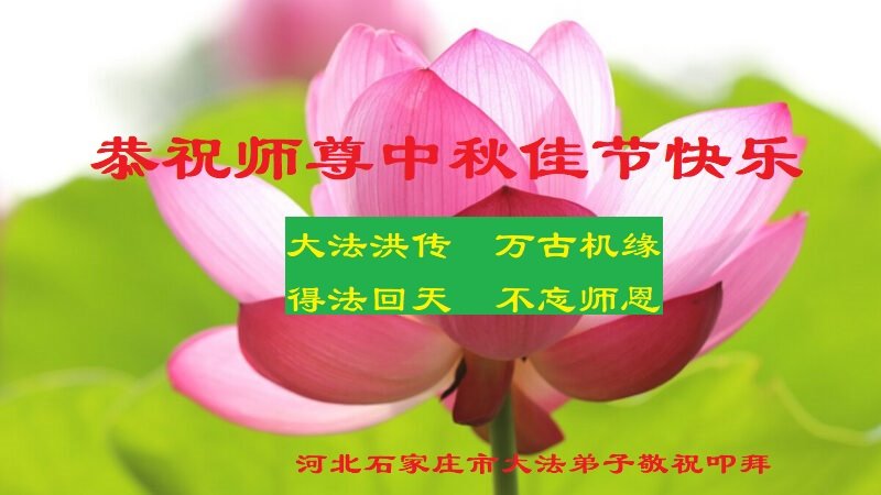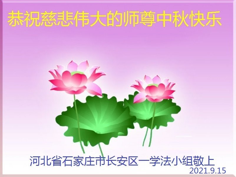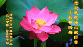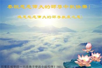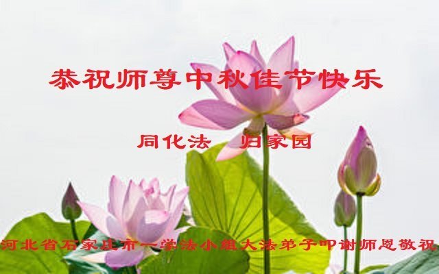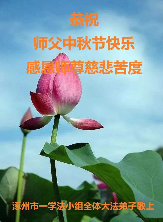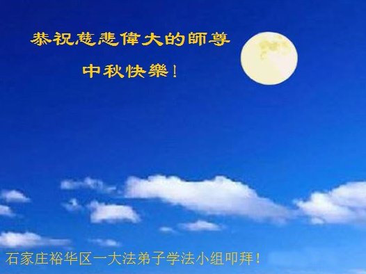 河北沧州石化一学法小组大法弟子恭祝师父中秋节快乐!师父您好!师父辛苦了!谢谢师父慈悲救度!