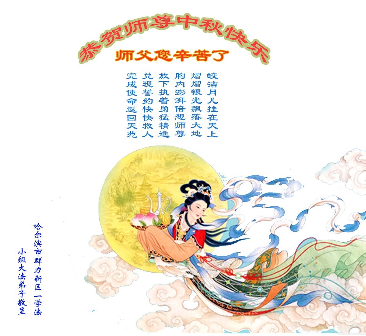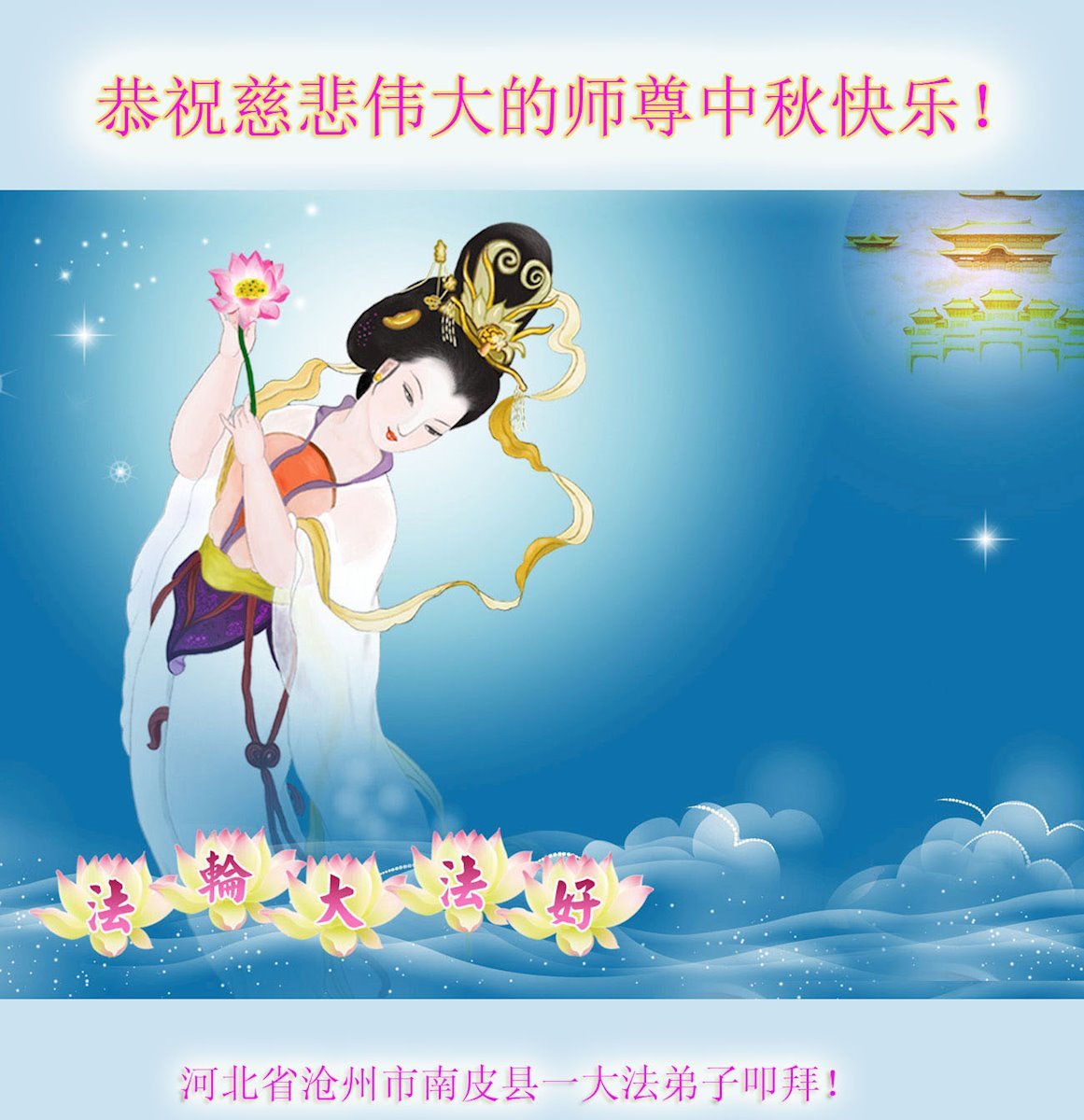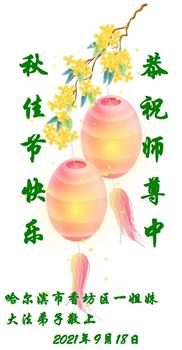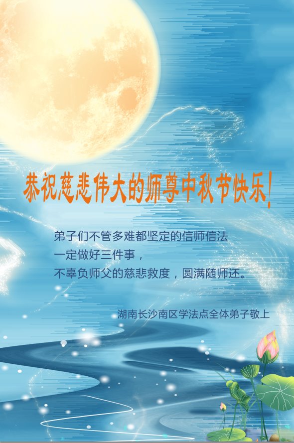 河北省沧州市一会计师大法弟子恭祝师父中秋节快乐!师父您好!师父辛苦了!谢谢师父慈悲救度!