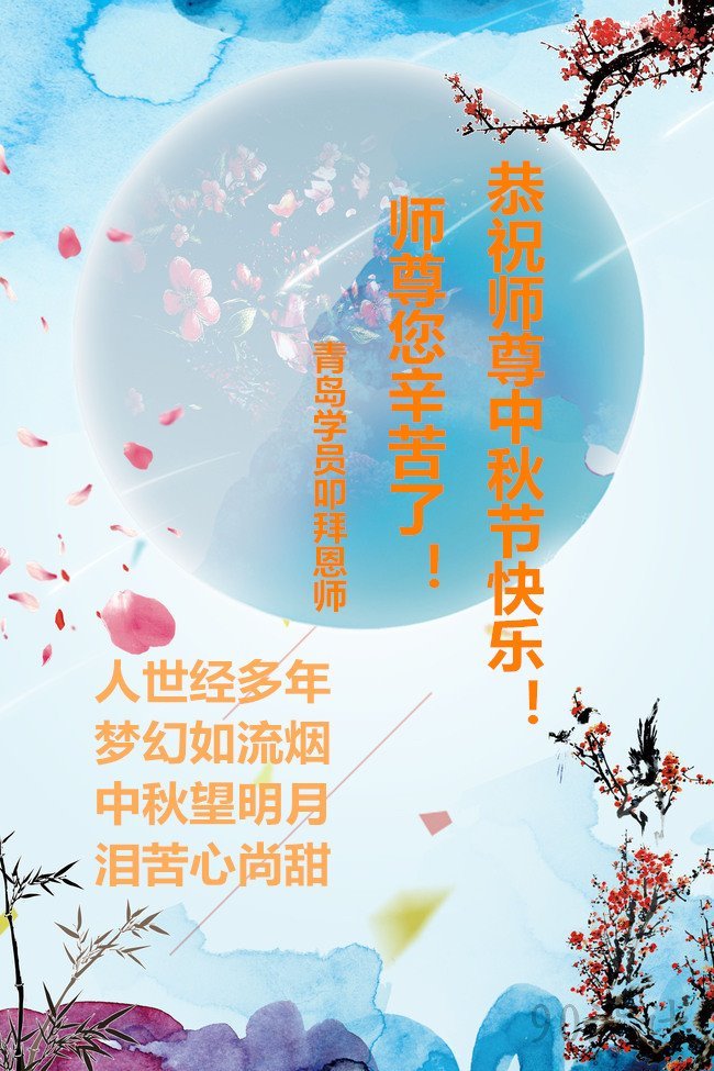 中秋月圆问师好,弟子跪拜谢师恩。