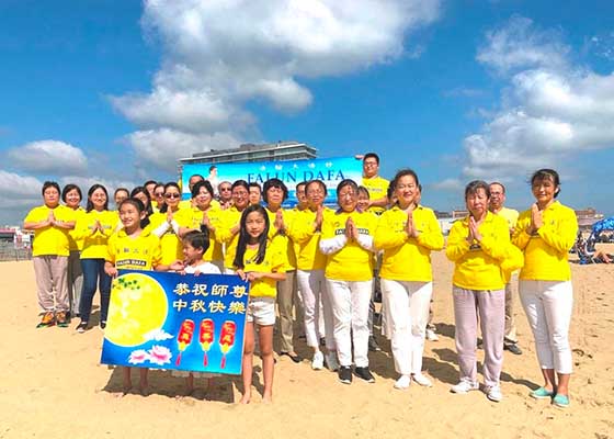 九月十八日,新泽西部份法轮功学员来到阿斯伯里公园的海滩,向过往的游人展示功法,并讲述法轮功反迫害真相。