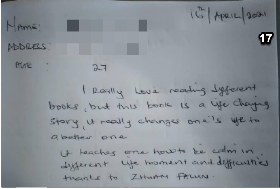 淳朴的当地人在拜读了《转法轮》之后,把心里的话记录在纸条上,交给詹姆士,感谢法轮大法给予他们的奇迹。每张纸条上收录的是一个生命,带动一个家庭乃至一个社区向善的故事。詹姆士收到的反馈很多,由于篇幅的关系,仅收录2021年1月至6月间的部份反馈。