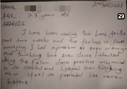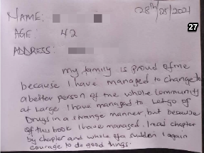 我的家人为我骄傲,因为我在大社区里变成了一个更好的人。这本书以一种不寻常的方式帮我成功地戒掉了毒瘾。我就一讲接一讲的读书,然后突然之间我重获得了做好事的勇气。