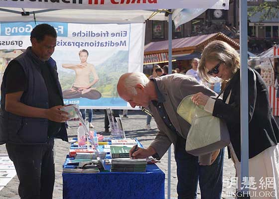 九月二十五日,德国弗兰肯地区部份法轮功学员在纽伦堡举办信息日,告诉人们法轮功的真相及反迫害征签活动。当得知真相后,过往的行人纷纷签名支持制止迫害。