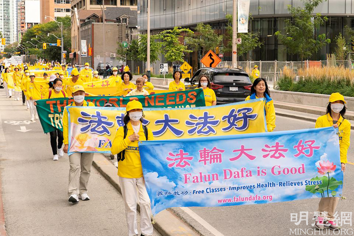 ![]() 图1~20:九月二十五日,多伦多法轮功学员在市中心举行一个月一次的主题为“弘扬法轮大法 抛弃中共保平安”的大游行。 |