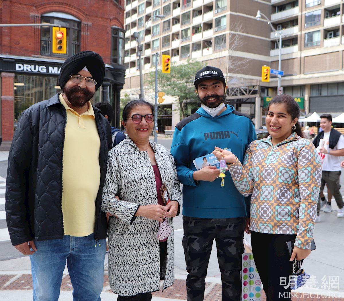 多伦多居民古尔戈特(Ggurgot)一家四口一直在观看游行并录像,他说:“这个游行太吸引人了,非常美好,让人很舒服。刚才还有一位女士给我们介绍了详细的情况,所以我们都非常感谢和非常高兴今天遇到这个游行,我觉得这个功法对人的身体和心理健康都是非常有好处的。这个游行真的起到了很好的宣传作用,非常感谢。”