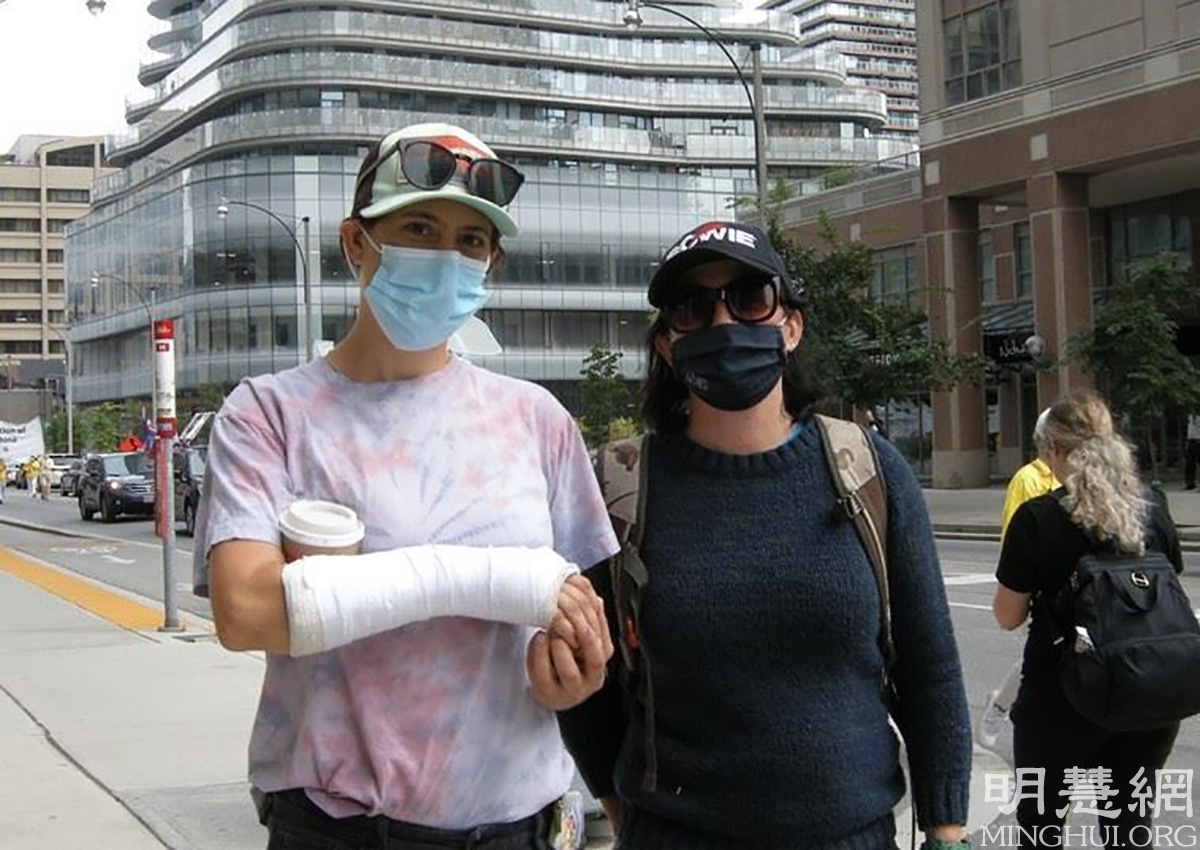 在多伦多儿童医院(Sick kids)的卫生部门工作的安娜(Anna),她是在美国完成研究生学位后来到加拿大工作的医务人员,在加拿大已生活了20年。当天她来到游行的集合点皇后公园(Queens Park),跟学员李女士说,她要用自己的行动来帮助法轮功。