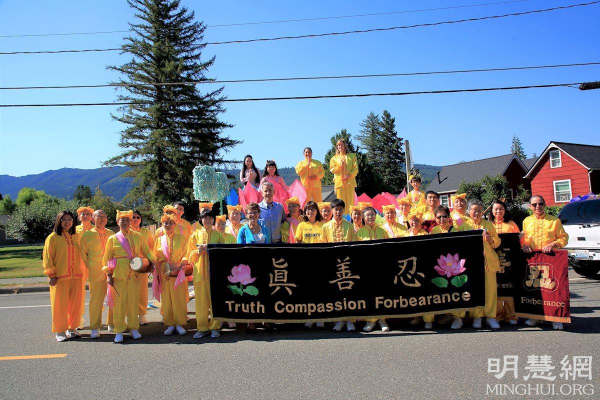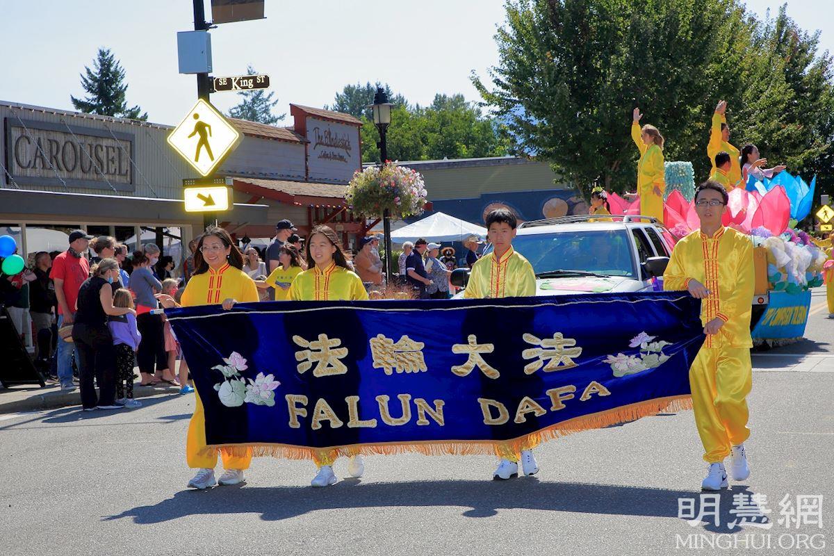 游行开始前,该市市长麦特·拉森市长,和华州国王县议员凯西·兰巴特女士来到了法轮功游行队伍前,与学员们合影留念。学员们向他们进一步讲述了法轮功真相。兰巴特女士曾经访问中国,在一次经历中她提醒陪从的中国人员要珍惜人的生命,她对学员讲述的中共对法轮功的迫害情况一点也不惊异,她表示自己知道中共的行径。