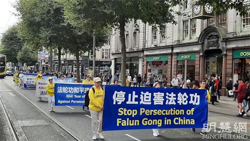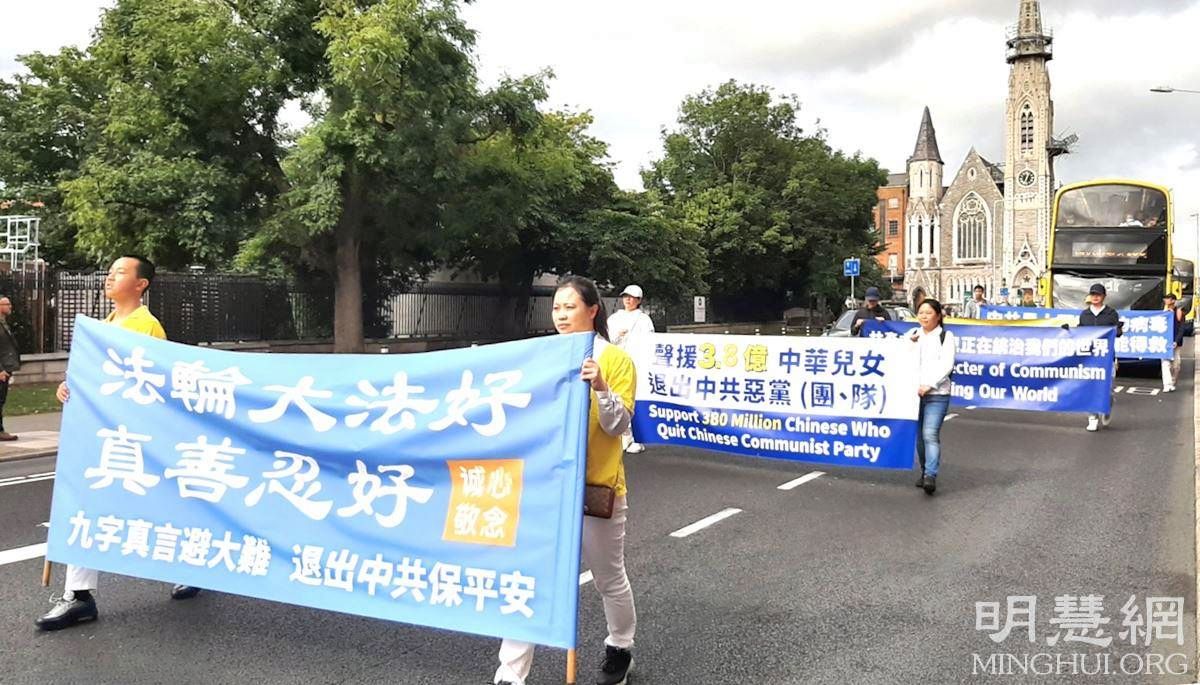 ![]() 图1~4:二零二一年九月二十五日,爱尔兰法轮功学员在首都都柏林市中心举行了游行和集会,声援3.84亿中国民众三退。图为游行队伍。 |