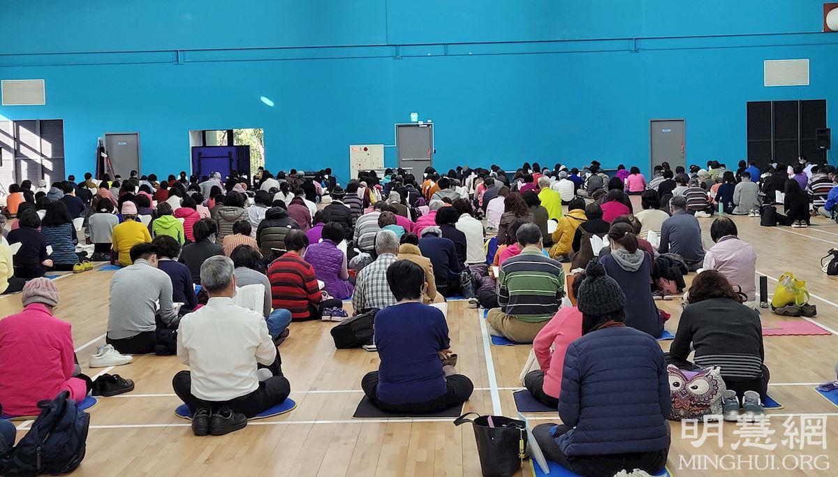 '图1:来自台湾中部五县市的部份法轮功学员,在彰南国民活动中心参加一日学法并交流、聆听学员的修炼心得。'