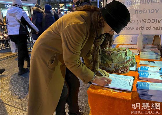 2021年岁尾之际,挪威法轮功学员在坐落在首都奥斯陆市中心的游行街,卡尔·约翰大街 上的国会前设真相点,呼吁结束中共的暴行。