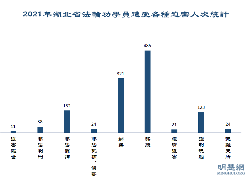 图1:2021年湖北省法轮功学员遭受各种迫害人次统计