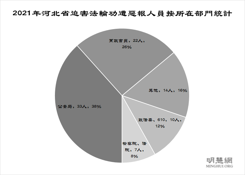 ![]() 图2:2021年河北省迫害法轮功遭恶报人员按所在部门统计 |