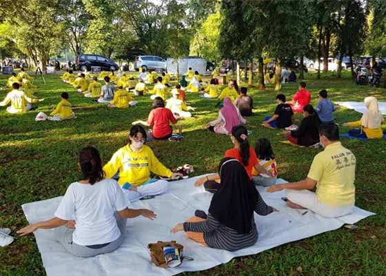 一月二十三日星期日上午,印尼部份法轮功学员在雅加达基布布尔(Cibubur)露营区举行了真相日活动。