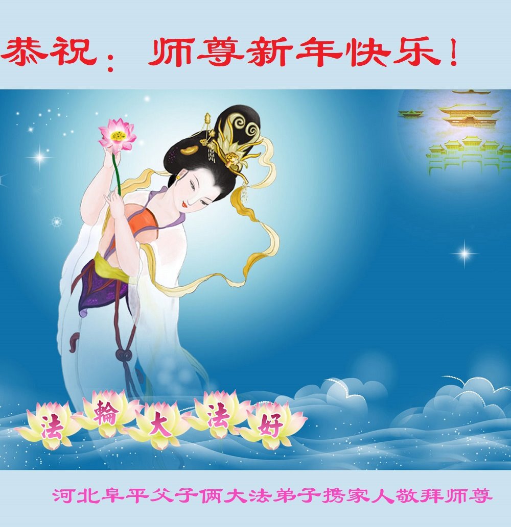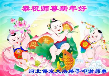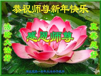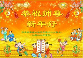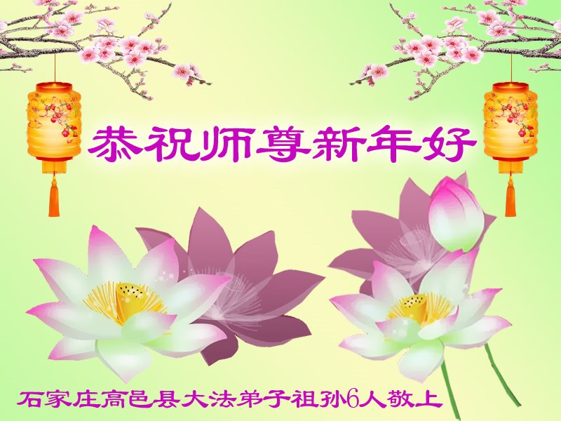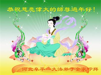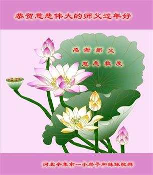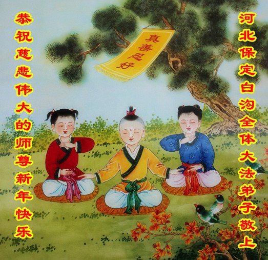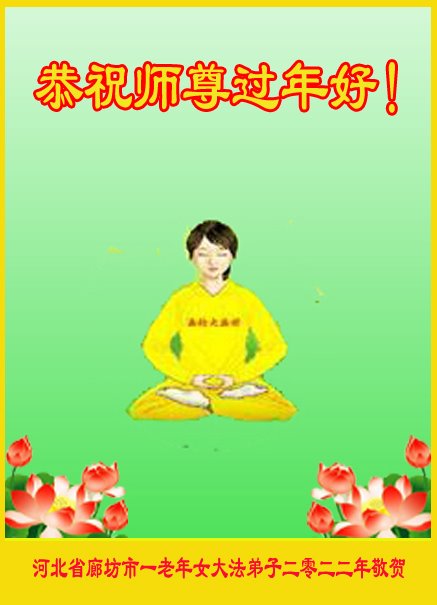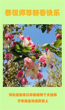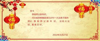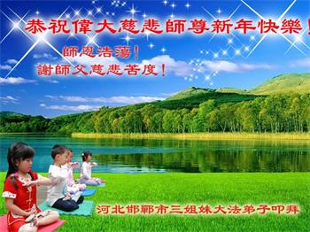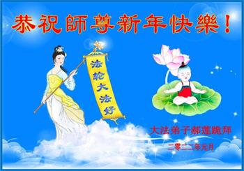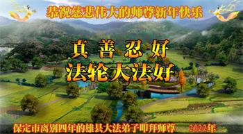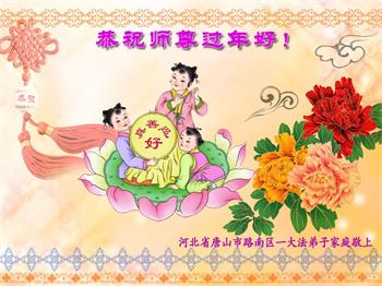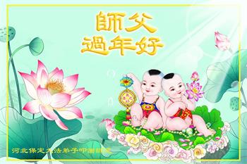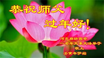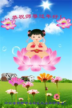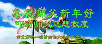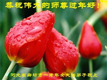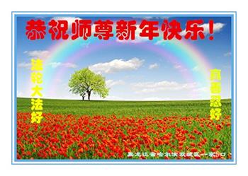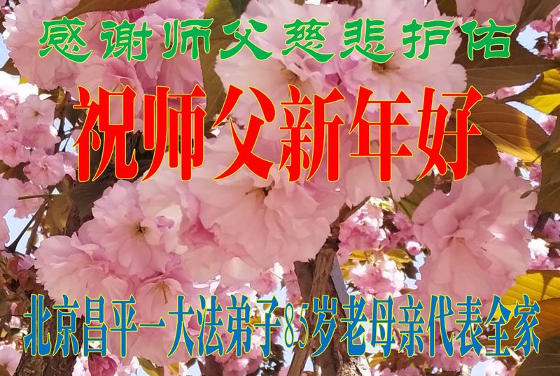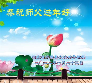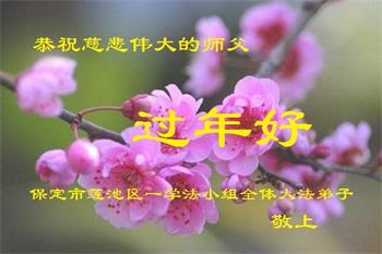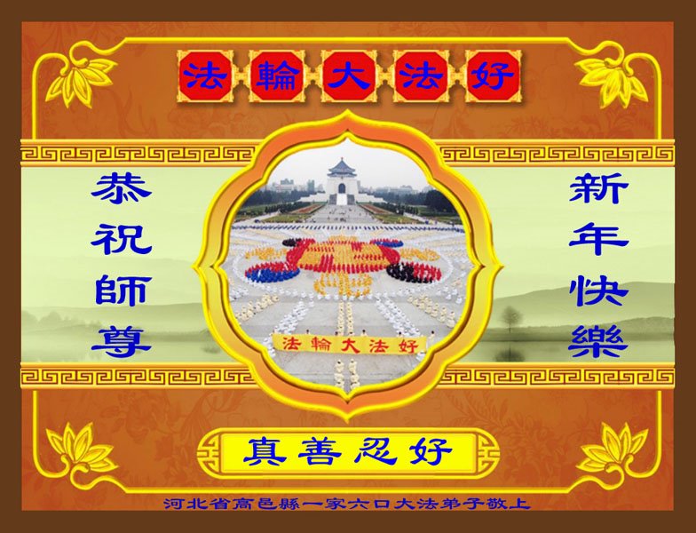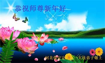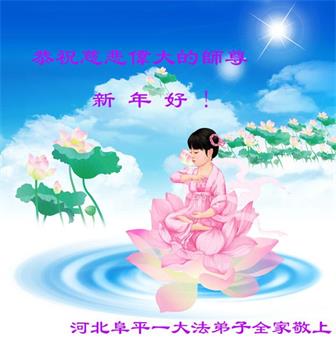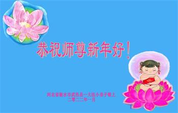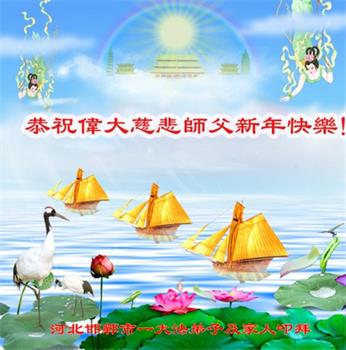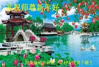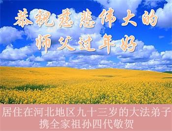 河北省保定市一个不修炼的常人祝李大师新年快乐!我已经八十多岁了,在这么多年里我看到了我修炼的儿媳的变化,知道法轮大法是好的,我每天都在念“法轮大法好”,再一次祝李大师新年快乐!