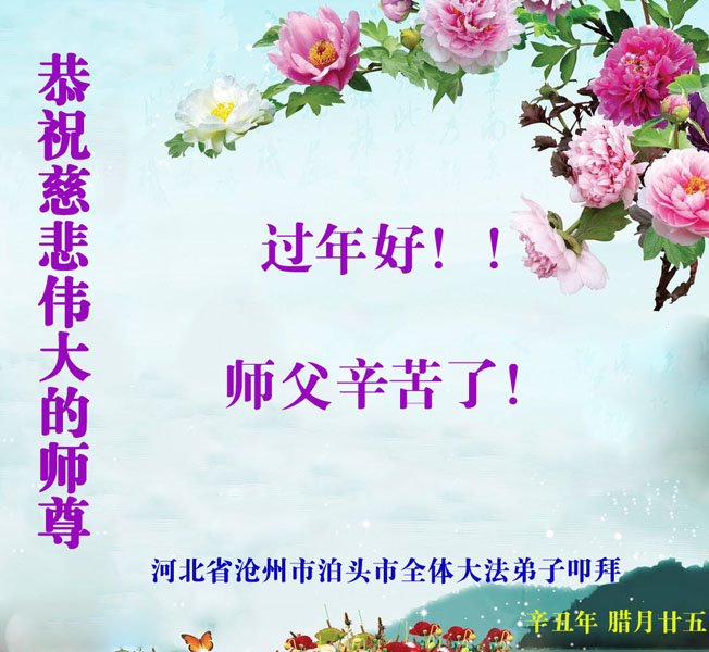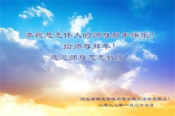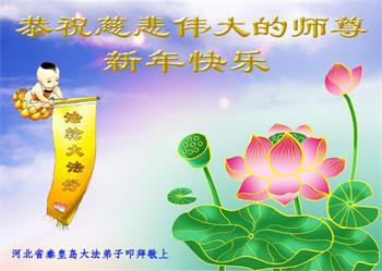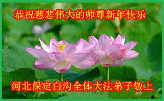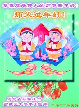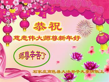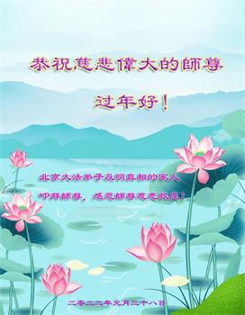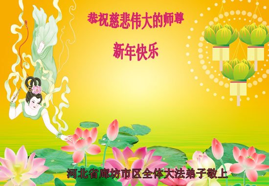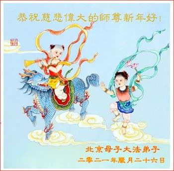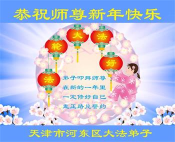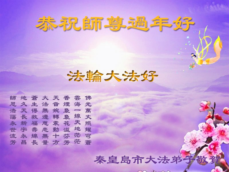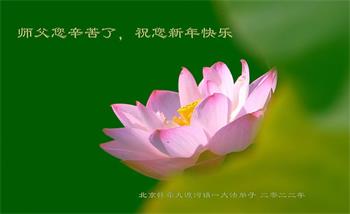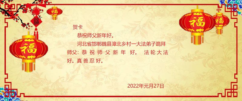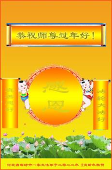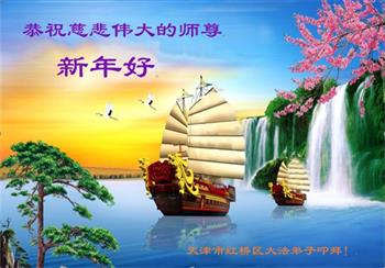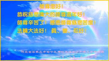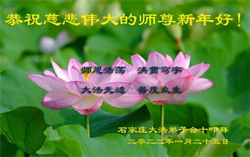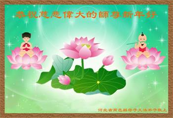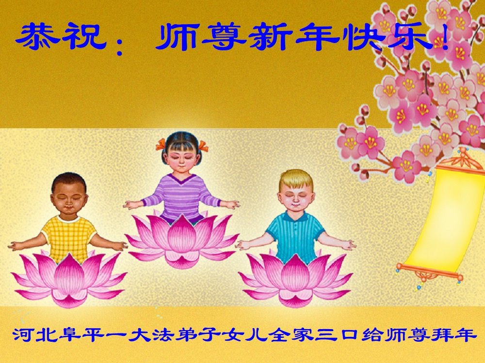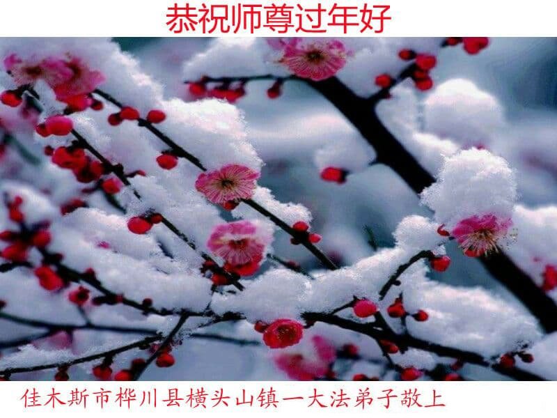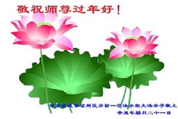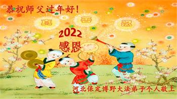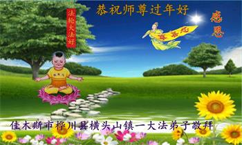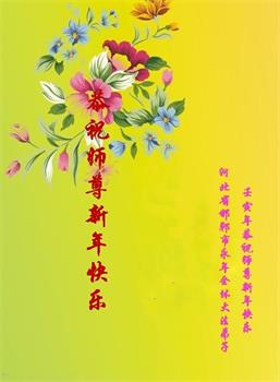 河北省保定市一个不修炼的常人祝李大师新年快乐!我已经八十多岁了,在这么多年里我看到了我修炼的儿媳的变化,知道法轮大法是好的,我每天都在念“法轮大法好”,再一次祝李大师新年快乐!