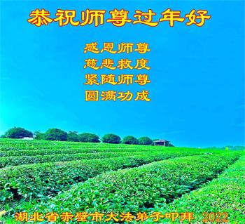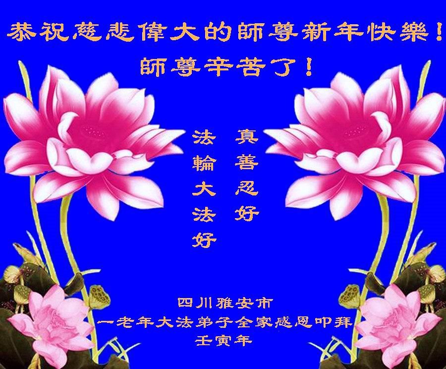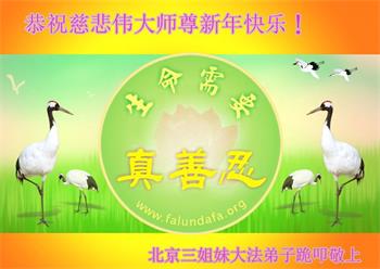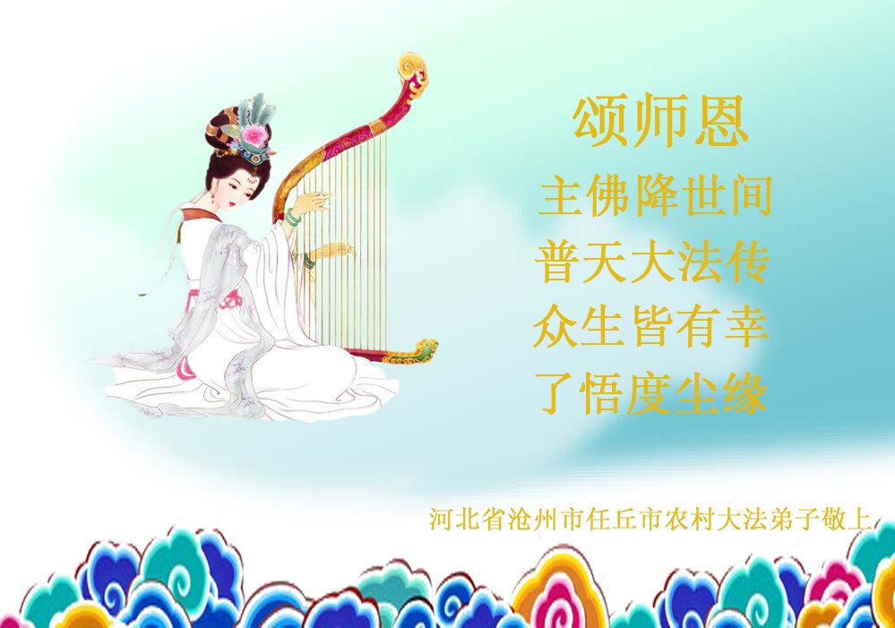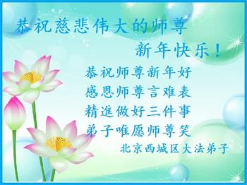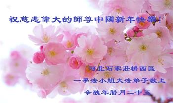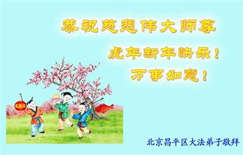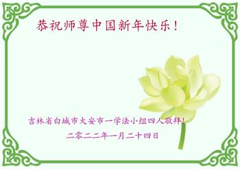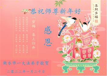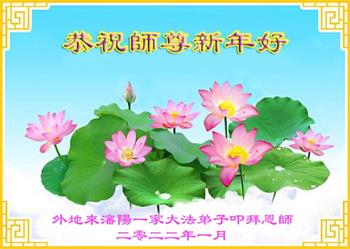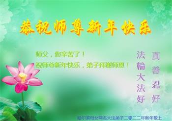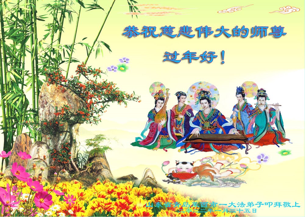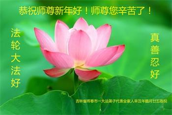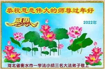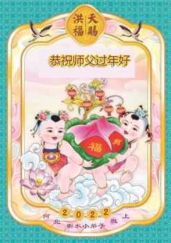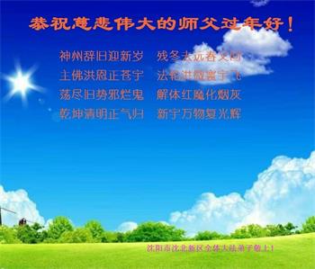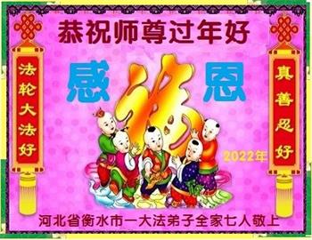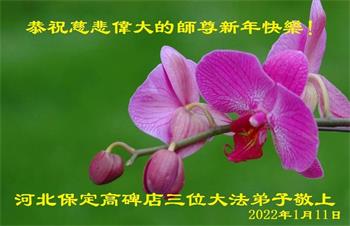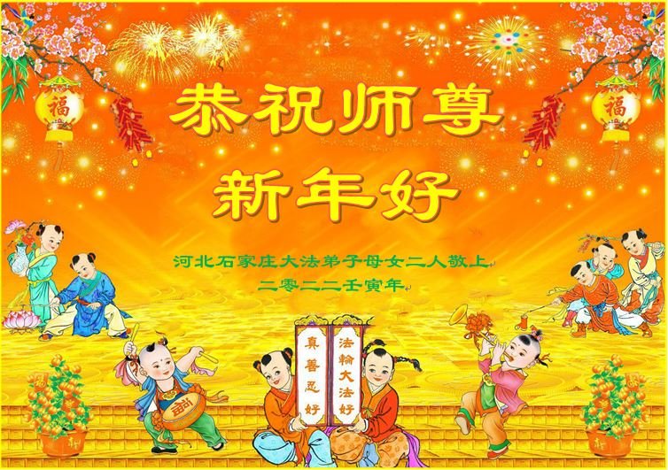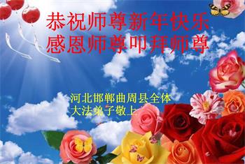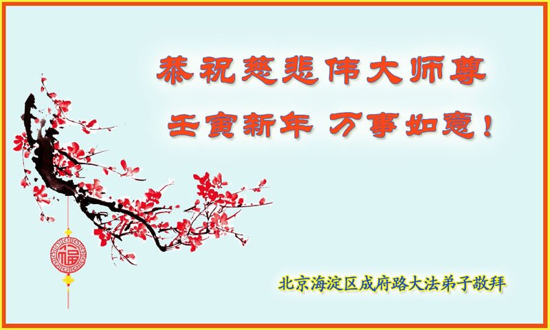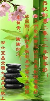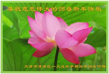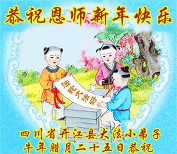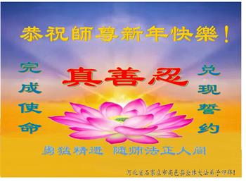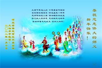 河北省保定市一个不修炼的常人祝李大师新年快乐!我已经八十多岁了,在这么多年里我看到了我修炼的儿媳的变化,知道法轮大法是好的,我每天都在念“法轮大法好”,再一次祝李大师新年快乐!