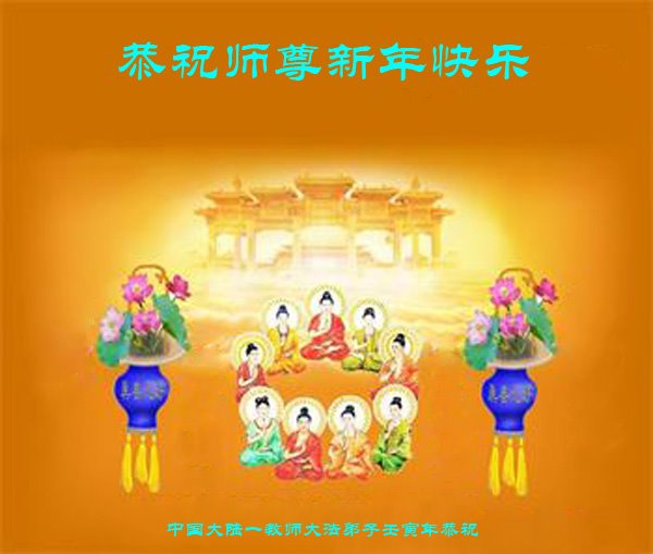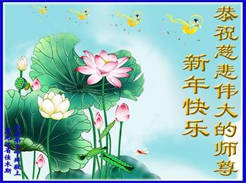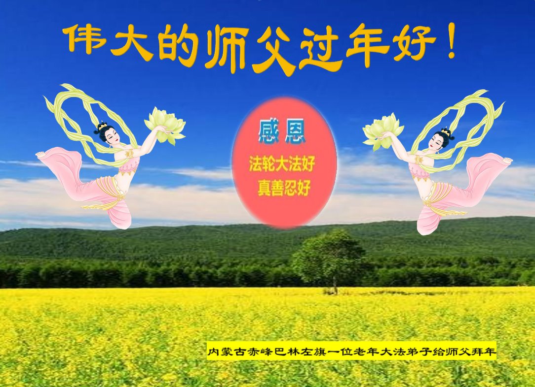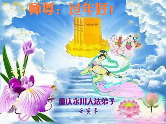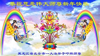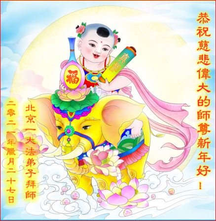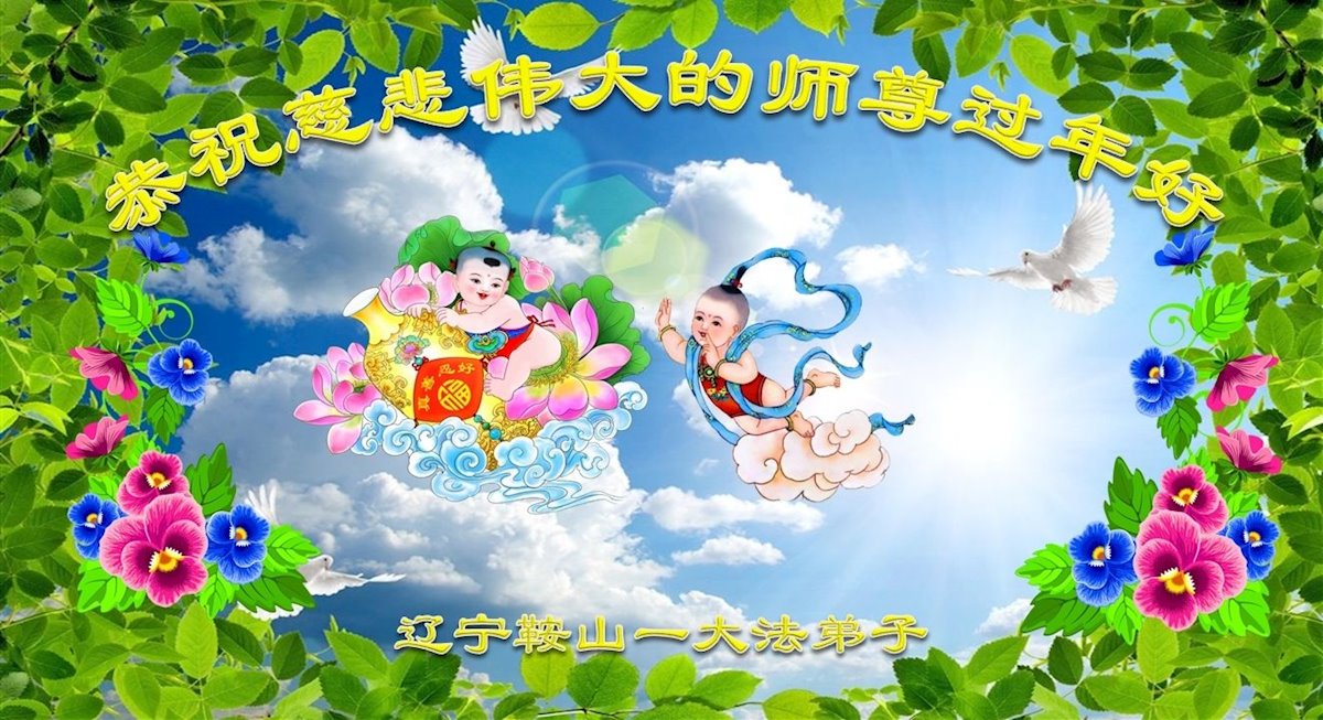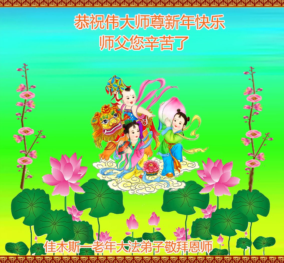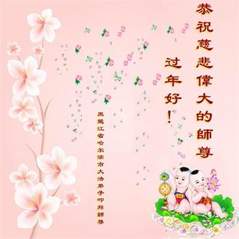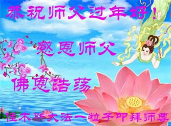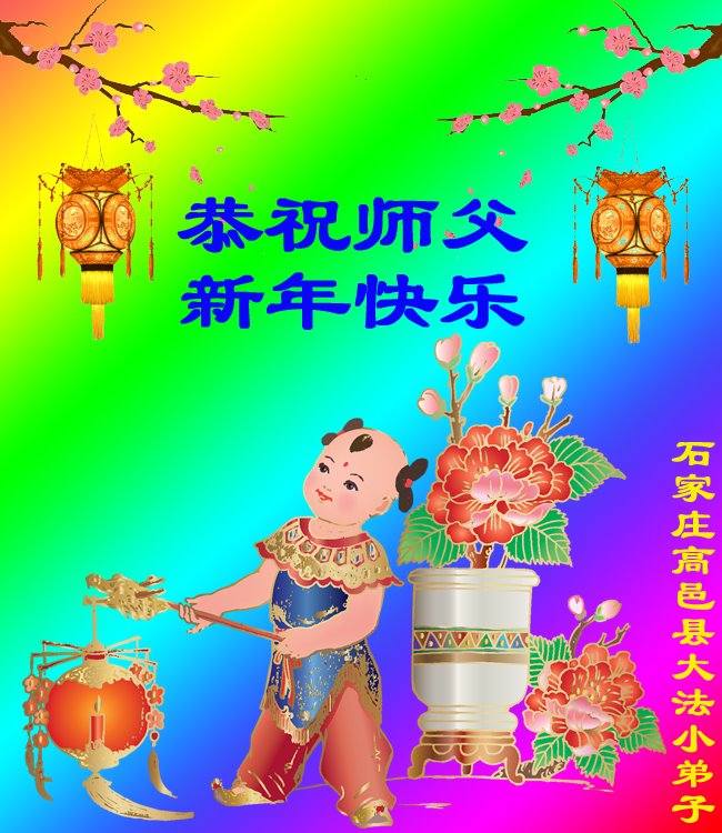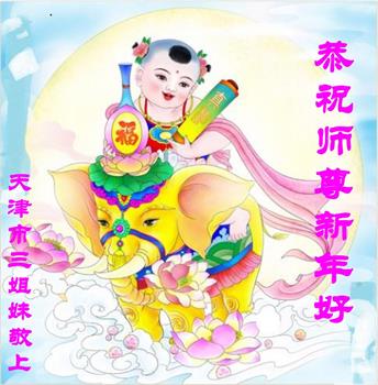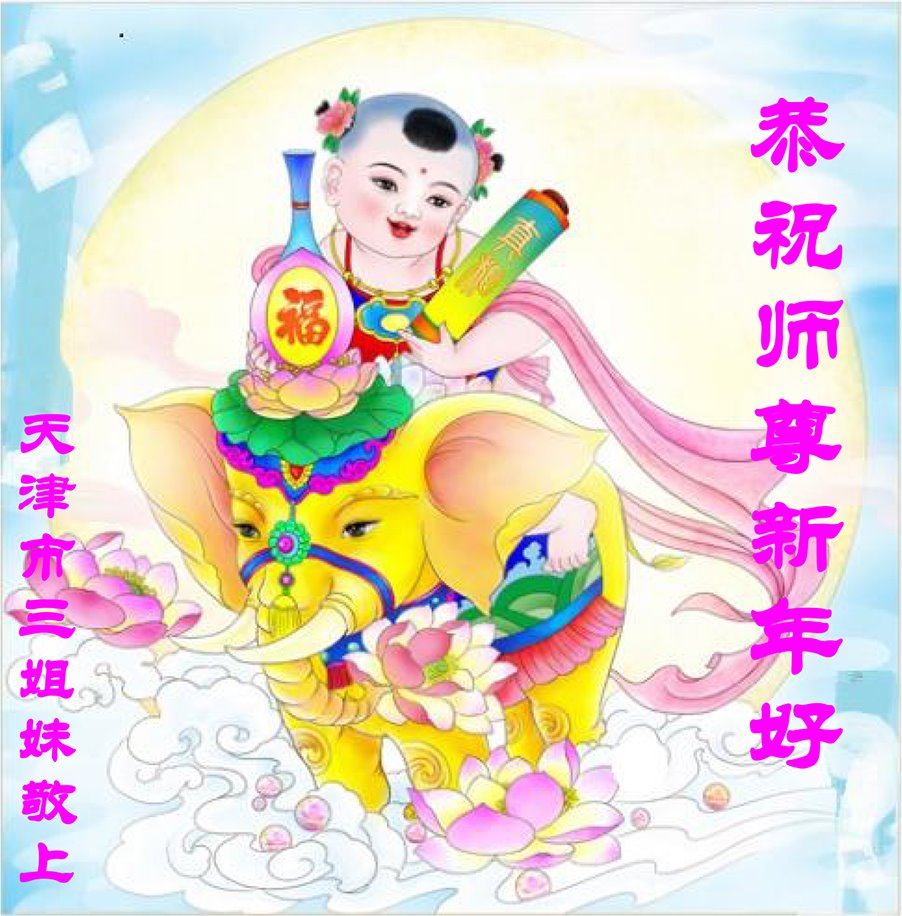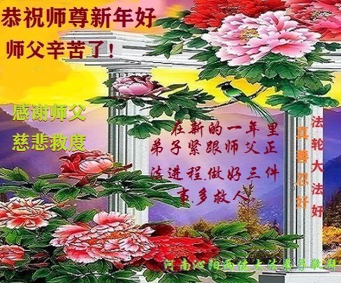 给大法师父拜年啦!感恩大法师父这些年对我的保护,使我身体健康,事事顺利、幸福满满。在这新年来临之际,恭祝大法师父新年快乐!