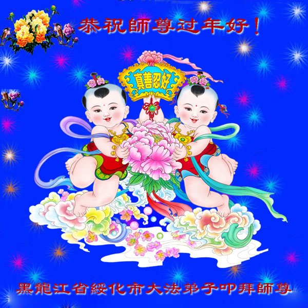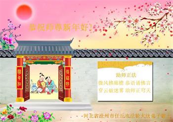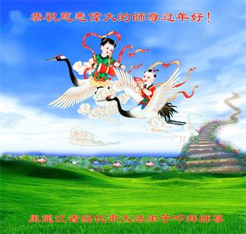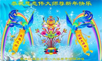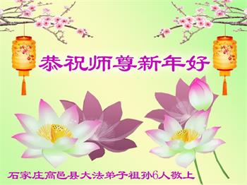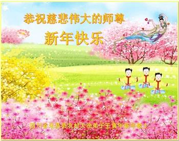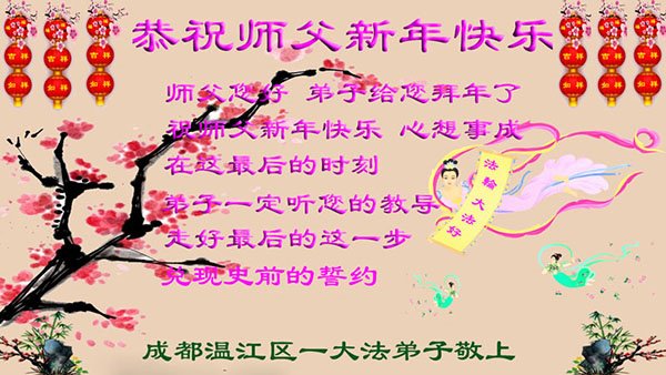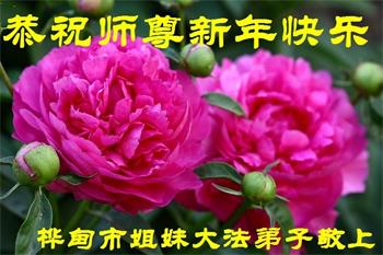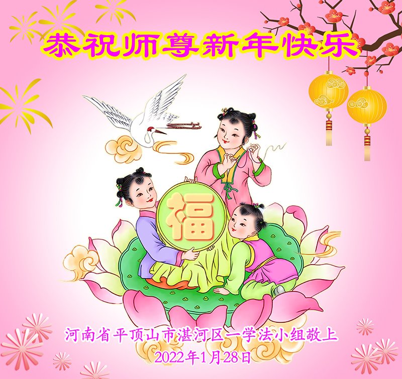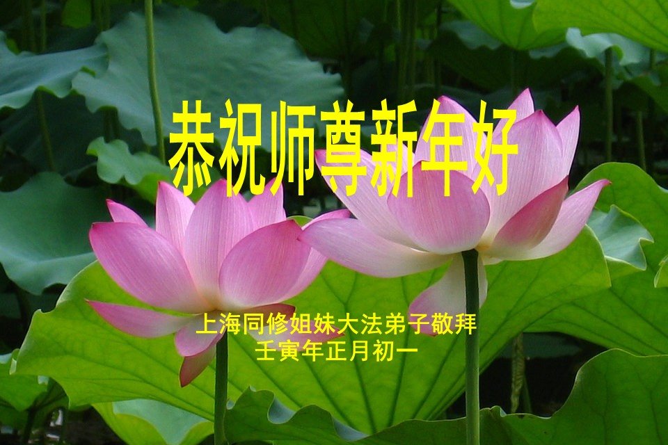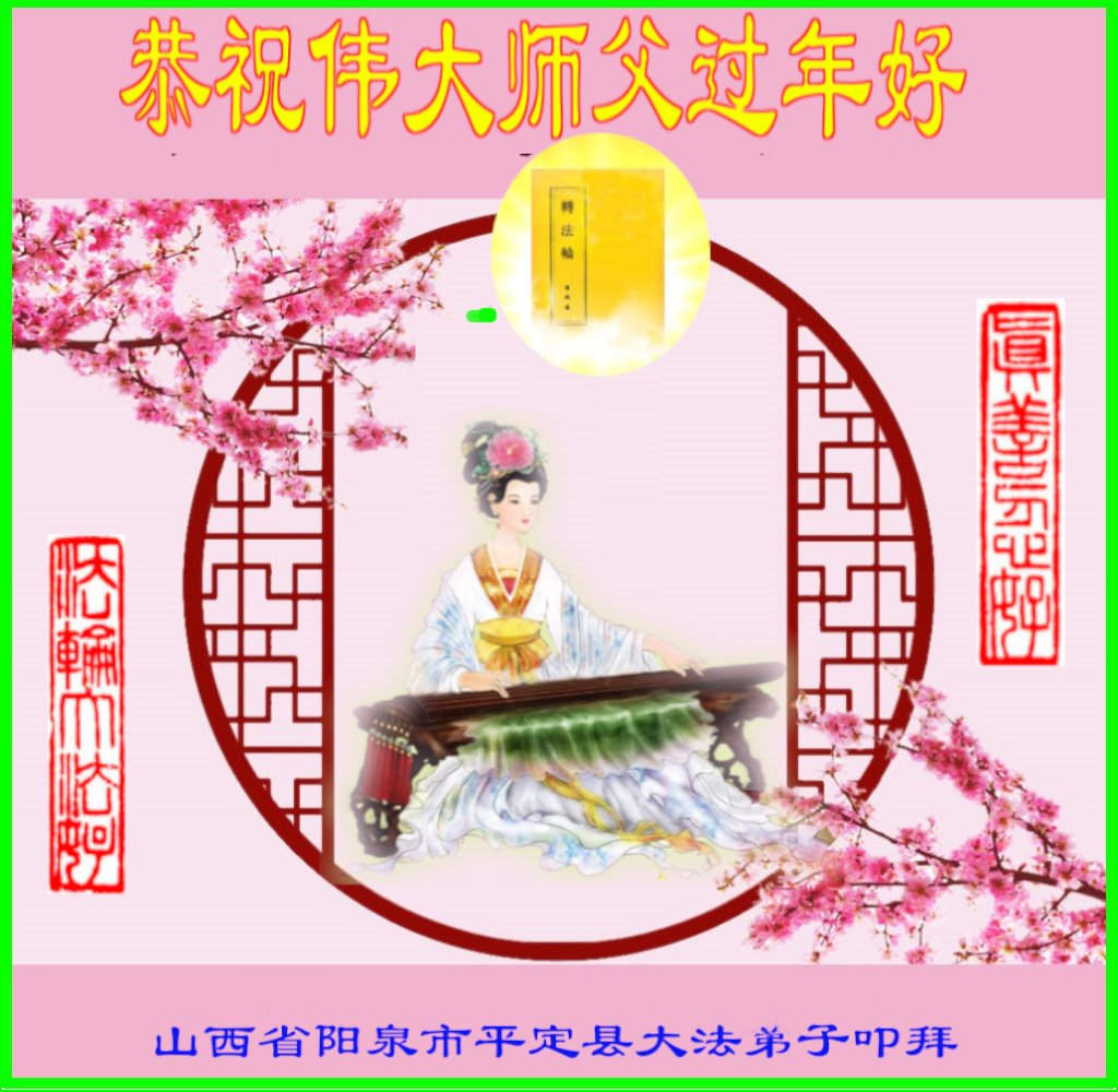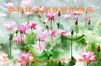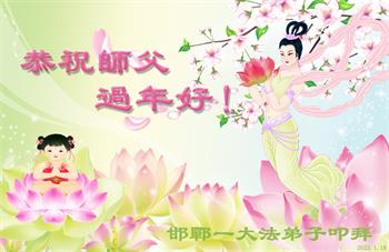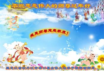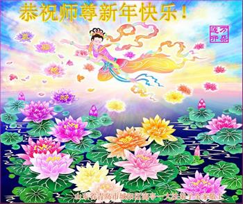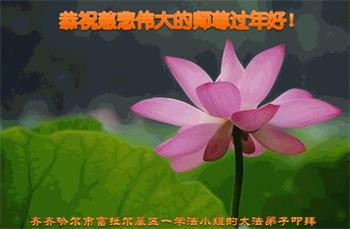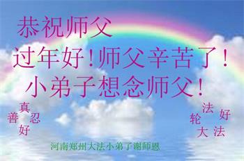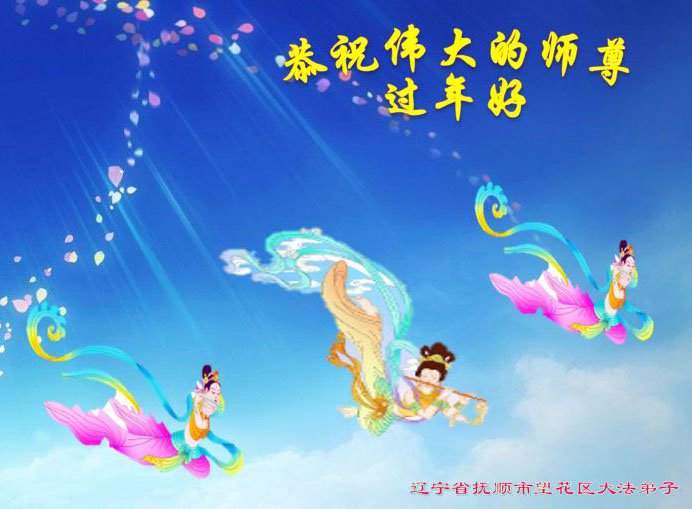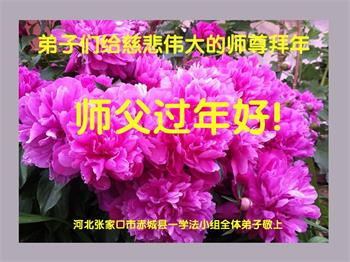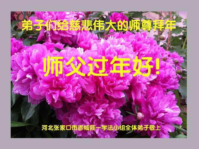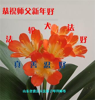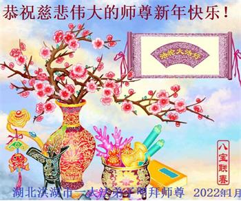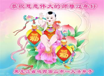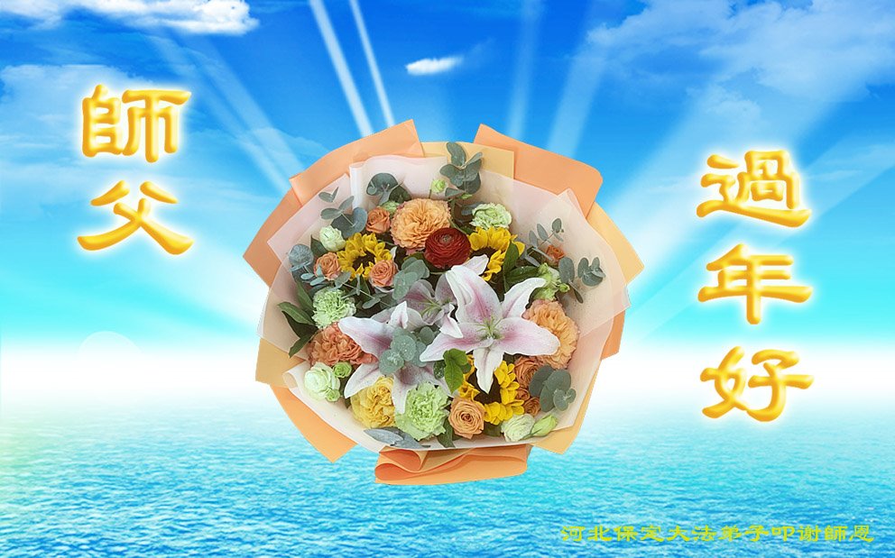 给大法师父拜年啦!感恩大法师父这些年对我的保护,使我身体健康,事事顺利、幸福满满。在这新年来临之际,恭祝大法师父新年快乐!