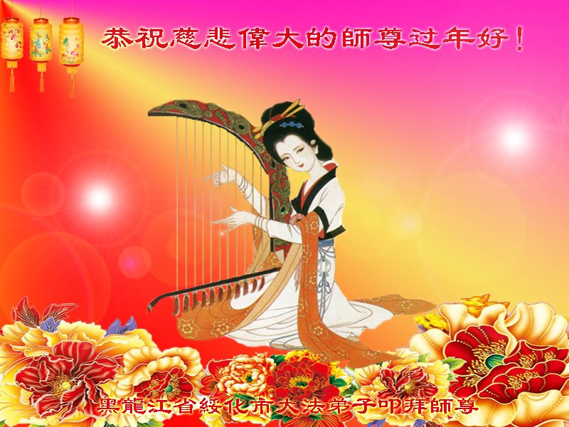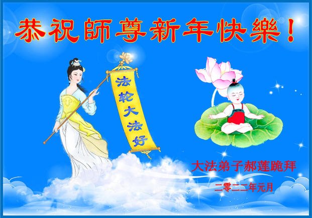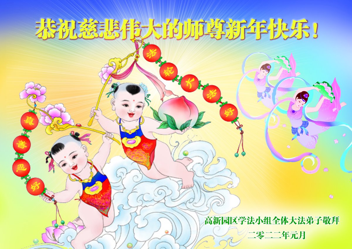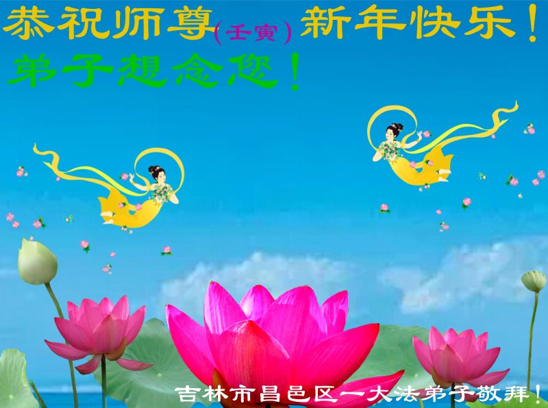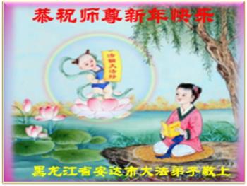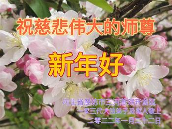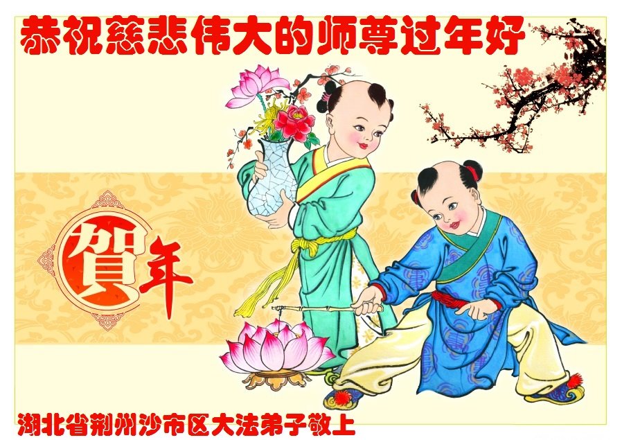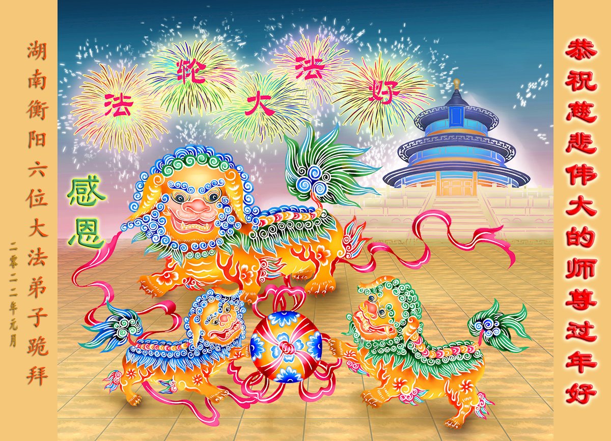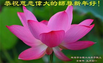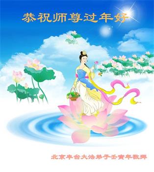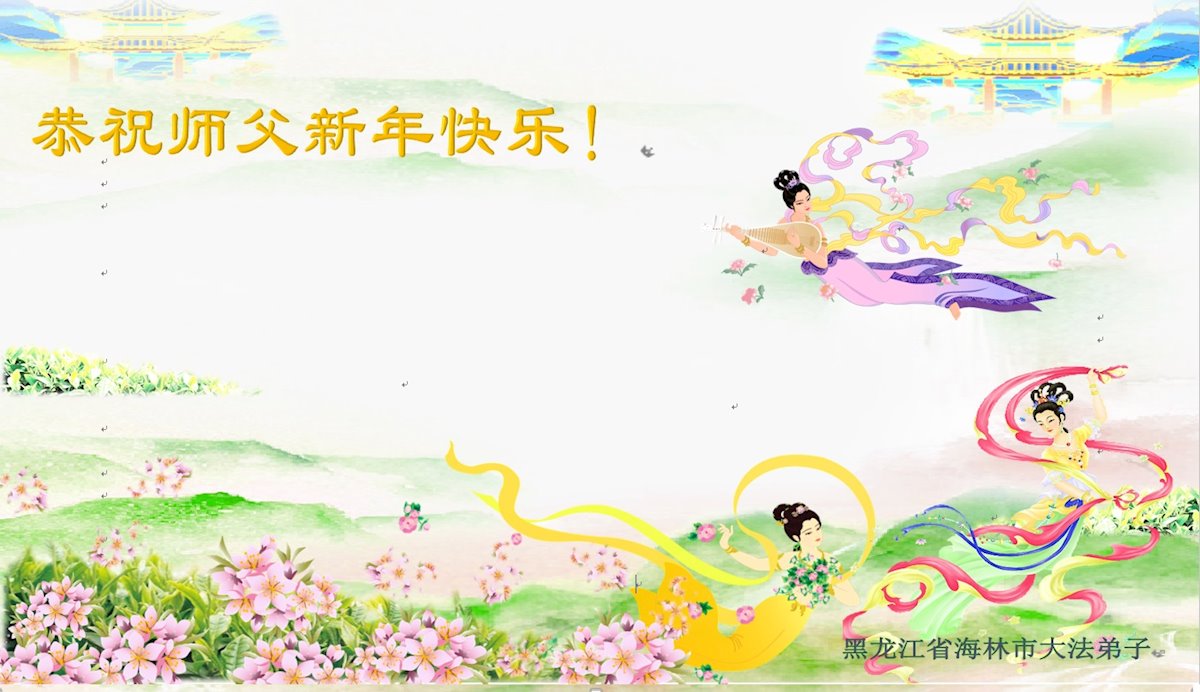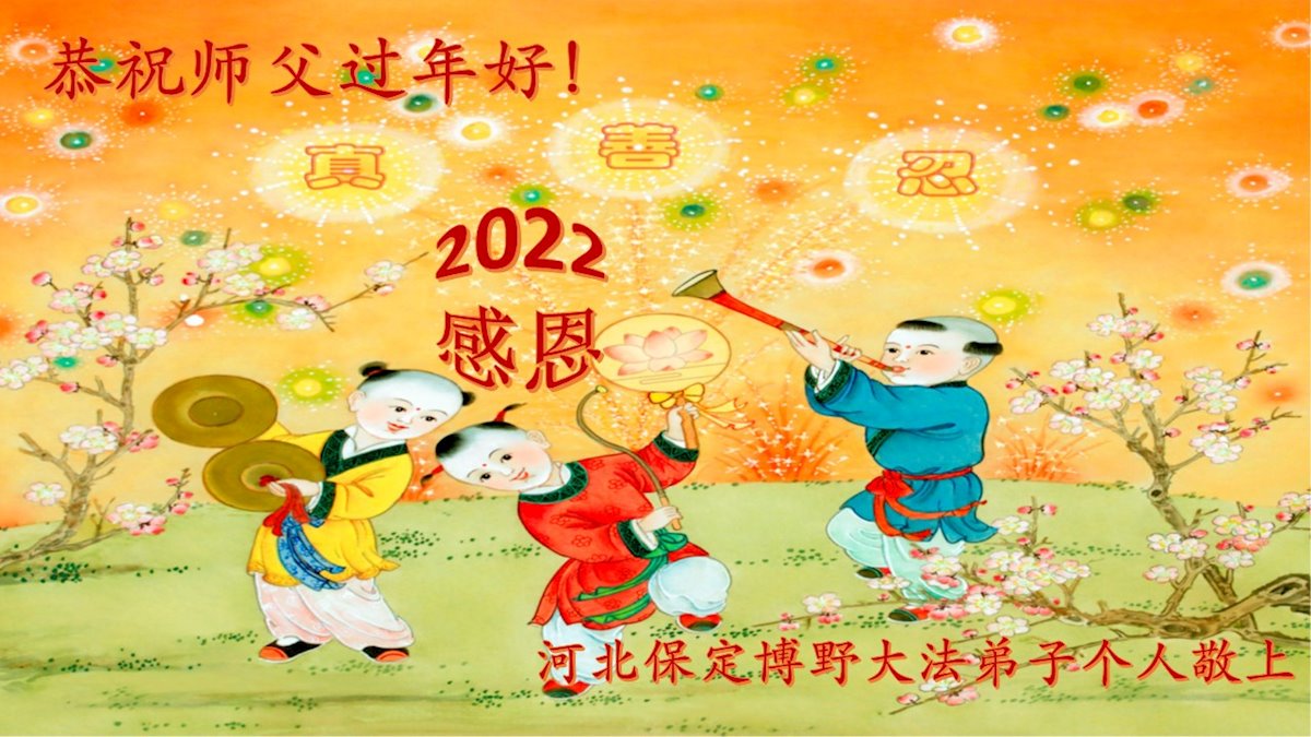 给大法师父拜年啦!感恩大法师父这些年对我的保护,使我身体健康,事事顺利、幸福满满。在这新年来临之际,恭祝大法师父新年快乐!