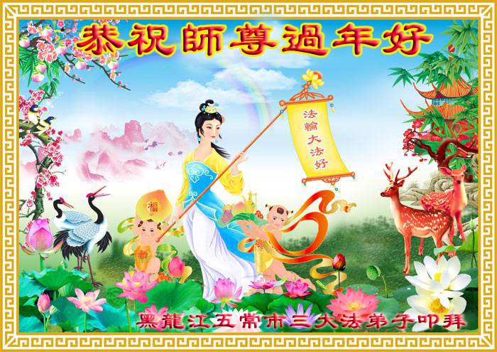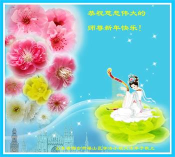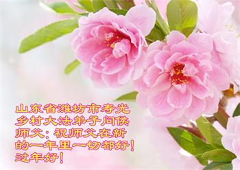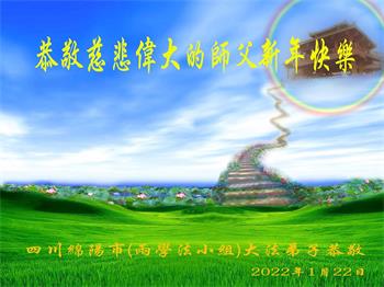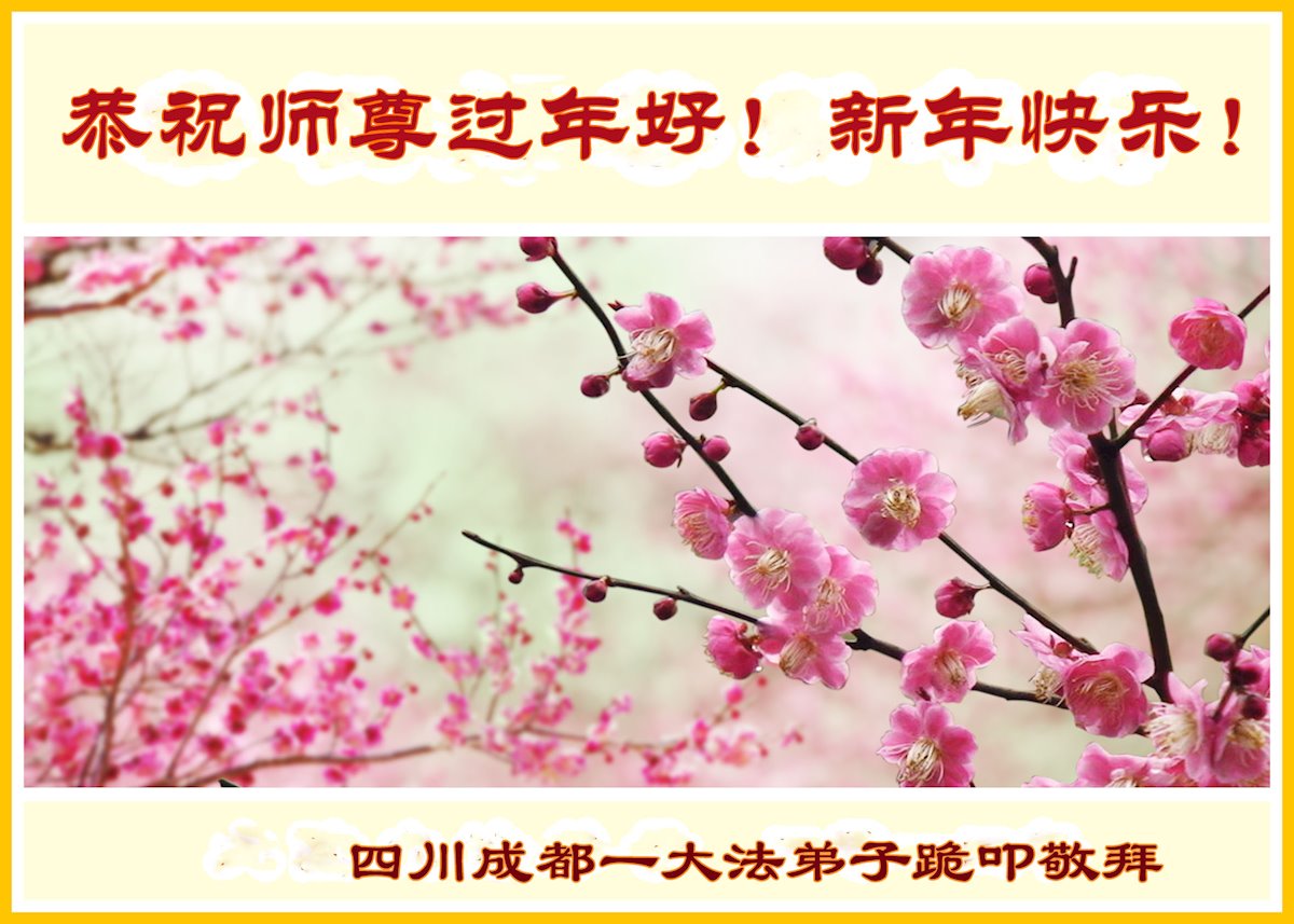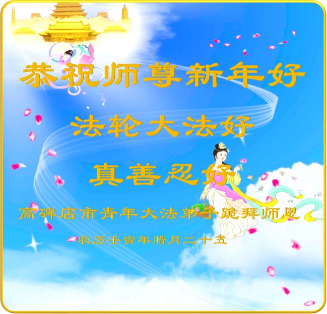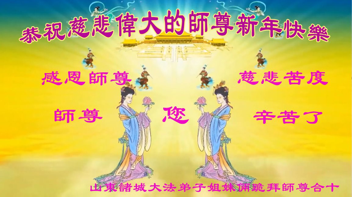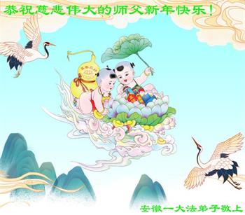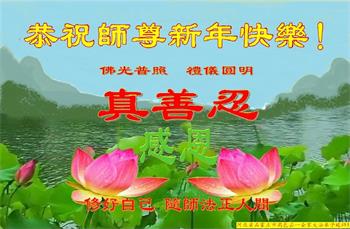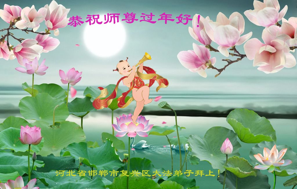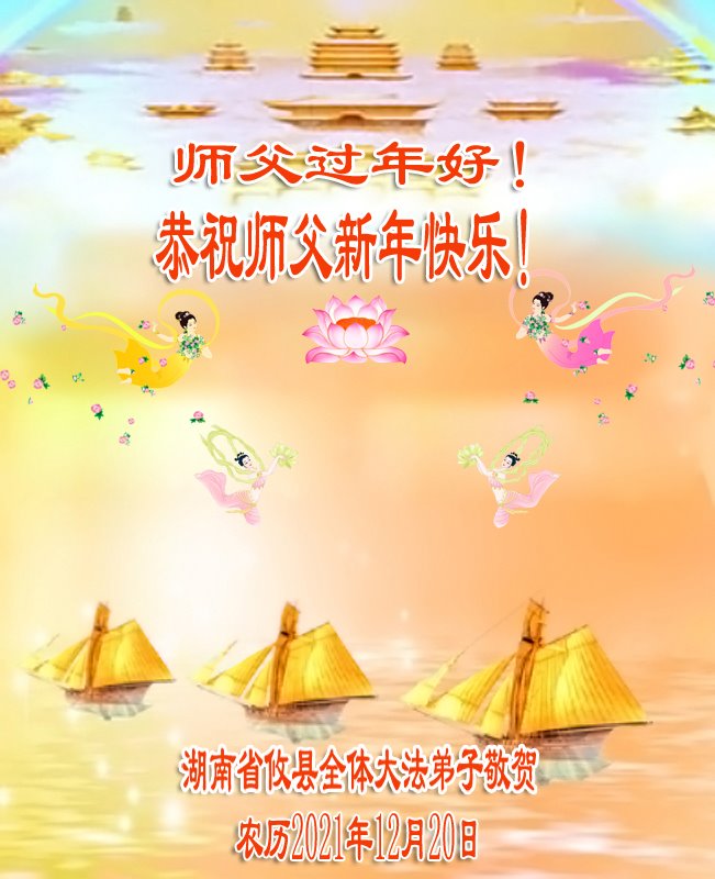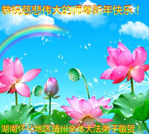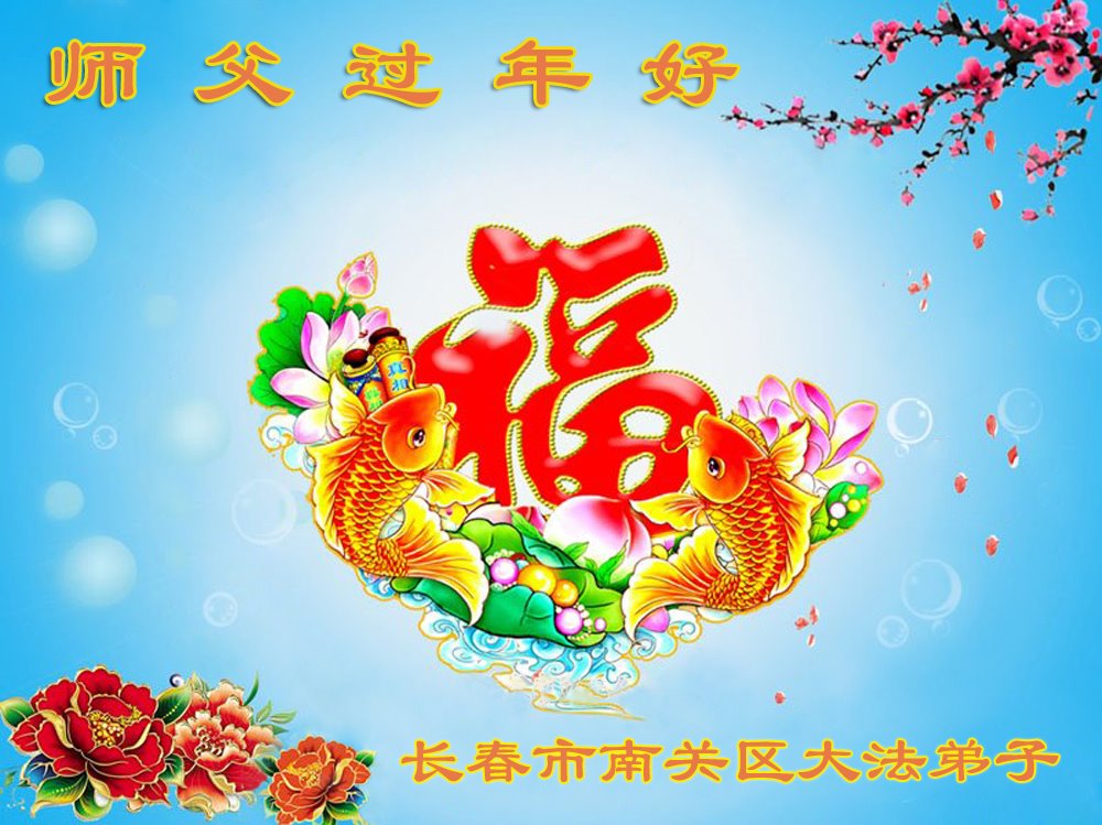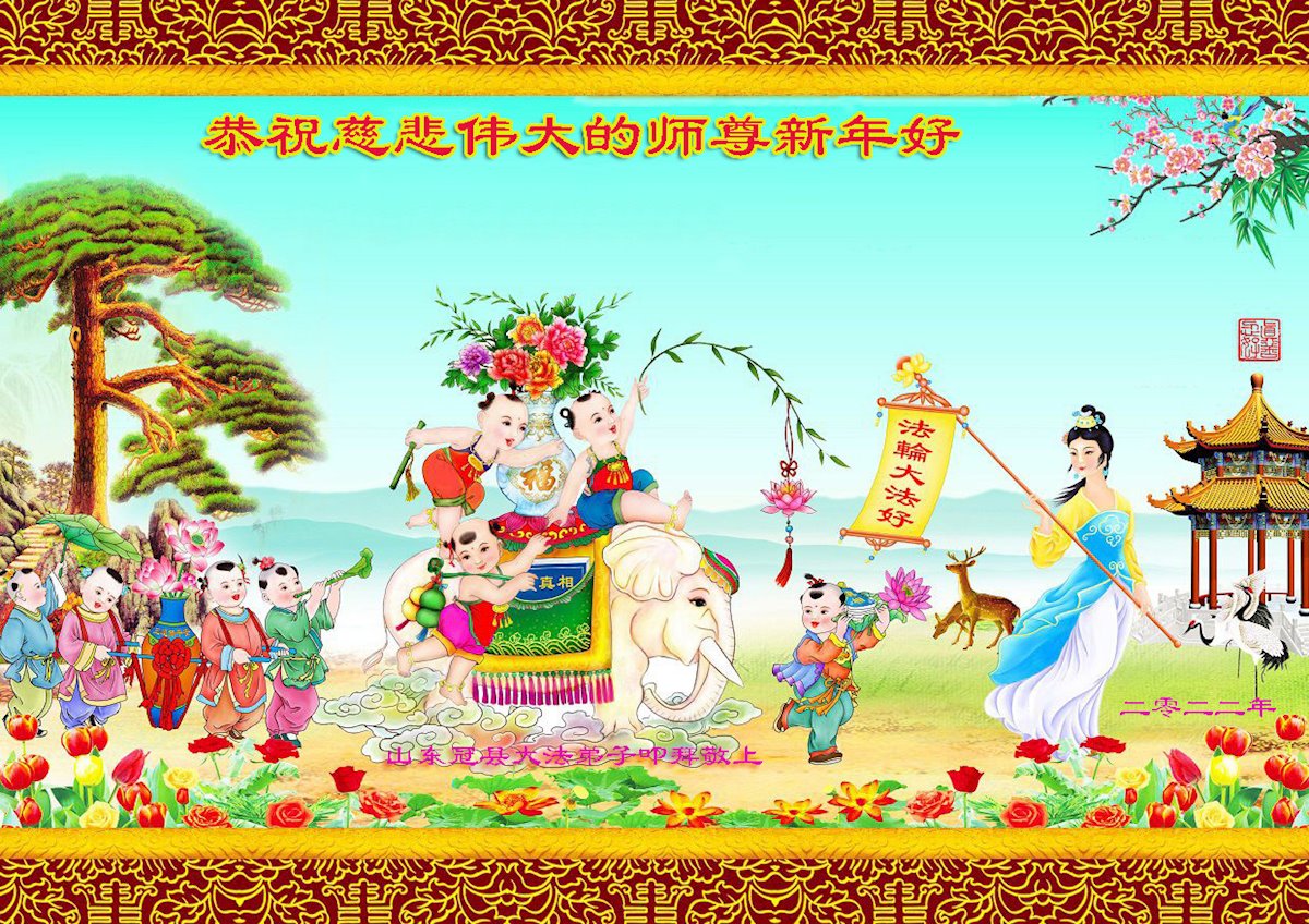 给大法师父拜年啦!感恩大法师父这些年对我的保护,使我身体健康,事事顺利、幸福满满。在这新年来临之际,恭祝大法师父新年快乐!