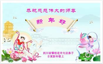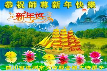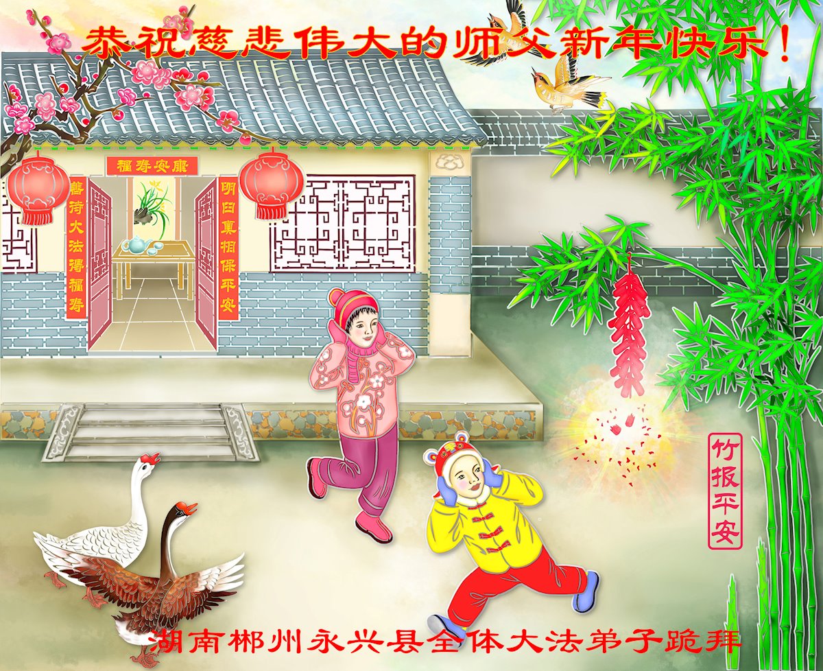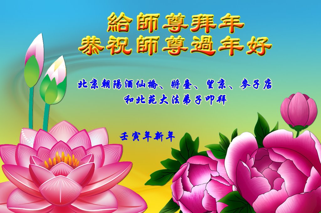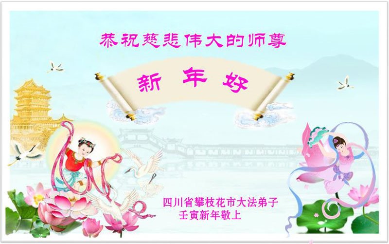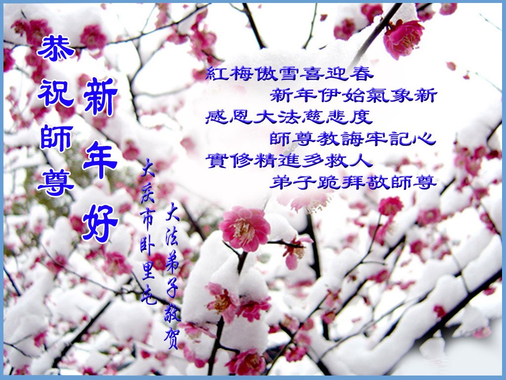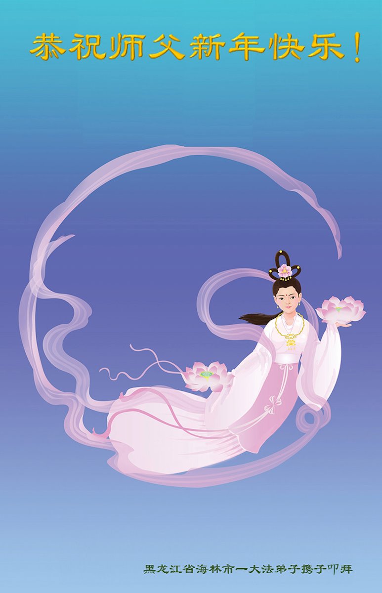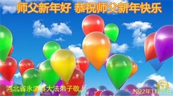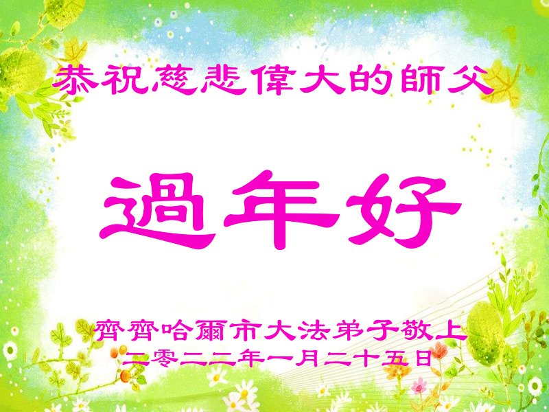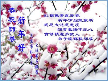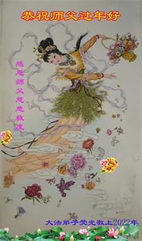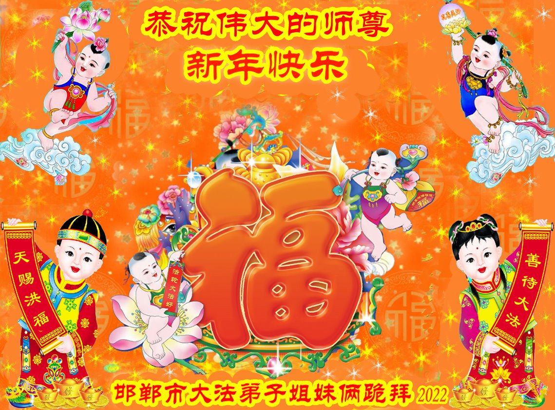 给大法师父拜年啦!感恩大法师父这些年对我的保护,使我身体健康,事事顺利、幸福满满。在这新年来临之际,恭祝大法师父新年快乐!