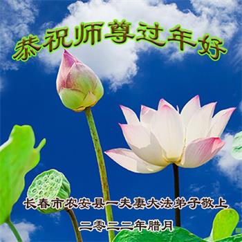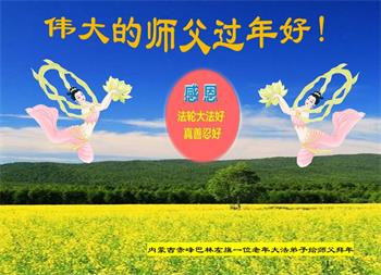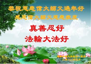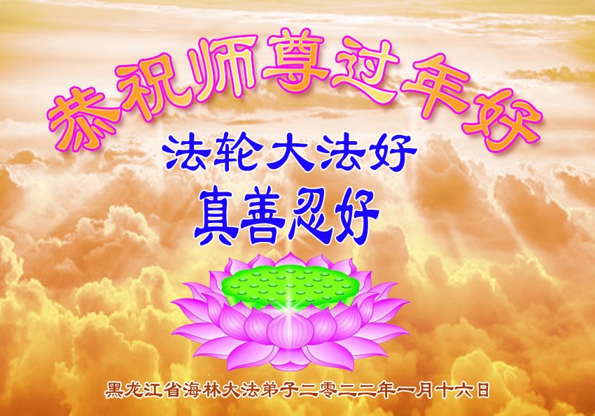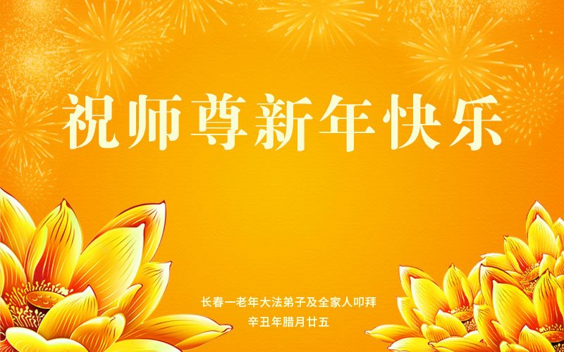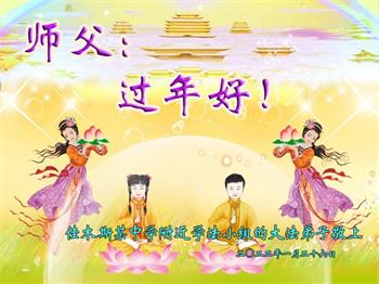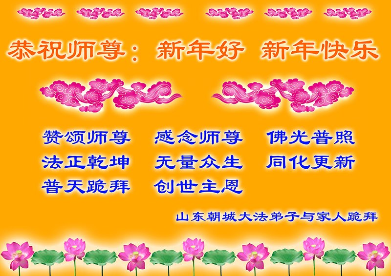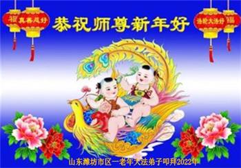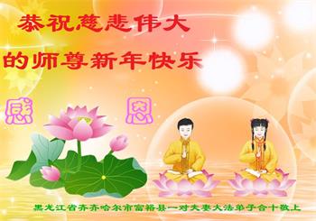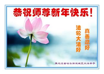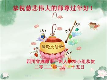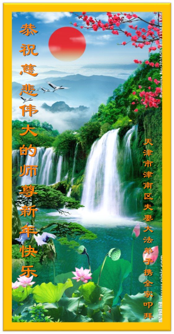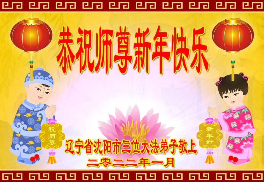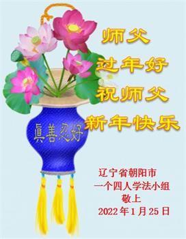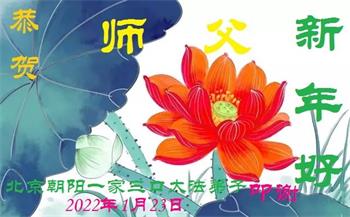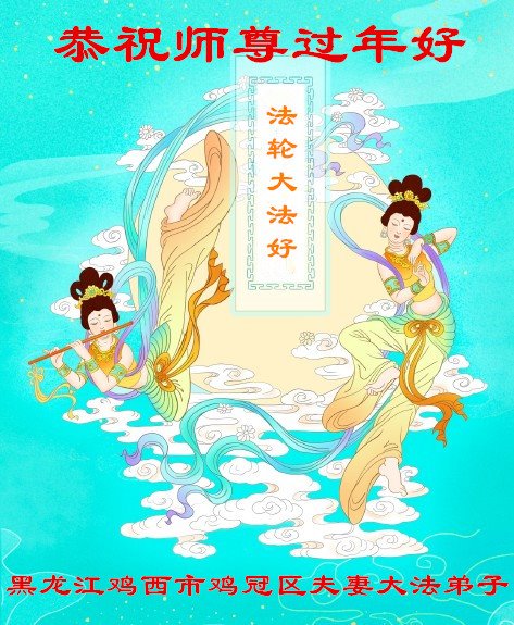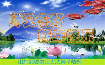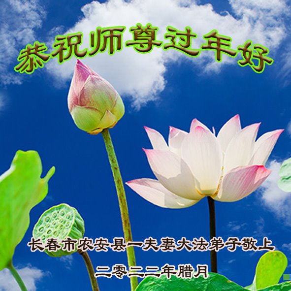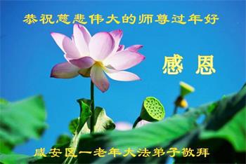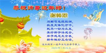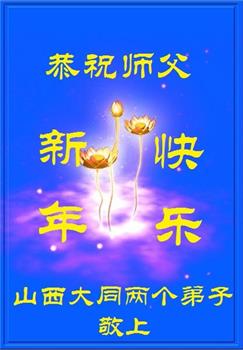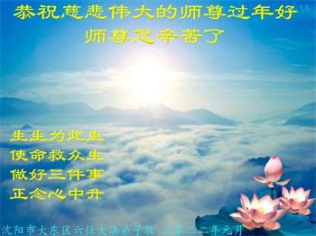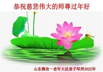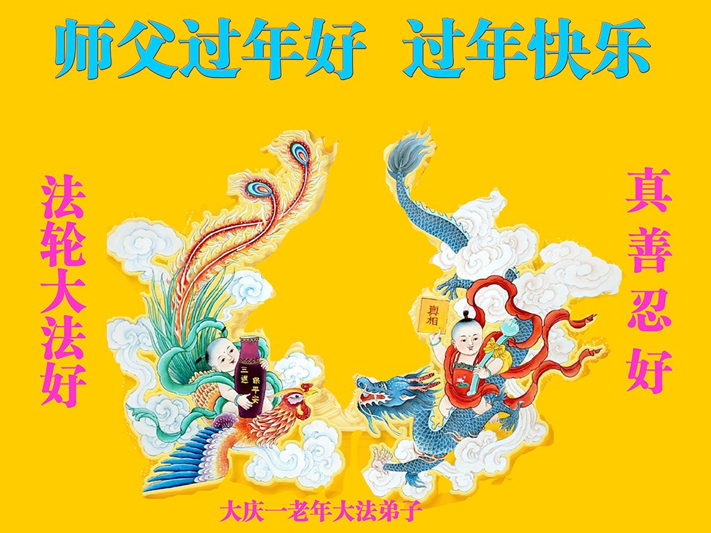 师父好!我们老俩口都是九十多岁的人了,通过看法轮大法资料,我们明白法轮功受的冤屈,也知道了大法的美好。平日里我们诚心诵念“法轮大法好,真善忍好”,我们亲身感受到了,体验到了,大法师父的佑护。我们衷心感谢师父,感谢大法,新年来了,我们衷心恭祝师父节日快乐!