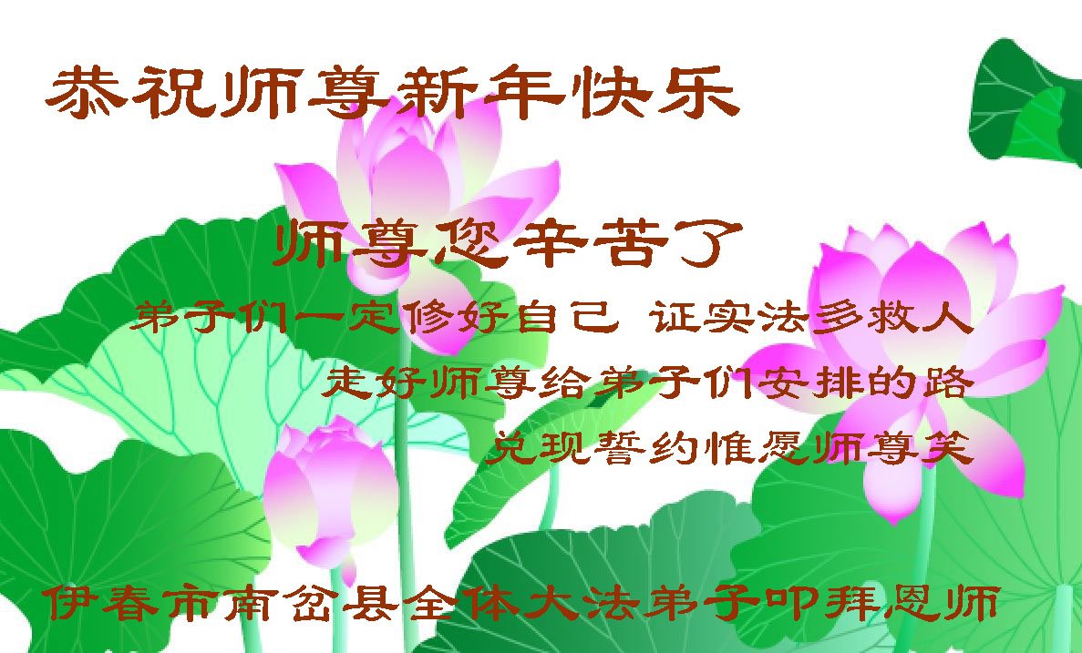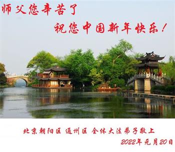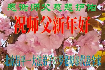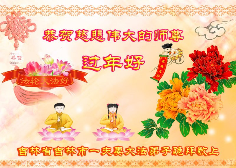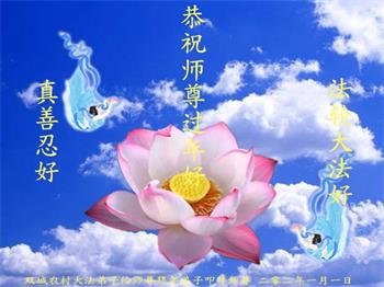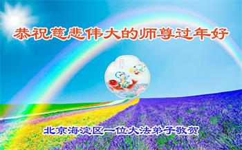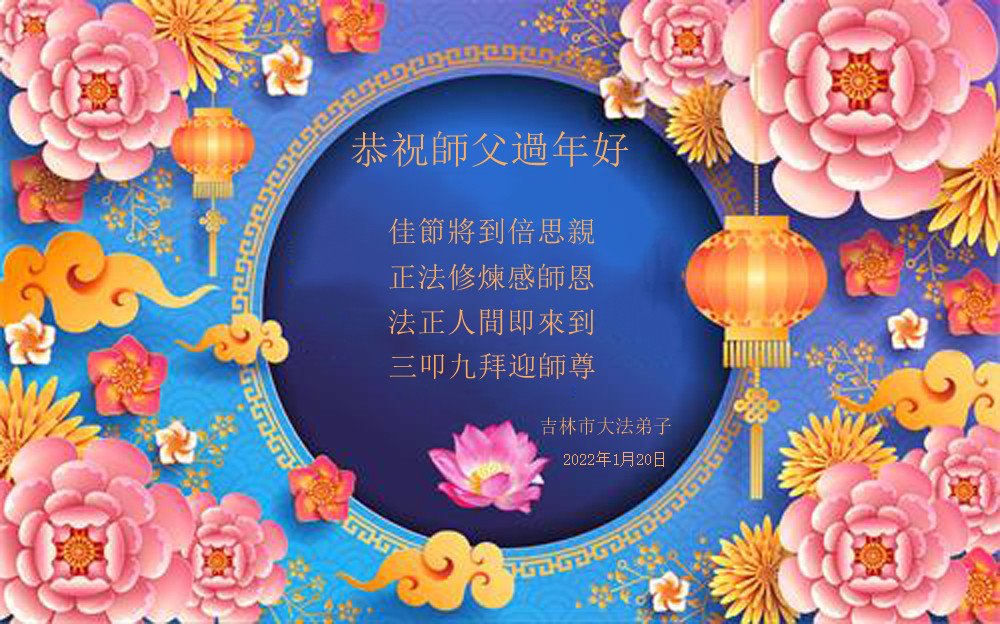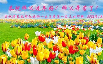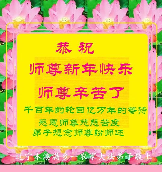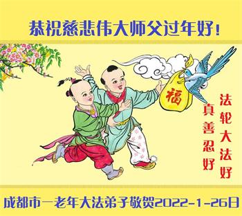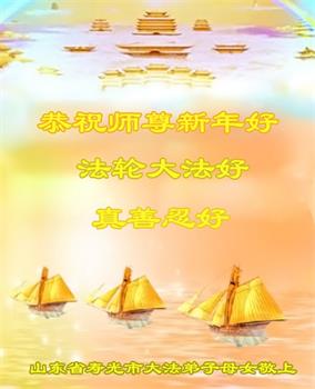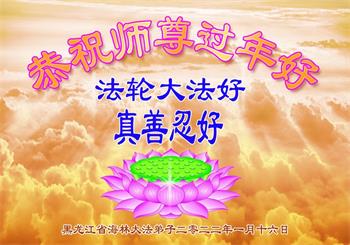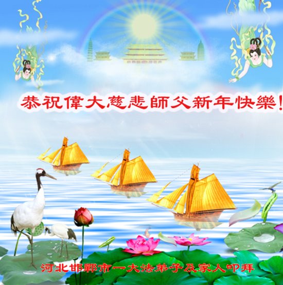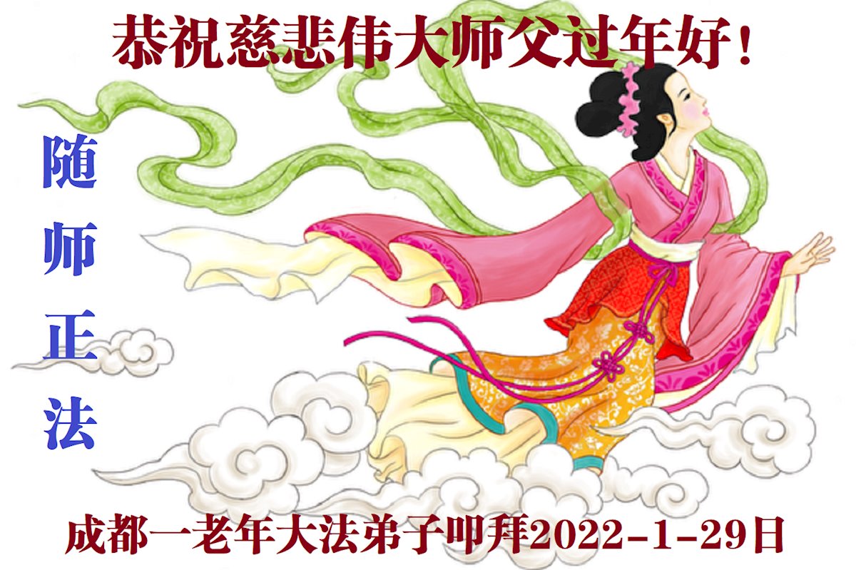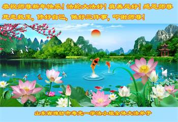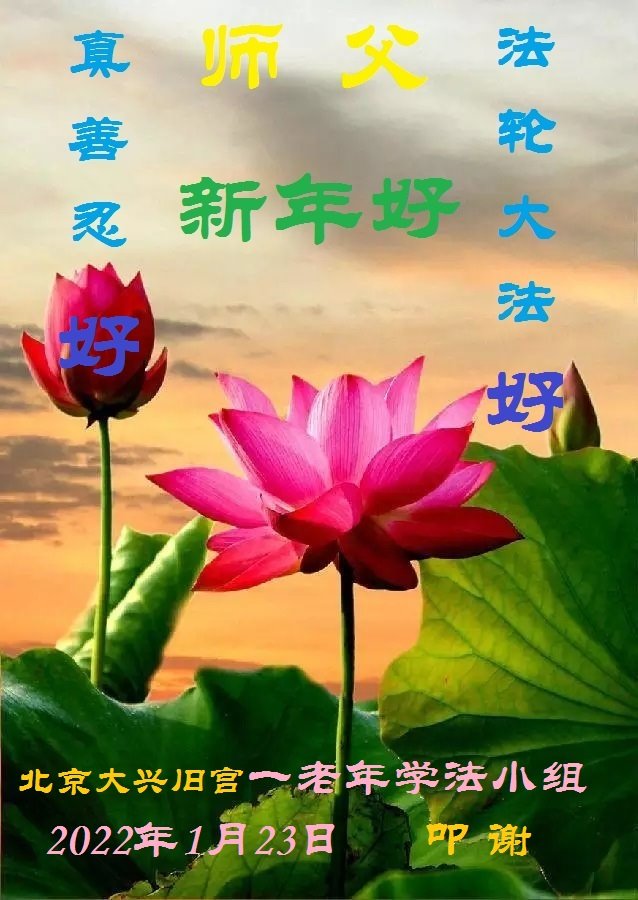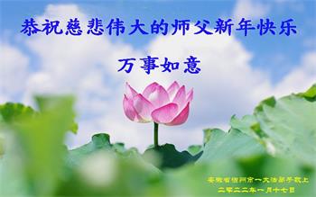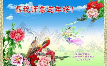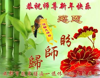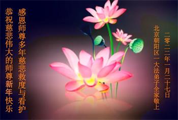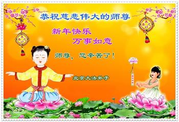 师父好!我们老俩口都是九十多岁的人了,通过看法轮大法资料,我们明白法轮功受的冤屈,也知道了大法的美好。平日里我们诚心诵念“法轮大法好,真善忍好”,我们亲身感受到了,体验到了,大法师父的佑护。我们衷心感谢师父,感谢大法,新年来了,我们衷心恭祝师父节日快乐!