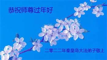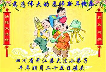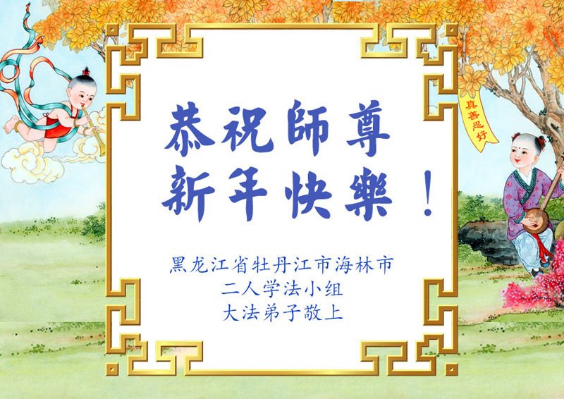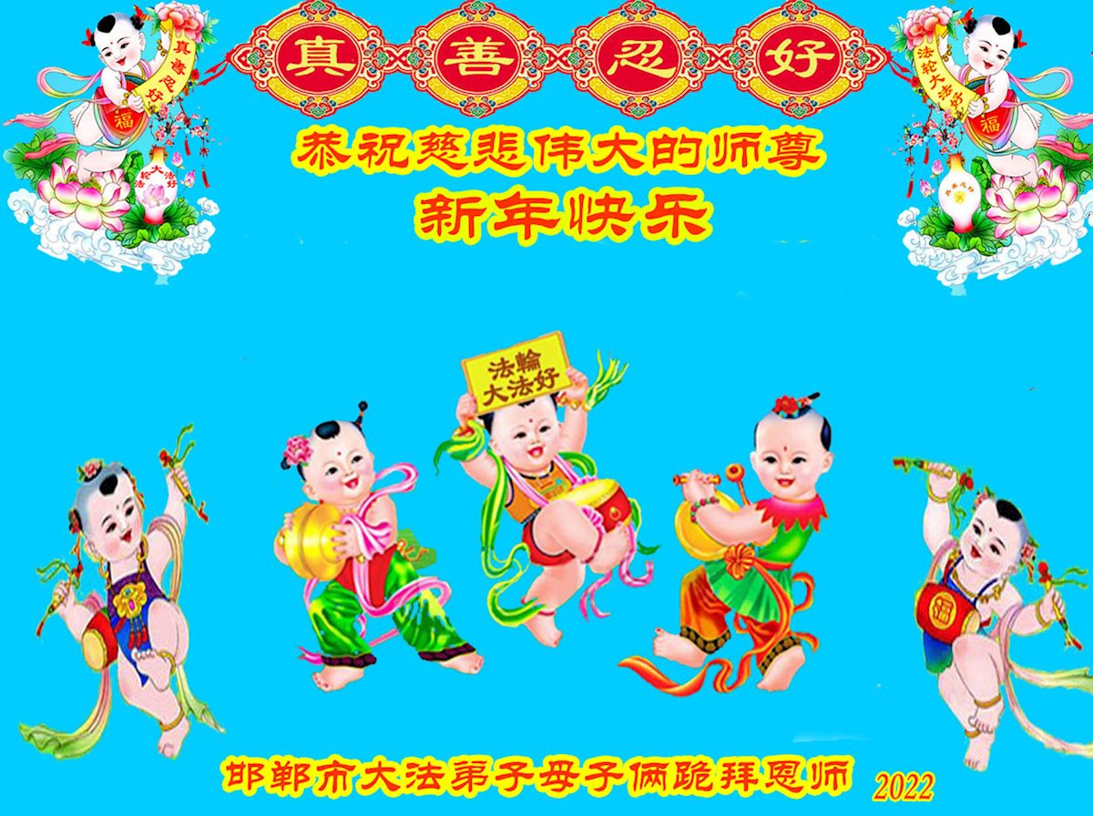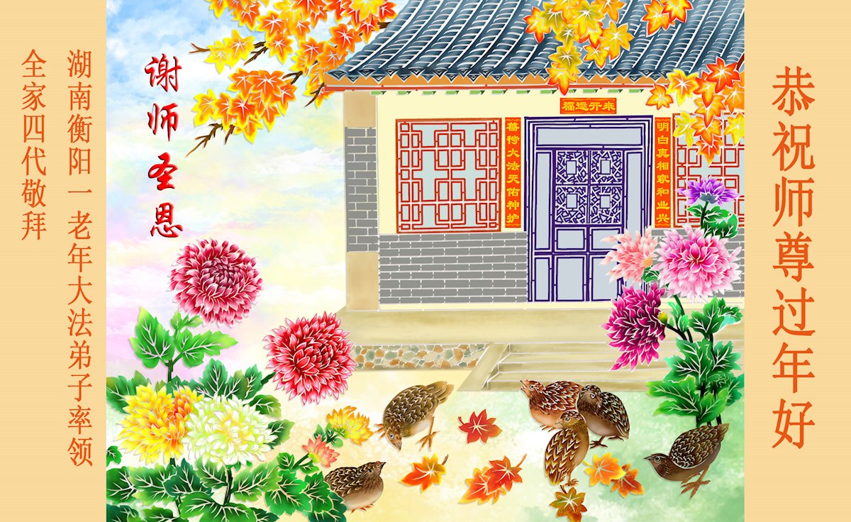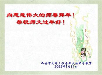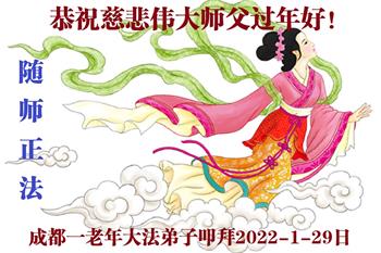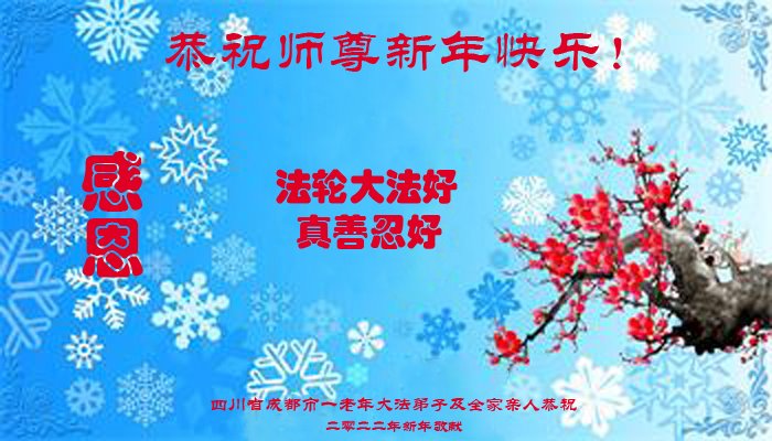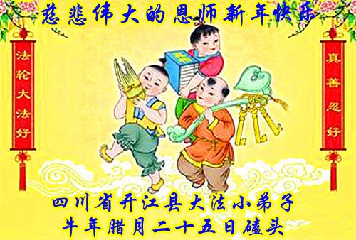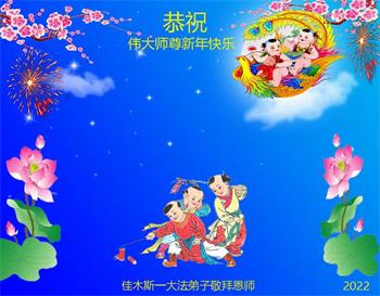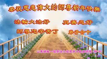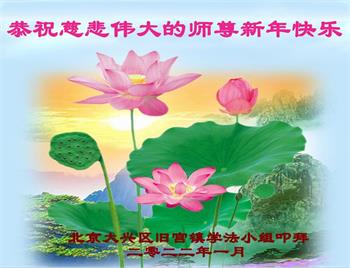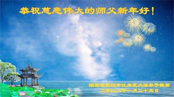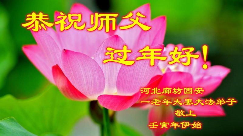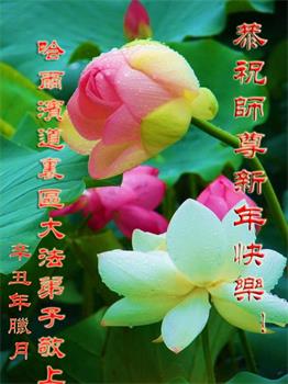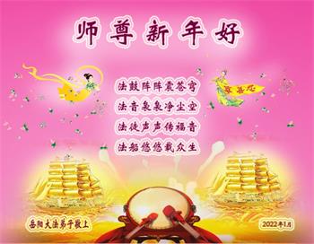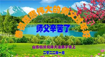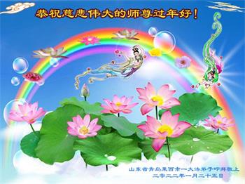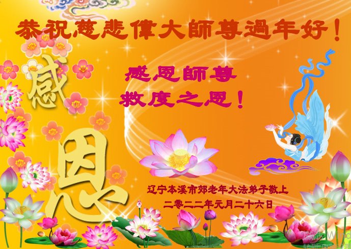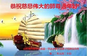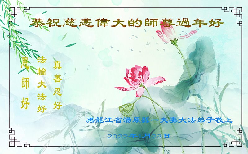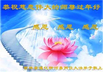 师父好!我们老俩口都是九十多岁的人了,通过看法轮大法资料,我们明白法轮功受的冤屈,也知道了大法的美好。平日里我们诚心诵念“法轮大法好,真善忍好”,我们亲身感受到了,体验到了,大法师父的佑护。我们衷心感谢师父,感谢大法,新年来了,我们衷心恭祝师父节日快乐!