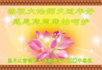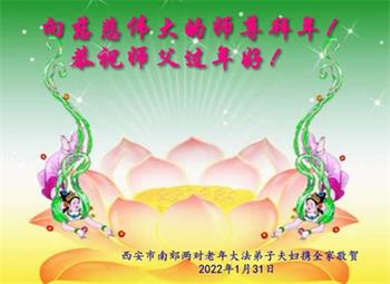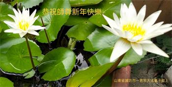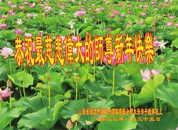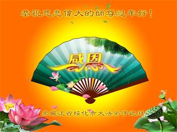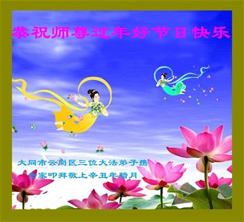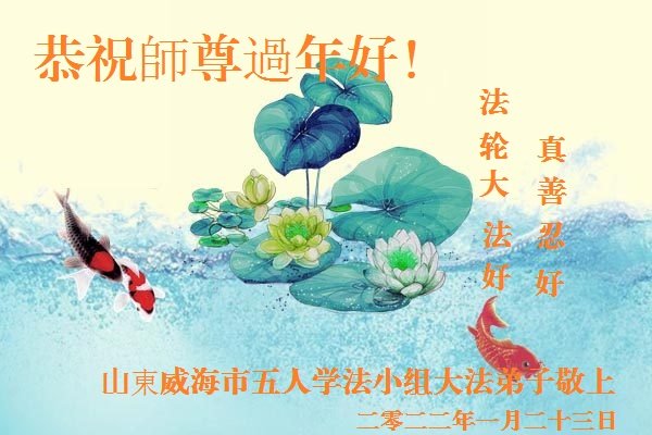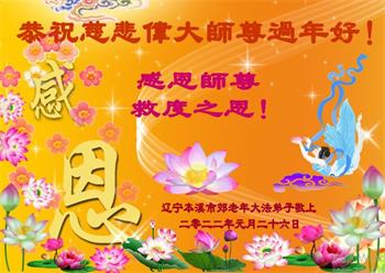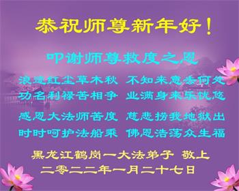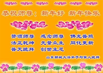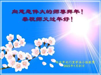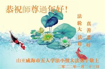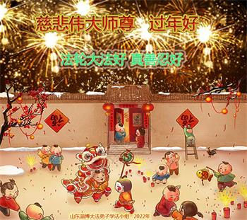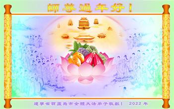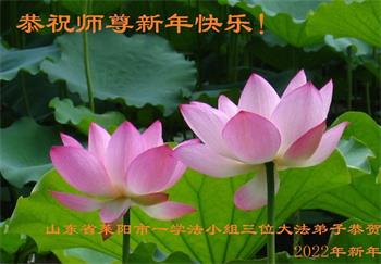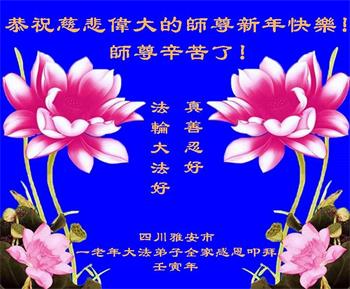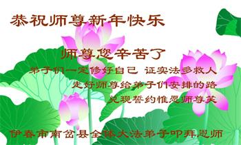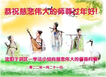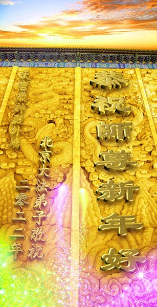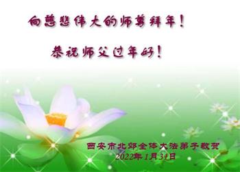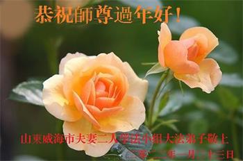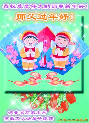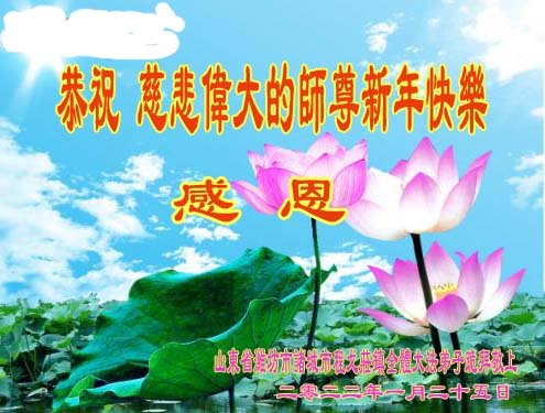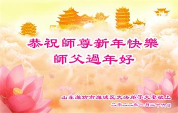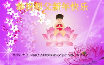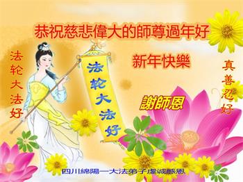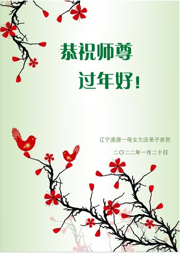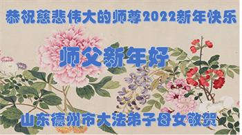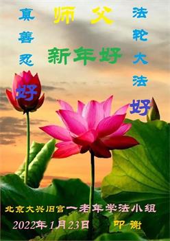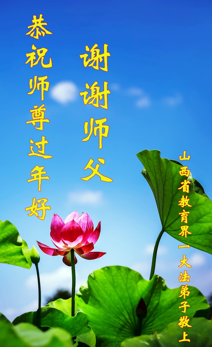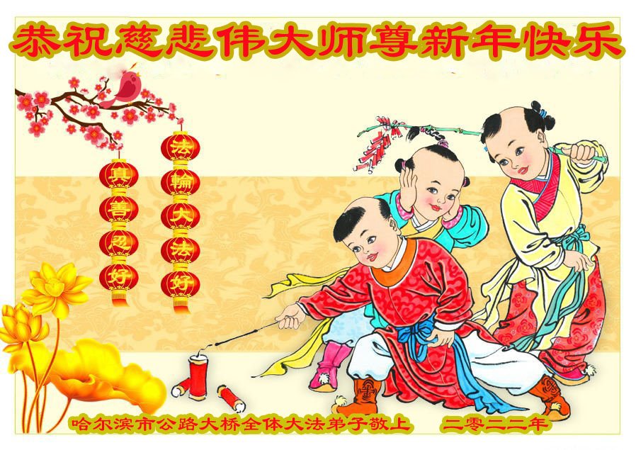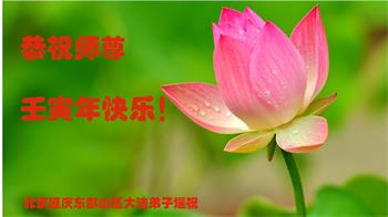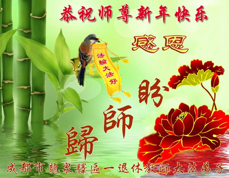 师父好!我们老俩口都是九十多岁的人了,通过看法轮大法资料,我们明白法轮功受的冤屈,也知道了大法的美好。平日里我们诚心诵念“法轮大法好,真善忍好”,我们亲身感受到了,体验到了,大法师父的佑护。我们衷心感谢师父,感谢大法,新年来了,我们衷心恭祝师父节日快乐!