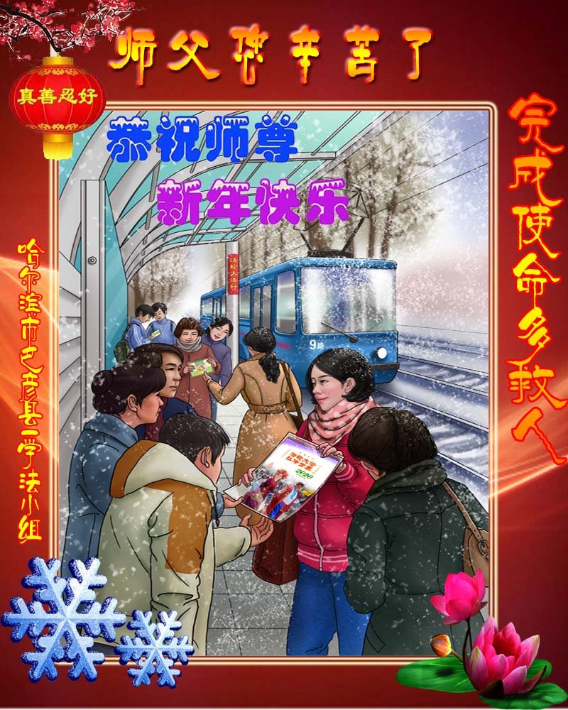 ![]() 图4:多伦多士嘉堡真相点学员恭祝师父新年好! |