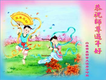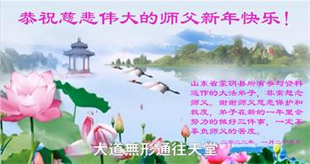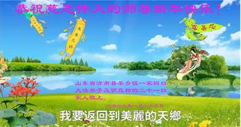 山东省诸城市明真相的两位老年夫妇恭祝师父新年快乐!